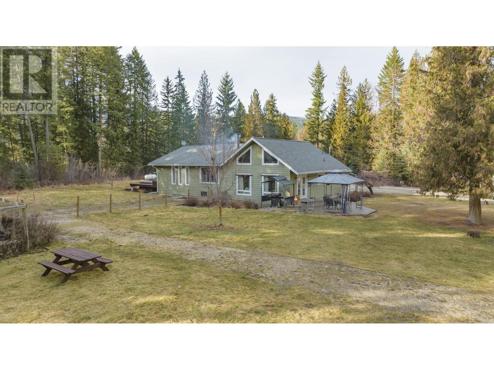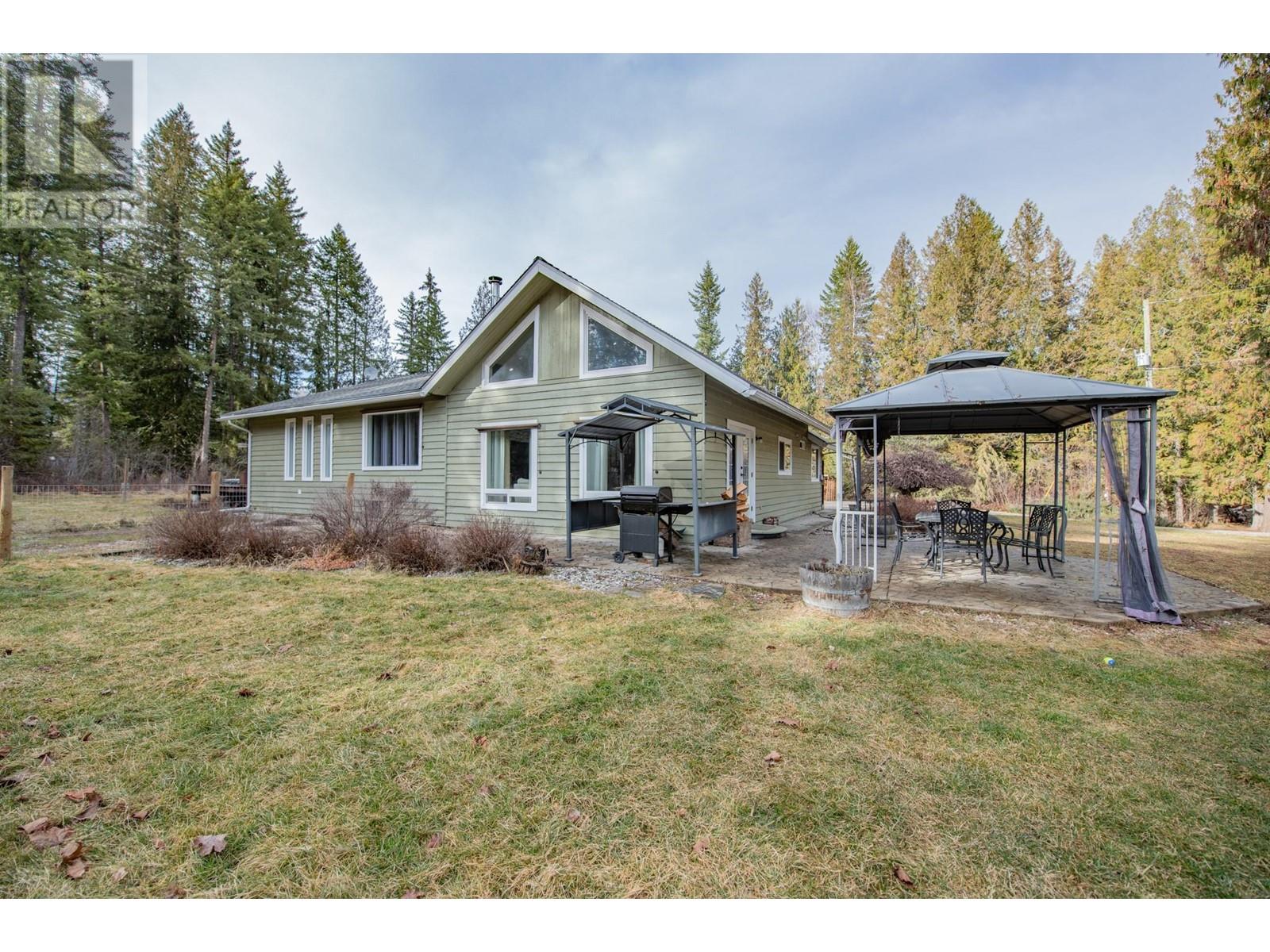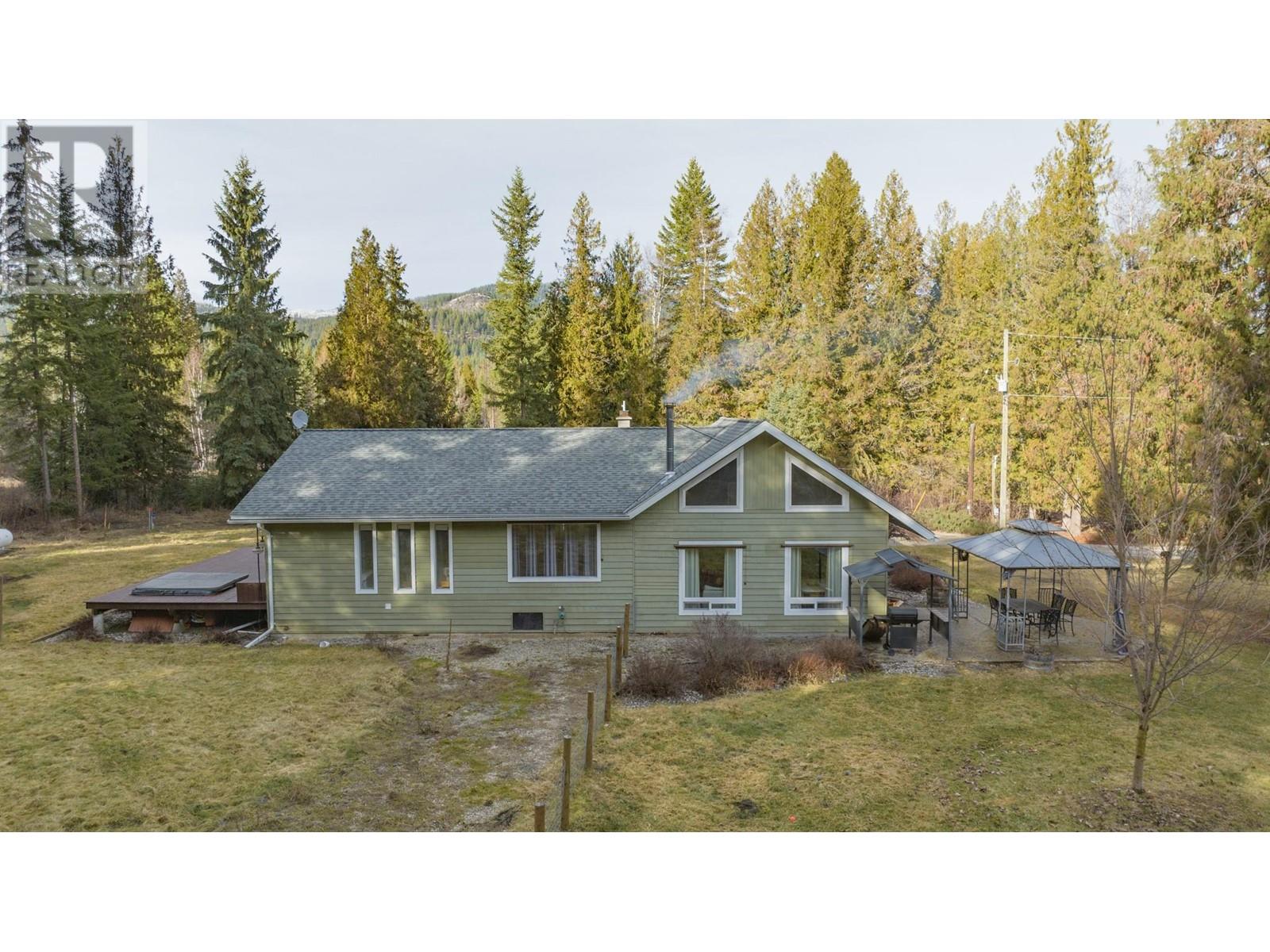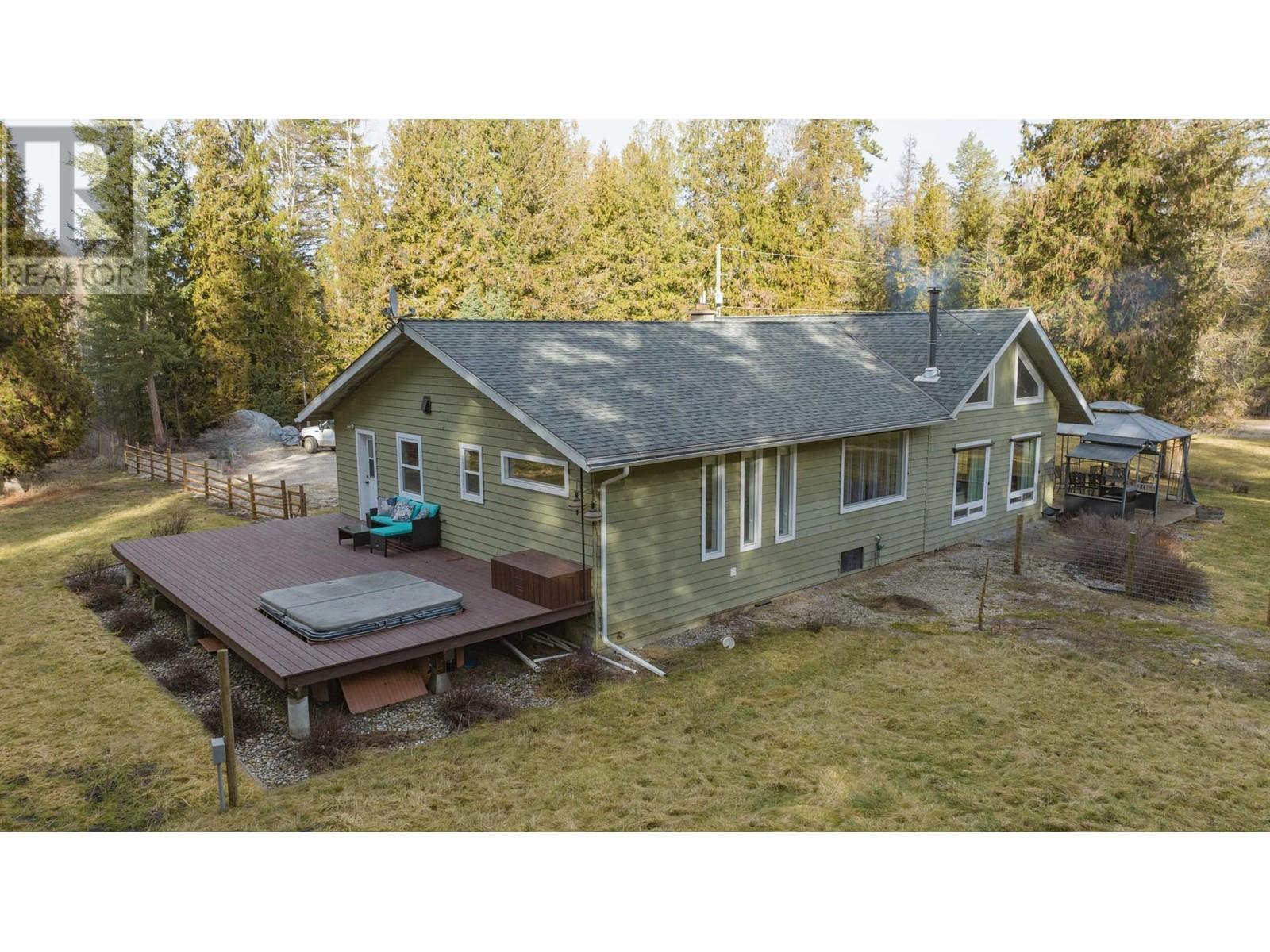 Welcome to your own private park-like retreat! This stunning 2.6 acre property offers ultimate privacy and the beauty of rural living, surrounded by a lovely treed perimeter and beautifully landscaped grounds. Enjoy sweeping lawns, a large fenced garden area and a stamped concrete patio complete with a charming gazebo—perfect for relaxing evenings, ensuring outdoor barbecuing and entertaining is effortless, while the expansive sundeck with a hot tub provides the perfect spot to unwind after a long day and enjoy the deer and wild turkeys daily visits. The tastefully updated 4 bedroom home features vaulted ceilings and a bright main floor master bedroom. A striking rock feature wall and newer vinyl windows bring warmth and natural light into the living room, which flows seamlessly into the kitchen, where French doors open to the patio for easy indoor-outdoor living. The large formal dining room is ideal for family gatherings, and the loft area offers another bedroom or cozy den, while the spacious rec room in the basement is perfect with a pool table for game nights. A true highlight of this property is the impressive 1,200 sq. ft. insulated and wood-heated workshop, complete with 220 wiring, plenty of space for your pontoon boat, and an RV storage area under cover year-round. This dream shop is perfect for any hobbyist or craftsman! Located just 12 minutes from Lumby and a short 15-minute drive to the pristine waters of Mabel Lake, this exceptional property won’t last long! (id:48970) Show More