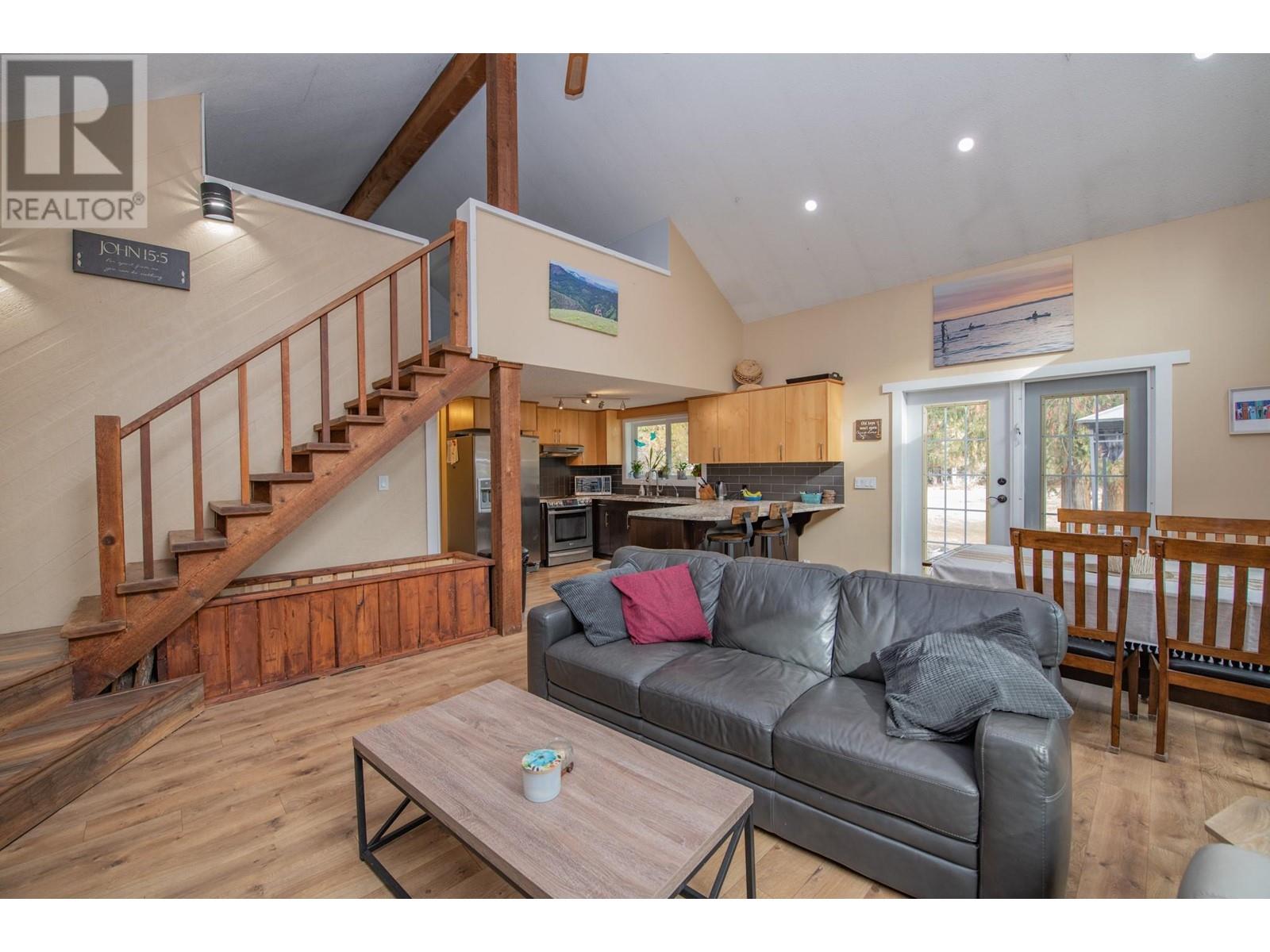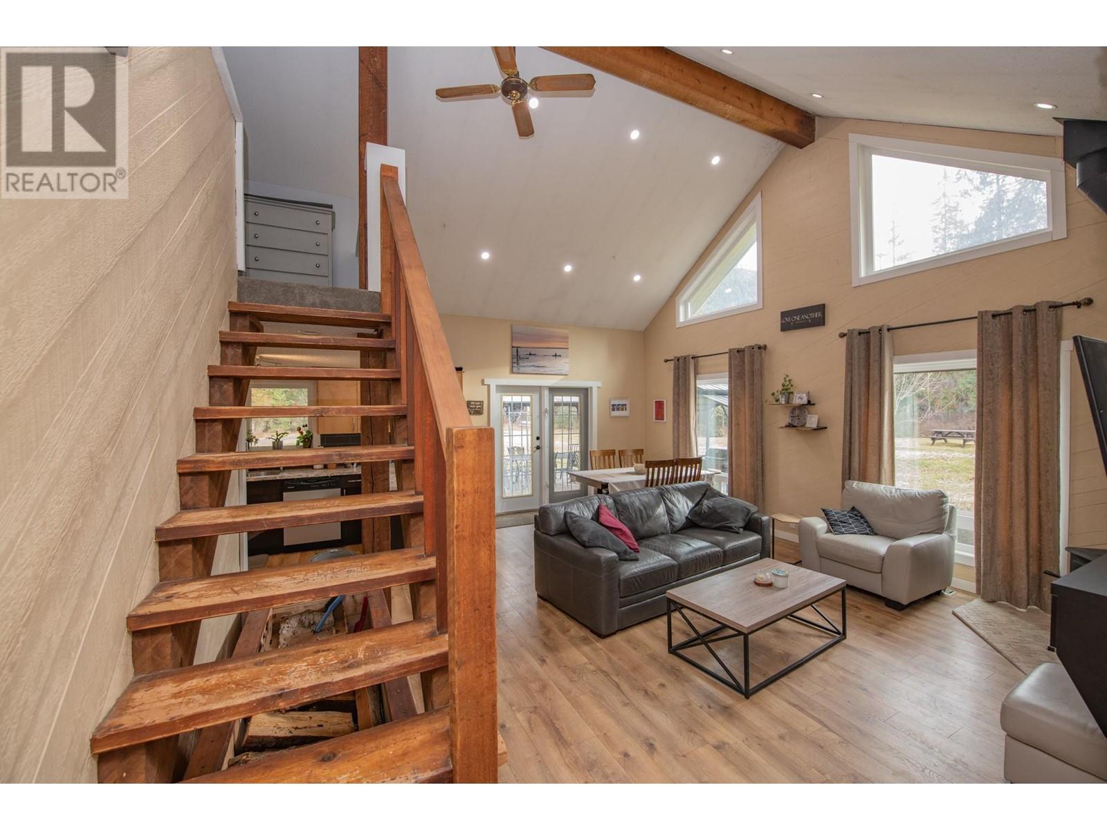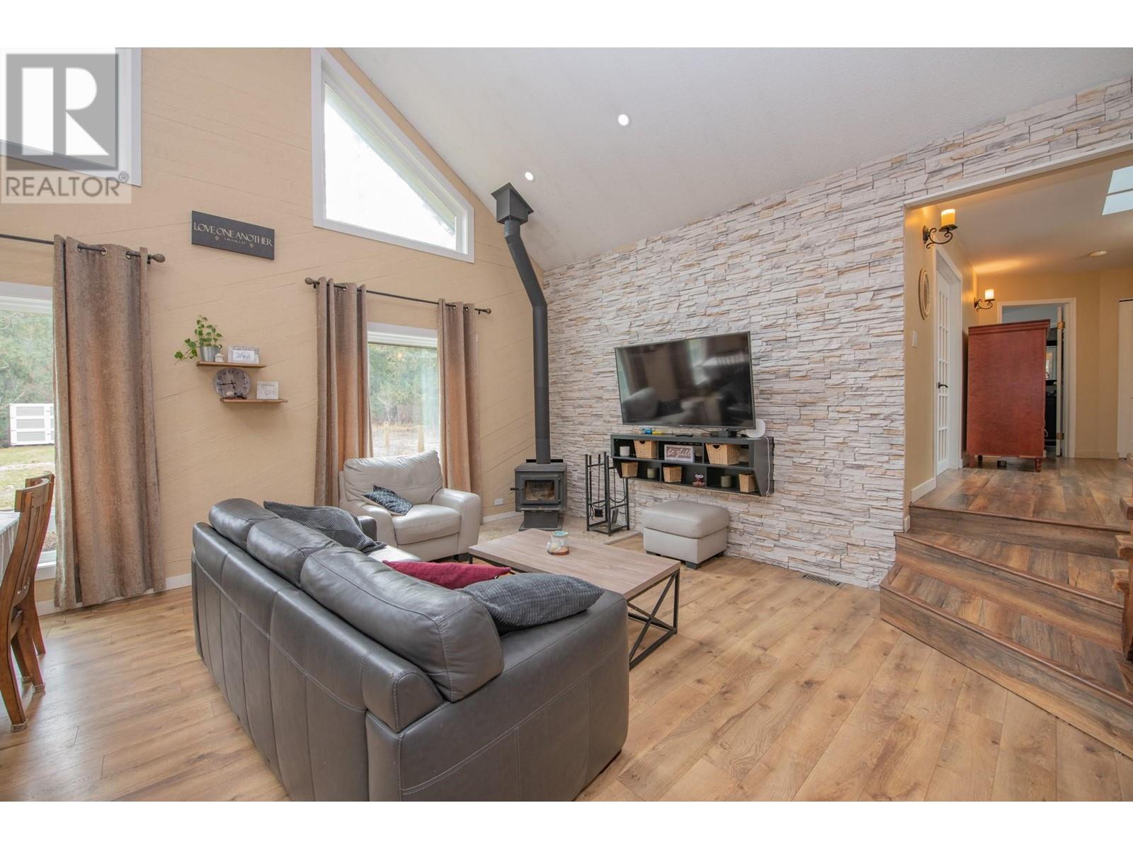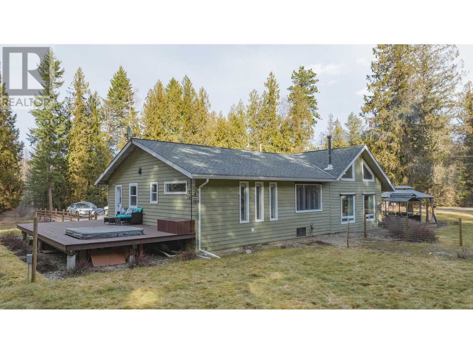 Welcome to your own private park-like retreat! This stunning 2.6 acre property offers ultimate privacy and the beauty of rural living, surrounded by a lovely treed perimeter and beautifully landscaped grounds. Enjoy sweeping lawns, a large fenced garden area and a stamped concrete patio complete with a charming gazebo—perfect for relaxing evenings, ensuring outdoor barbecuing and entertaining is effortless, while the expansive sundeck with a hot tub provides the perfect spot to unwind after a long day and enjoy the deer and wild turkeys daily visits. The tastefully updated 4 bedroom home features vaulted ceilings and a bright main floor master bedroom. A striking rock feature wall and newer vinyl windows bring warmth and natural light into the living room, which flows seamlessly into the kitchen, where French doors open to the patio for easy indoor-outdoor living. The large formal dining room is ideal for family gatherings, and the loft area offers another bedroom or cozy den, while the spacious rec room in the basement is perfect with a pool table for game nights. A true highlight of this property is the impressive 1,200 sq. ft. insulated and wood-heated workshop, complete with 220 wiring, plenty of space for your pontoon boat, and an RV storage area under cover year-round. This dream shop is perfect for any hobbyist or craftsman! Located just 12 minutes from Lumby and a short 15-minute drive to the pristine waters of Mabel Lake, this exceptional property won’t last long! (id:48970) Show More