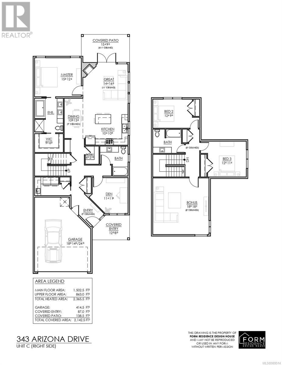 Welcome to Arizona Heights, Campbell River's newest adult oriented patio home development located in the desirable Willow Point neighbourhood. This C plan is the largest of the floor plans and lives like a rancher with 1500 sq feet of living on the main floor including den and primary bedroom with 5 piece ensuite, large soaker tub and 4' foot shower. Eleven foot ceilings in the great room and kitchen offer wide spacious feel. Upstairs you have 2 more bedrooms, an ocean view bonus room and a four piece bathroom. These homes are turnkey and move in ready with a full 6 piece LG Energystar appliance package included, as well as blinds, gas fireplace, fencing, irrigation, double garage with 14' and 24' parking spaces, garage door opener and pre wired for an electric vehicle. You'll be delight with the tasteful finishing, contemporary colors and practical layouts that keep easy living in mind. The building scheme for this unit is C-1, with exterior colour scheme 2 (see attached images). (id:48970) Show More