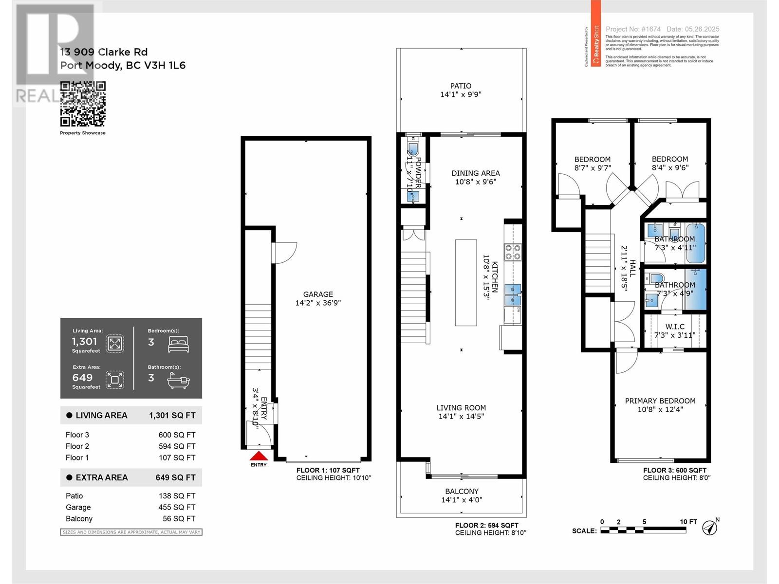 - Area 1301 sq ft