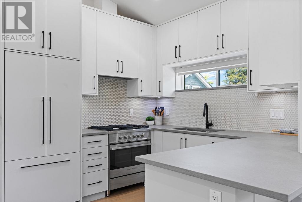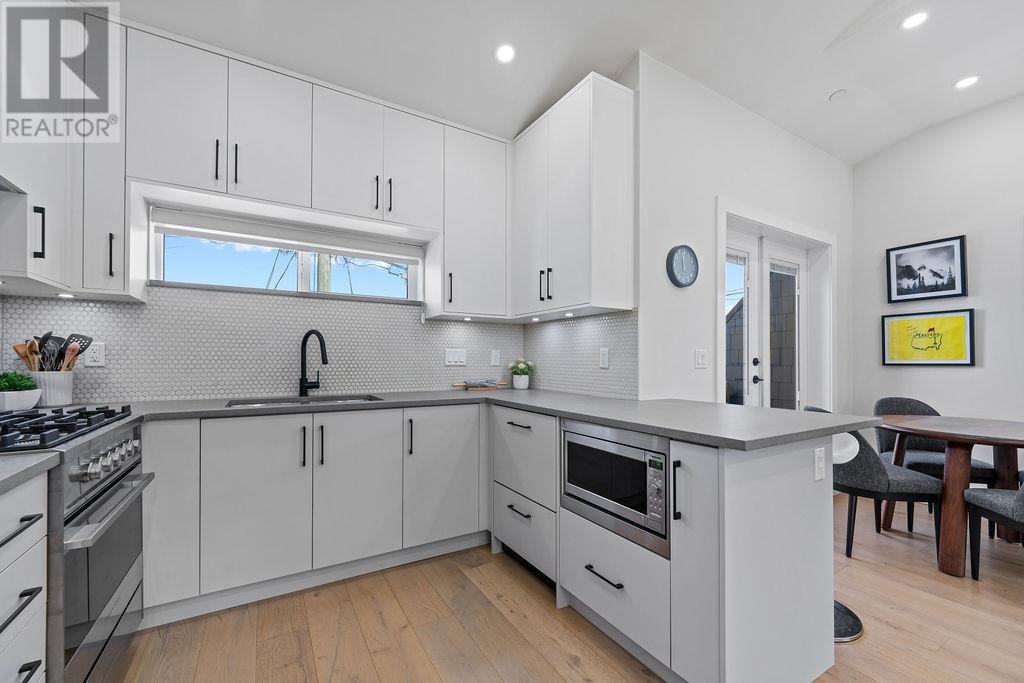 Simultaneously quiet and vibrant, Cedar Cottage has a clear identity, where residents still socialize and kids play outdoors together. This 3 bed, 2 bath Coach house was built with young families in mind. Perched atop a tree lined street in the Charles Dickens catchment, just steps to Sunnyside Park, this homes shares no walls, leaving more room for windows allowing natural light to fill the living area and its 11 ft ceilings with natural light from every direction. The kitchen features integrated Fisher&Paykel appliances, bar seating, and room for your dining room table perfectly blending into your generous living area. Radiant heating sits beneath the warm engineered HW floors throughout. Retain the reassurance of warranty while doing away with the burden of GST & strata fees. 1 garage. Open House: July 12th, 2-4 PM & July 13th, 12-1:30 PM (id:48970) Show More