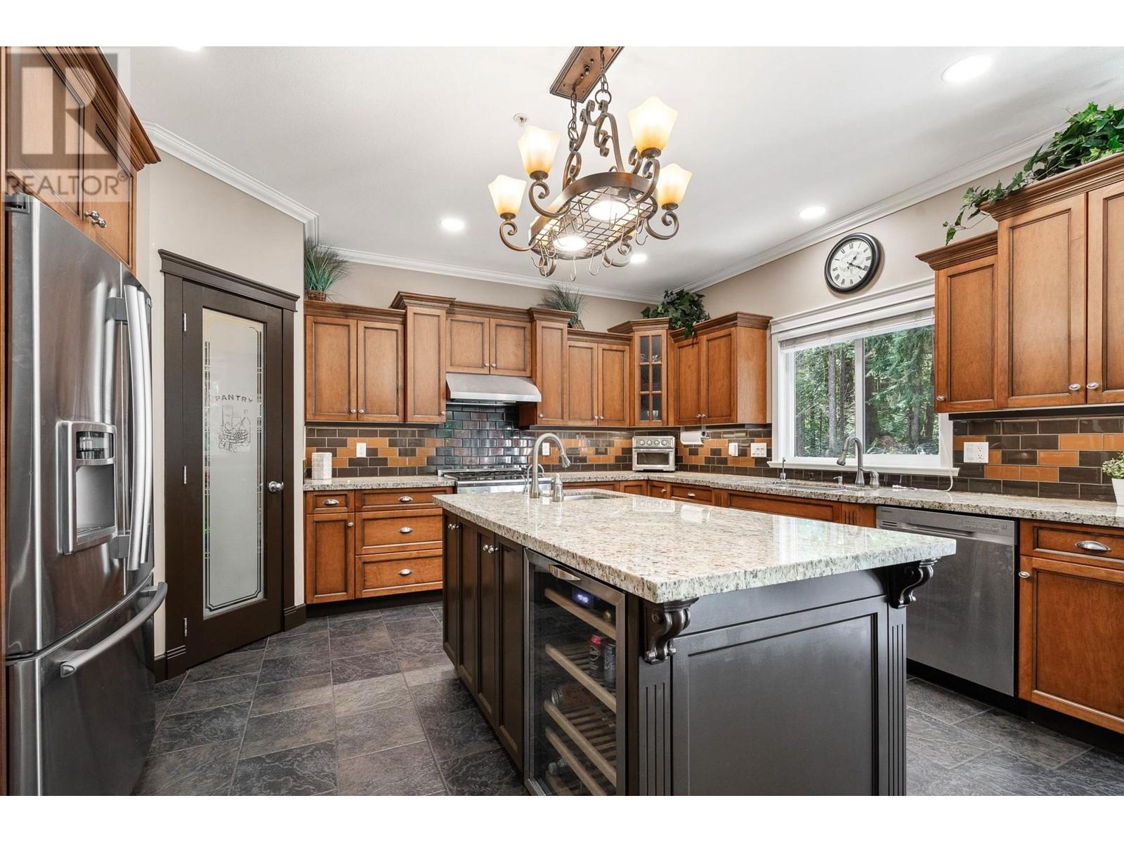 Silver Valley luxury home with forested greenbelt view, 6-car + RV parking, transit access, and easy 5 min. stroll to river. Features main-level entry with walk-out basement to a private fenced yard. Premium upgrades throughout include; On-Demand HW, central AC, hardwood floors, cathedral ceilings, crown mouldings, stone mantel gas fireplace, porcelain tile, & custom Italian cabinetry. Kitchen features maple shaker cabinets, granite counters, & built-in wine cooler. The covered glass patio leads to the low maintenance yard, stamped concrete patio, oversized hot tub, and forest views. The large bsmt suite has separate parking, private patio and independant laundry. Home is a short drive to Golden Ears Prov . Park. This was originally the builer´s own custom home. Move- in ready (id:48970) Show More