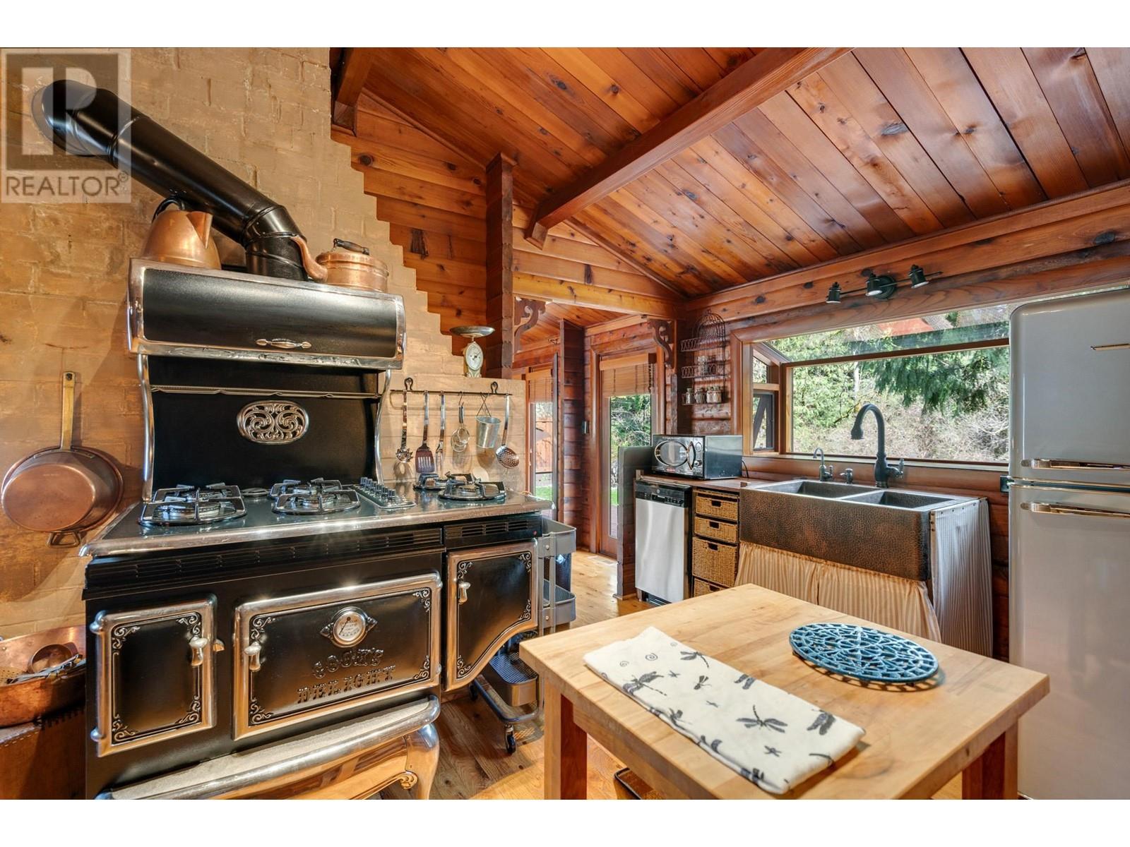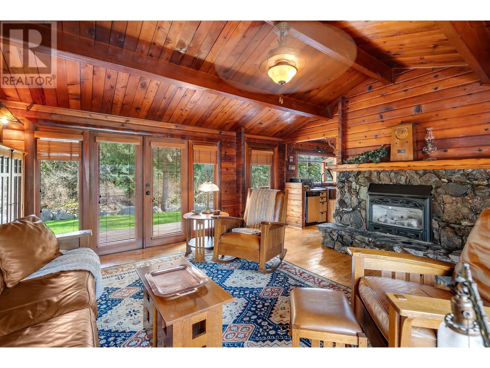 A rare gem on the North Alouette River-this 2 bed, 1 bath log home sits on a beautifully manicured ¼ acre. Vaulted ceilings, oversized windows, and wood French doors open to a large deck with stunning river views. A feature stone fireplace anchors the living room, while the kitchen impresses with a high-end, vintage-style stove and fridge. Enjoy quiet mornings in the custom gazebo with swing, or entertain by the stone patio and firepit. Meticulous landscaping, winding stone paths, and private stairs to the river´s edge complete this tranquil, storybook setting. A must-see! (id:48970) Show More