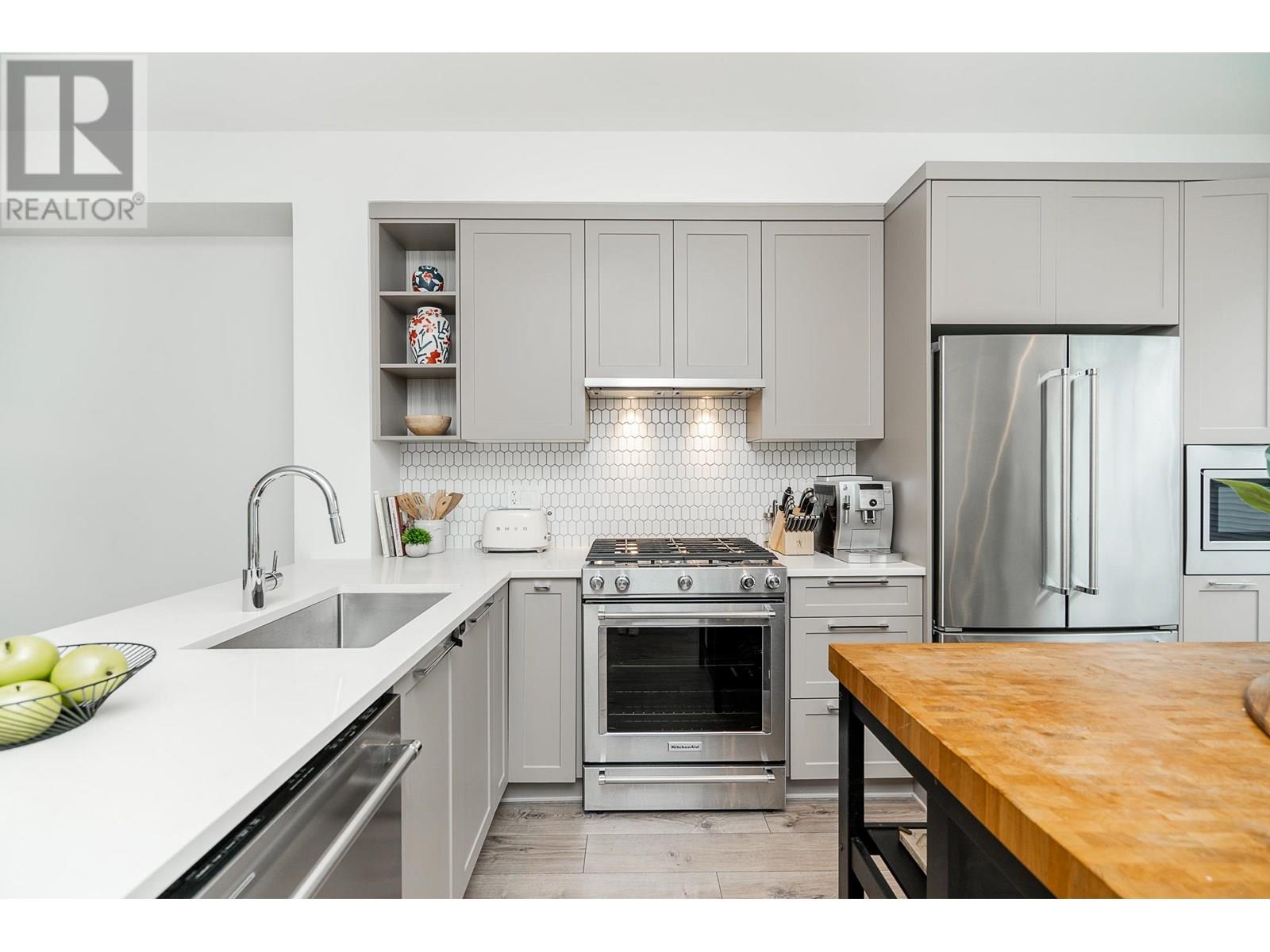 This modern 3 bed, 3 bath townhome offers a bright, functional layout across 1,393 square ft of thoughtfully designed space. Just 3 years old, it features laminate floors on the main and a spacious open-concept living area w/9 ft ceilings. The kitchen includes stainless steel appliances w/gas cooktop and a peninsula counter with seating. A powder room on the main floor adds practicality. Step out to a lush, private backyard with a 119 square ft patio perfect for morning coffee or weekend BBQs. Up, you´ll find three comfortable beds, including a vaulted-ceiling primary w/double closets and a private ensuite, another full bath, and a dedicated laundry area. Complete with a 512 square ft garage. Surrounded by nature and trails, while being a short distance from schools, shopping, parks, and recreation. (id:48970) Show More
