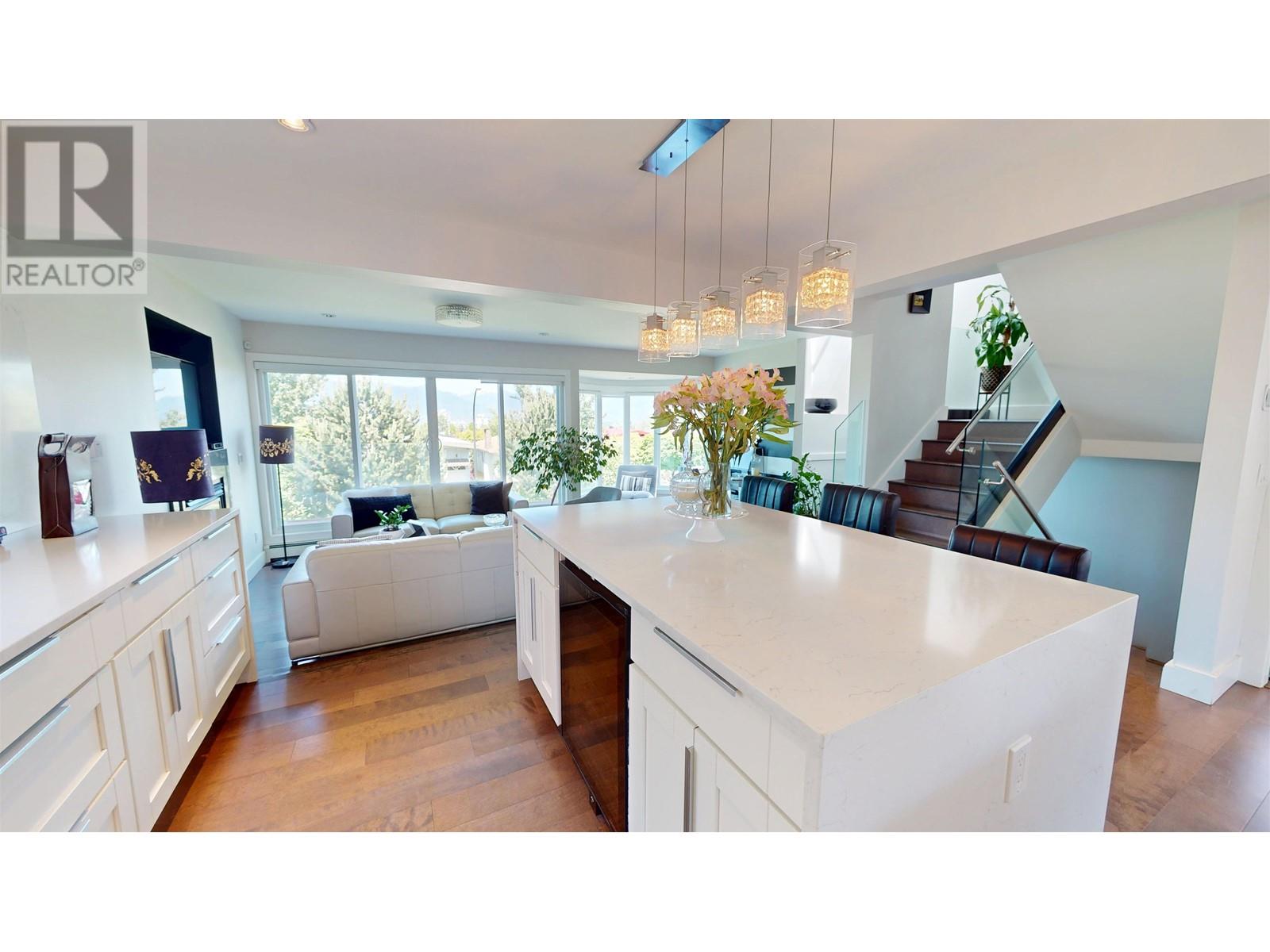 Experience breathtaking, unobstructed views of the North Shore Mountains and Downtown Vancouver from all three levels of this beautifully updated residence. The main floor boasts a tastefully renovated, open-concept layout featuring a chef´s kitchen perfect for entertaining. Upstairs, you´ll find three spacious bedrooms, including a primary bdrm complete with a spa-inspired ensuite and spectacular vistas. The lower level offers a versatile 1-bedroom and den suite with its own kitchenette-ideal for extended family, guests, or rental income. Rooftop with 360-degree panoramic views and potential for a very nice rooftop deck. Additional highlights include a detached double garage, gated RV/visitor parking, and close proximity to Kensington Community Centre and Park.. (id:48970) Show More