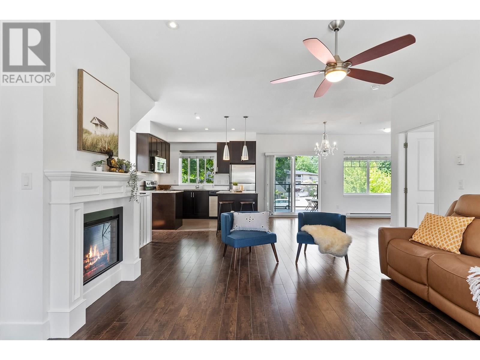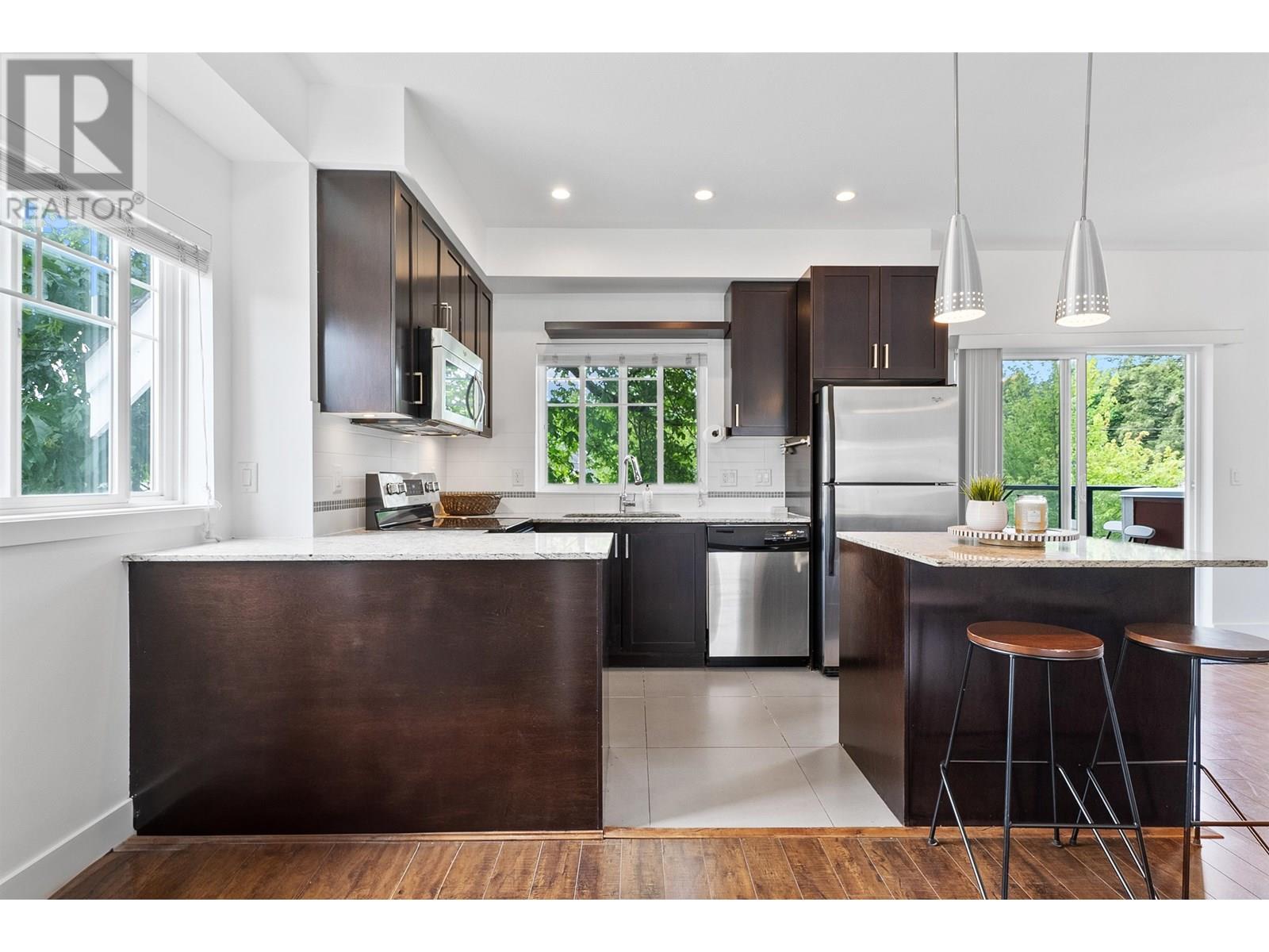 Welcome to your sun-filled dream townhouse! This rare 5-bedroom, 3.5-bathroom corner unit is bright and airy, with natural light pouring in from east to west. The tree-lined surroundings provide excellent shade during the hot summer days, enhancing the home´s comfort. The lower level features a private suite with a separate entrance, ideal for in-law accommodation or guests. The main level boasts an open-concept design, including a modern kitchen, dining area, spacious living room with an electric fireplace, and an additional bedroom. The third level offers three large bedrooms, with the primary bedroom featuring an ensuite for added luxury. Conveniently located near École Kwayhquitlum Middle School, DT Port Coquitlam the West Coast Express, parks, and trails along the Coquitlam River. (id:48970) Show More