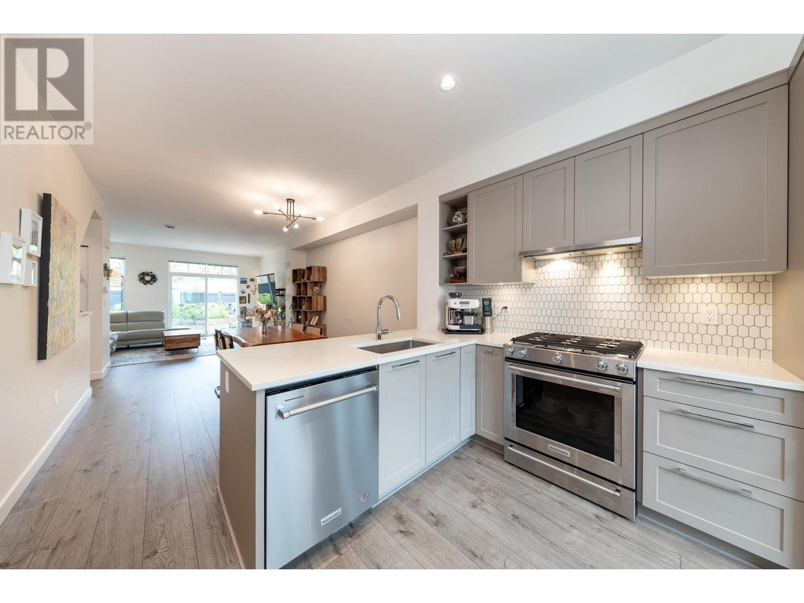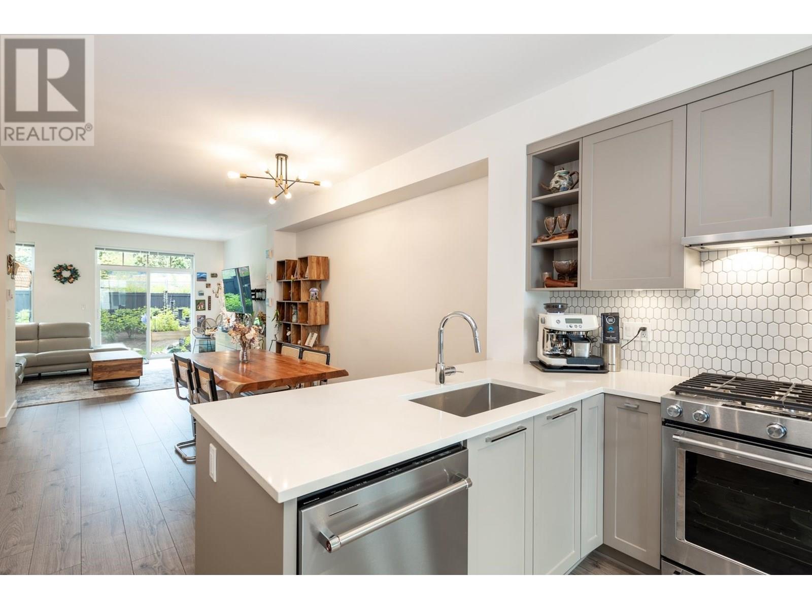 Welcome to this almost brand new and meticulously kept townhome in Burke Mountain. This townhome offers functional layout with no wasted space:3 bed and 3 bath, south/north facing with a massive, private and fenced backyard with green belt and mountain view. Main floor features a large living room, dining room and gourmet oversized kitchen. Kitchen features oversized island, quartz counters, S/S KitchenAid appliance. Upstairs features 3 spacious bedrms and convenient laundry. Primary bedrm has vaulted ceiling and ensuite with double sinks. Extra upgrades include: all laminate flooring even on stairs, finished garage with drywall and paint, master walk thru closet organizer, polyaspartic garage flooring.Family-friendly townhome community sits on the lower, easy access to all schools, shops and skytrain. Walking distance to local parks & nature trails. Move-in ready and perfect for modern living! Open House Jul 13 Sun 3-5pm (id:48970) Show More