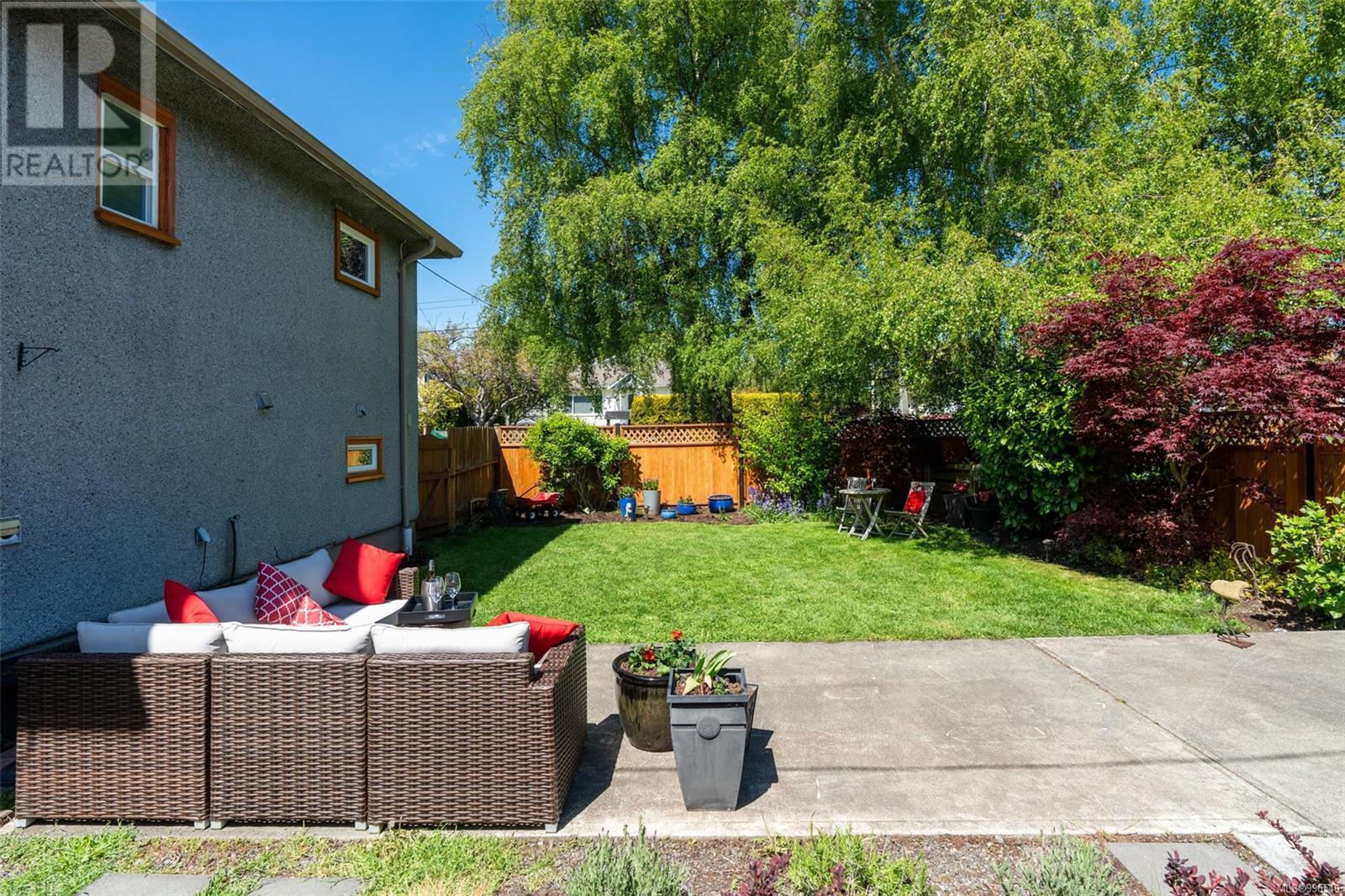 Fairfield friendly! Steps to excellent schools, shops & the ocean, this 3 bedroom, 2 bath duplex is perfectly located in this fabulous neighbourhood. Boasting a gorgeous, fully fenced corner yard the character home has oak floors & coved ceilings, a testament to the 1950's. There is an attractive stone fireplace, mahogany mantel & electric insert in the living room. The separate kitchen is pre-wired for a wall oven & enjoys views over the backyard. The flexible layout offers 2 ample bedrooms & a bathroom on this level. The lower level can easily be converted to a 1-bed suite & it is plumbed for a kitchen. The huge laundry room has newer appliances & tons of storage. Updated lighting throughout the house plus an alarm system. Perimeter drains & the roof were replaced approximately 15 years ago. A unique opportunity to enter a coveted neighbourhood. Take advantage of the government grant programs for suite conversions & heat pump upgrades! (id:48970) Show More