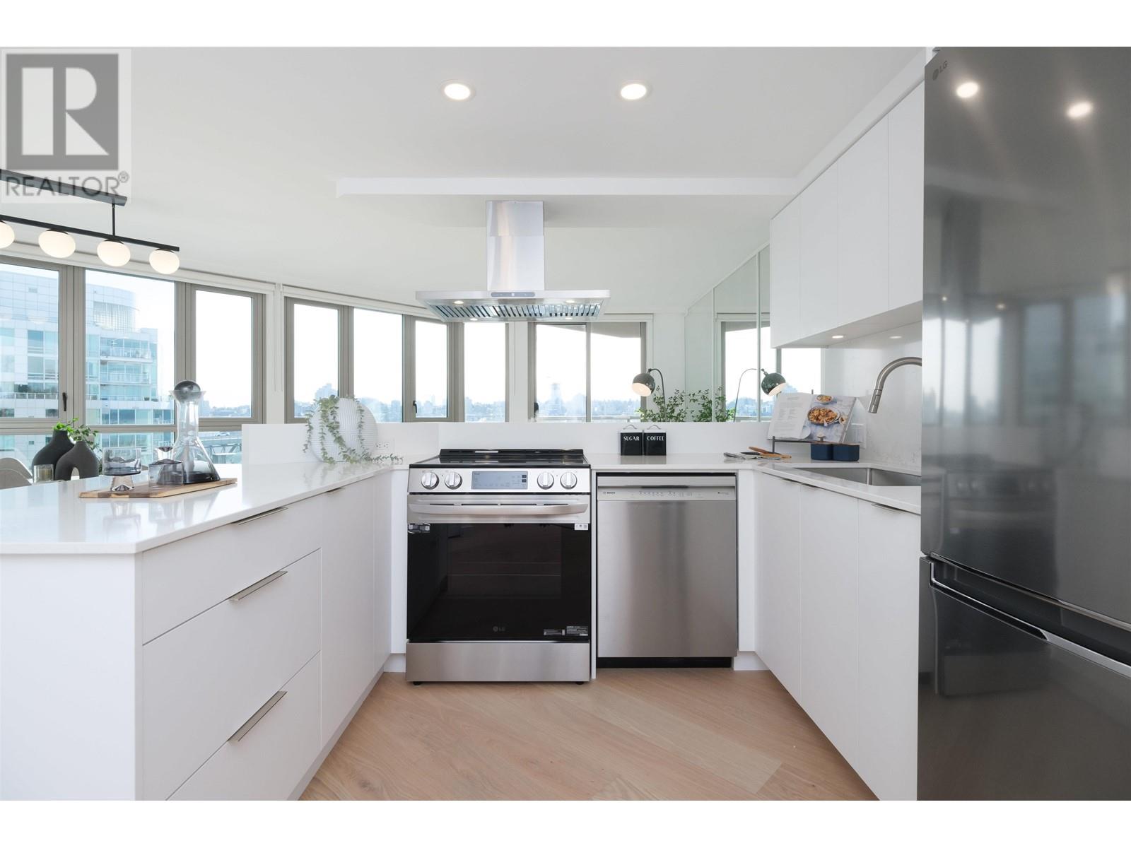 Located on the Downtown Waterfront at the Seawalk North Bldg, 1625 Hornby st, on the 15th floor, overlooking False Creek and Granville Island. Beautifully renovated 860+ sqft, 2 Bdrm with views from every room, light brown hardwood floors throughout, gorgeous white countertops in the open kitchen with stainless steel appliances to accompany them, brand new bathroom, large washer and dryer unit and an outdoor covered view balcony. Shows very well, with a Storage locker on the same floor, and 1 underground parking spot. Concierge-Main floor during the day, Gym,1 Secure underground parking spot, In suite New large washer and dryer, Available June 28th at $4200/mo To arrange a viewing, call, text or email (id:48970) Show More
