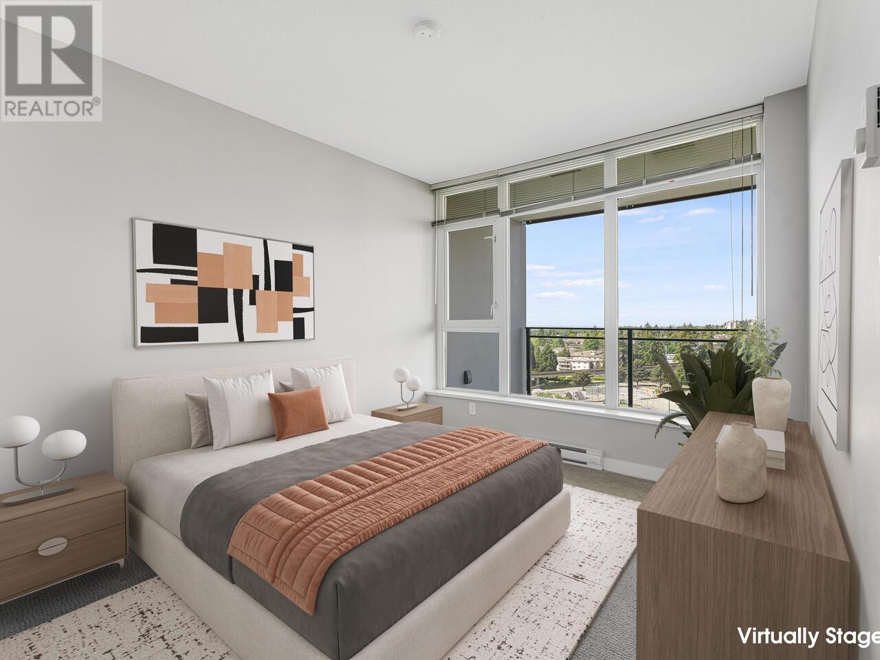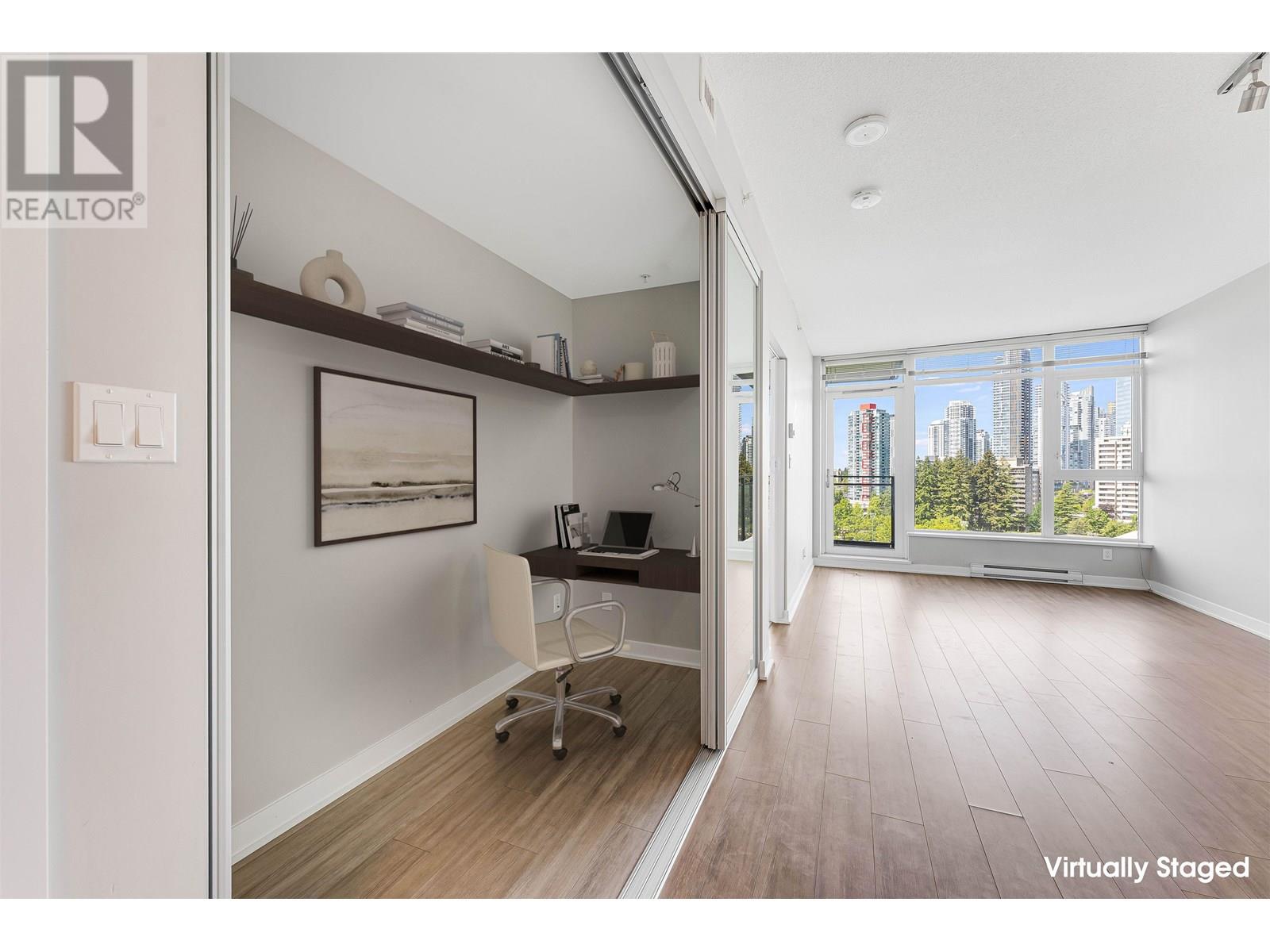 Panoramic North West South views! Great 1 br with good sized deck! Bright kitchen, quartz counters & gas stove. Cozy den with sliding privacy doors & good sized balcony to enjoy! Baseball diamonds, tennis courts & Bonsor Rec Centre right across the street assures view will stay! 1 parking & 2 good sized bike lockers! Building has gym, hot tub, sauna, party room on main floor and 43rd floor rooftop lounge! Metrotown, Station Square & Crystal Mall & Skytrain all nearby! OPEN SAT 1-3 JULY 19 (id:48970) Show More