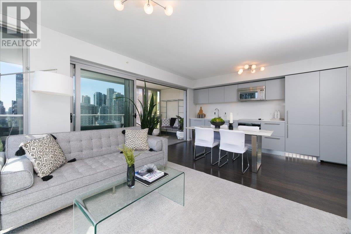 Discover this stunning south-facing CORNER END unit at 999 Seymour, crafted by the reputable builder Townline Homes is in one of Vancouver´s RARE buildings featuring a fully extendable retractable glass wall, creating a significant extension to your living space that brings seamless indoor-outdoor flow and flooding the home with light. Enjoy a 150 sqft balcony; perfect for BBQs, lounging, and stunning sunrises. This Functional plan offers a 2nd bedroom plus a 7x5 den. Wall to wall, floor to ceiling windows capture breathtaking city views, and flood the space with natural light. A perfect downtown location across from Nester's Market and a short walk to shops, restaurants and entertainment. Access to exceptional building amenities such as an air-conditioned gym, a lounge room, and a full-time caretaker. Pets and rentals are allowed, 1 parking & 1 storage. This is one fabulous place to call home! Furniture package available! (id:48970) Show More