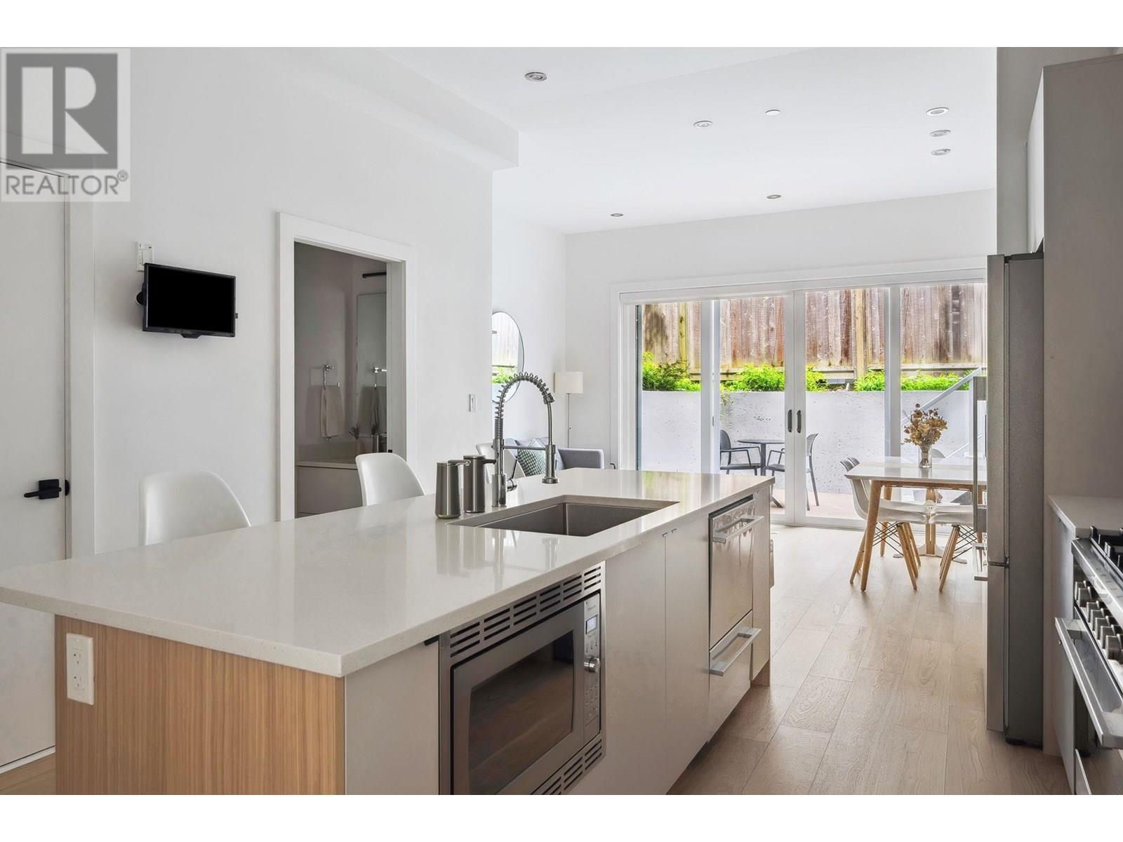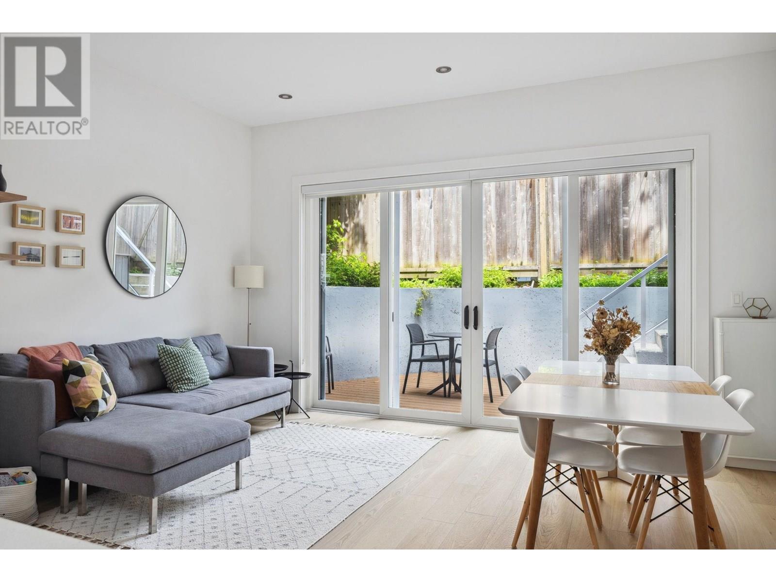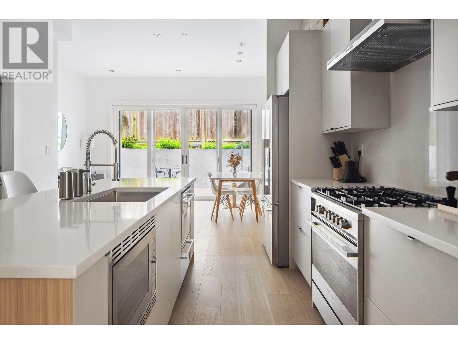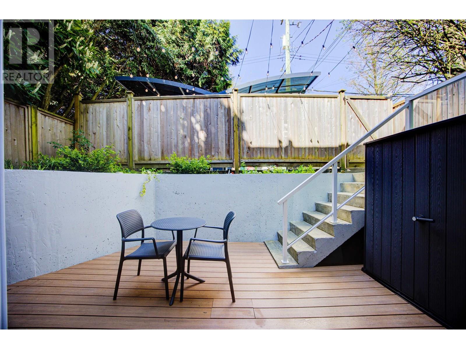 Beautifully designed back half-duplex that combines privacy & tranquility in a prime location; just 1 block from Commercial Dr! This thoughtfully designed home features a well-laid-out floor plan with soaring 10ft ceilings on the main. Upstairs, spacious primary bedroom with walk-in closet and ensuite bathroom, along with second bedroom and full bathroom. Top floor is perfect for home office, family room, or 3rd bedroom and opens to an amazing rooftop terrace-great for summer entertaining! High-end features include hardwood floor, radiant in-floor heating, double blackout blinds in bedrooms, on-demand hot water. Kitchen boasts a large island and full-size appliances, including a five-burner gas cooktop. Xtra: BBQ gas hookup & motorized gate. OH Sat and Sun July 12 &13, 2pm to 4pm. (id:48970) Show More