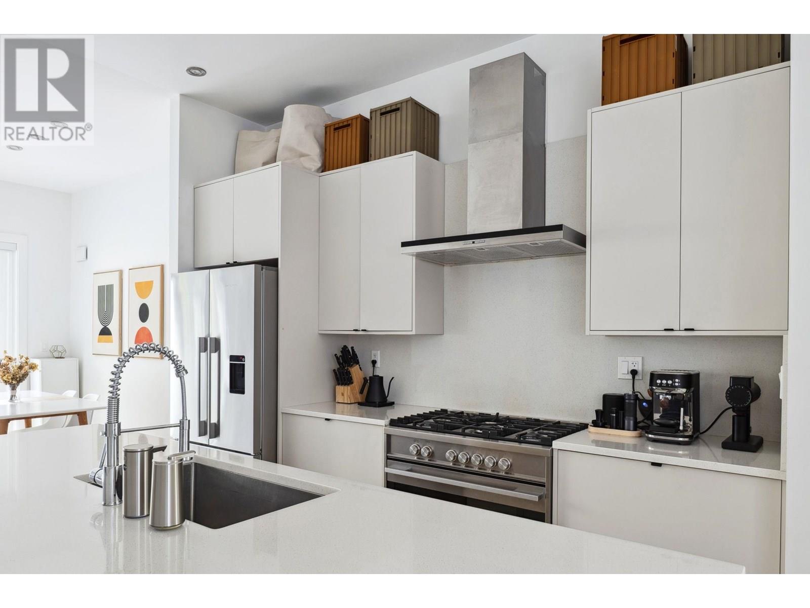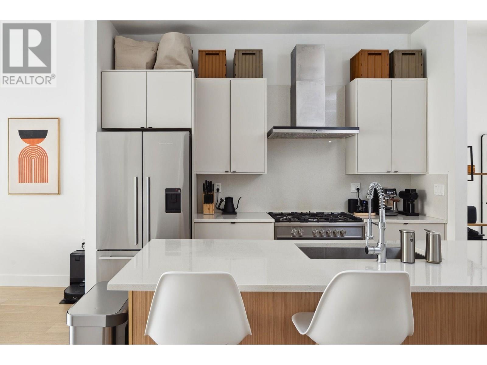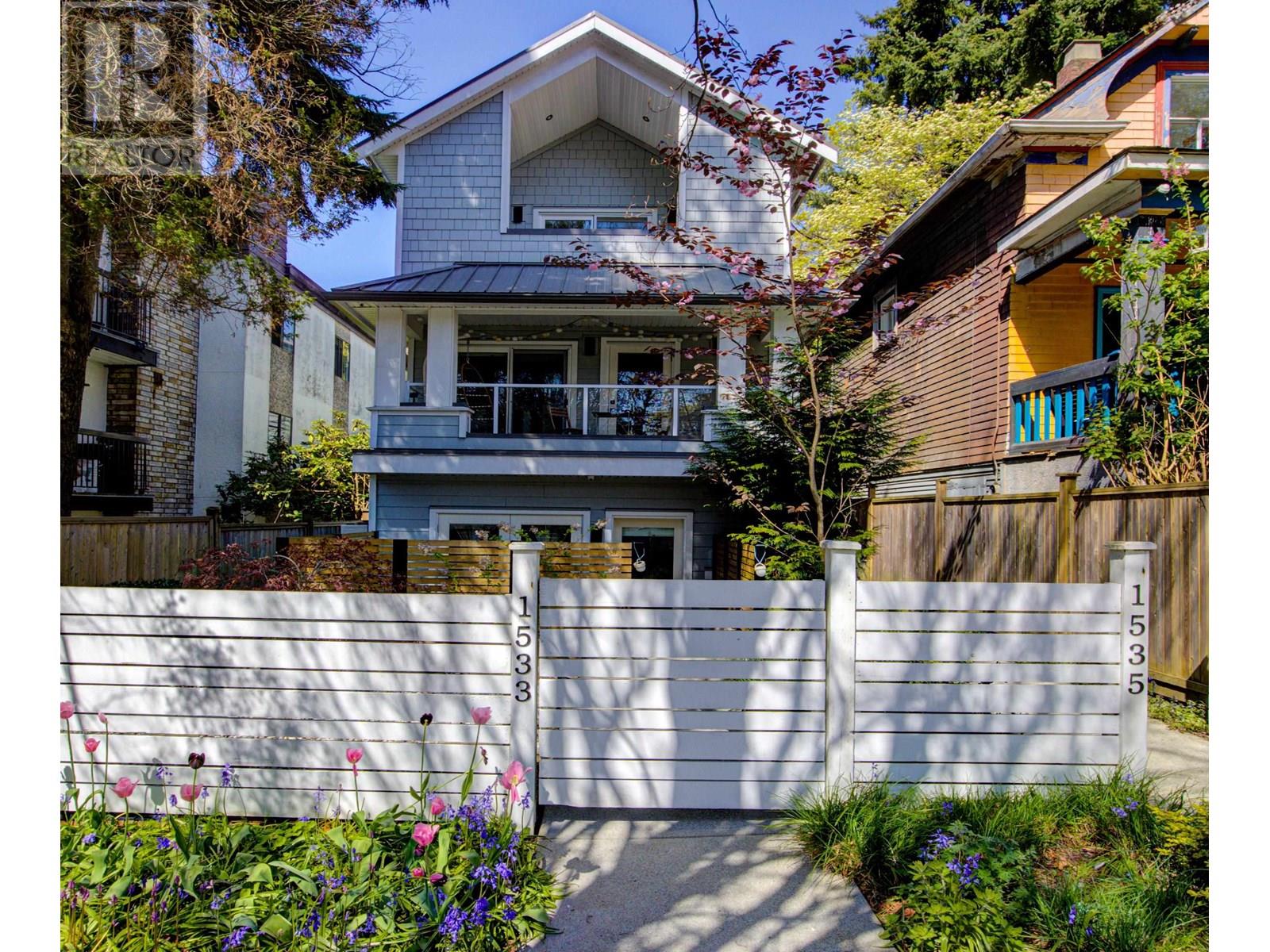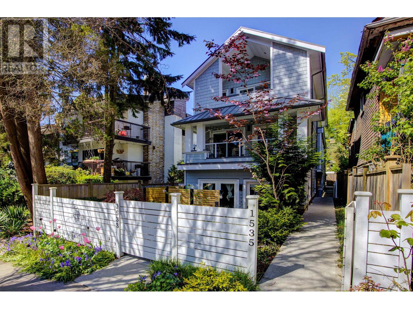 Beautifully designed back half-duplex that combines privacy & tranquility in a prime location; just 1 block from Commercial Dr! This thoughtfully designed home features a well-laid-out floor plan with soaring 10ft ceilings on the main. Upstairs, spacious primary bedroom with walk-in closet and ensuite bathroom, along with second bedroom and full bathroom. Top floor is perfect for home office, family room, or 3rd bedroom and opens to an amazing rooftop terrace-great for summer entertaining! High-end features include hardwood floor, radiant in-floor heating, double blackout blinds in bedrooms, on-demand hot water. Kitchen boasts a large island and full-size appliances, including a five-burner gas cooktop. Xtra: BBQ gas hookup & motorized gate. OH Sat and Sun July 12 &13, 2pm to 4pm. (id:48970) Show More