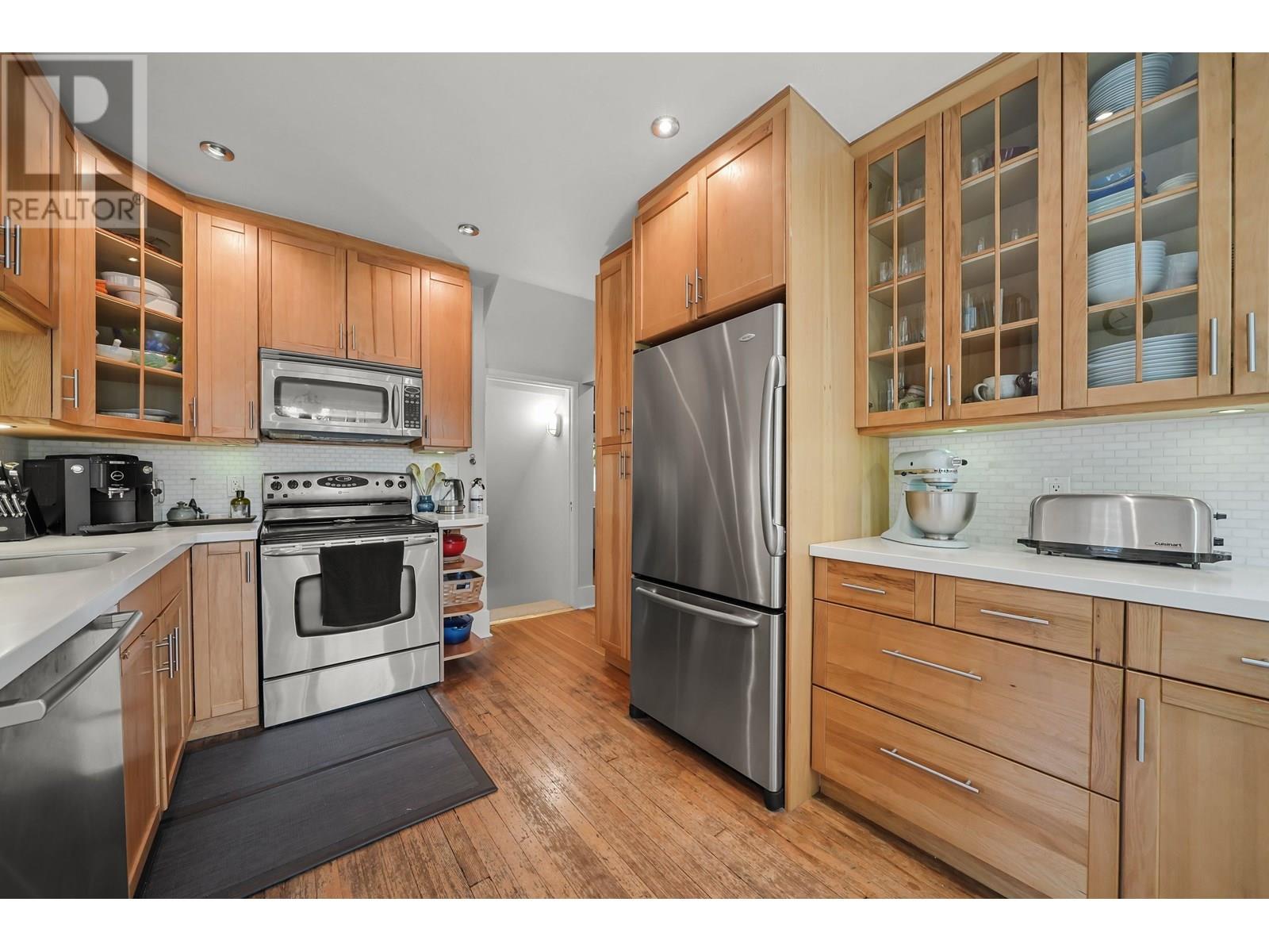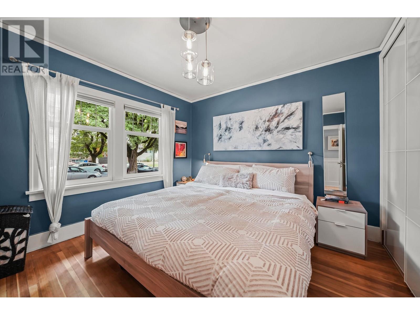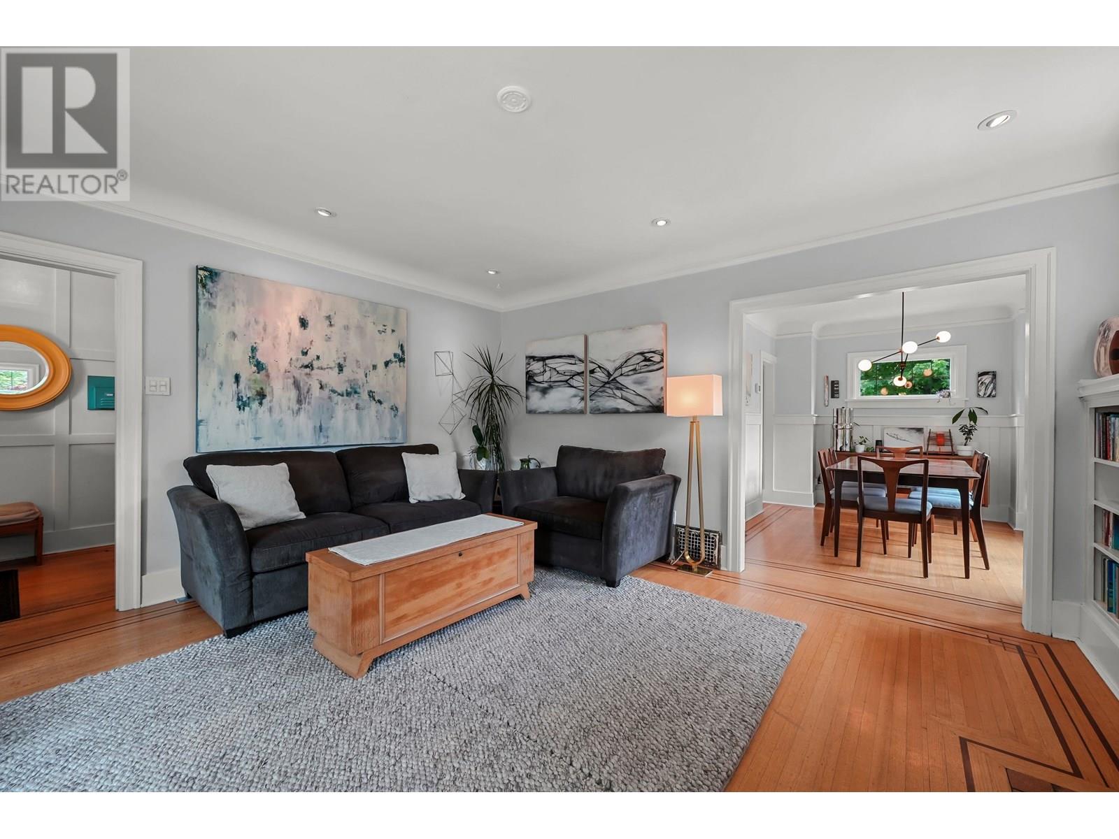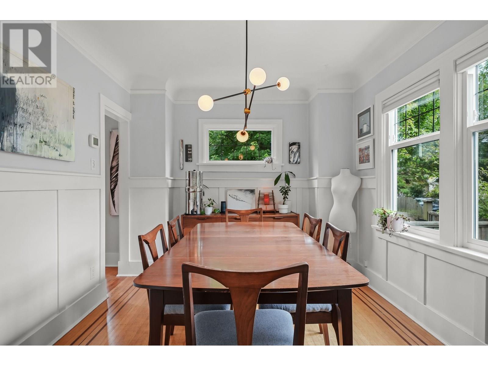 Situated on a 4,051 sqft corner lot, this beautifully updated 1929 home offers 5 beds 2 baths over 2,400 sqft of living space over 3 levels. The main floor has original hardwood floors, a sunlit living room with a wood-burning fireplace, a formal dining room and a functional kitchen with breakfast nook that opens to a 200 sqft deck. Two bedrooms and a full bath complete this level. Upstairs offers two generously sized bedrooms. Downstairs includes a spacious bedroom, spa-like bath, large rec room and flex area, cold cellar and extra storage. It also has walk-out access to the private backyard-ideal for guests or extended family. Modern upgrades include on-demand hot water, forced air heating, updated vinyl windows, updated roof and a lovingly maintained garden. A home like this is rare! (id:48970) Show More