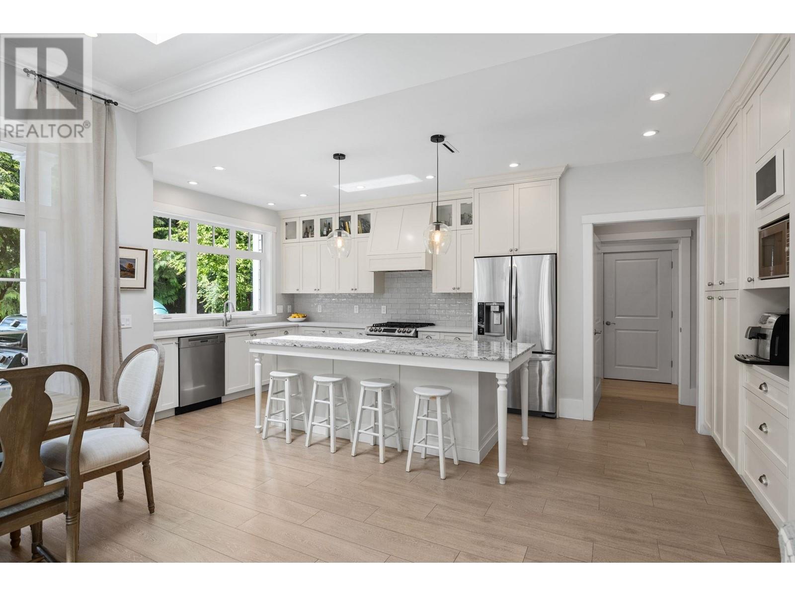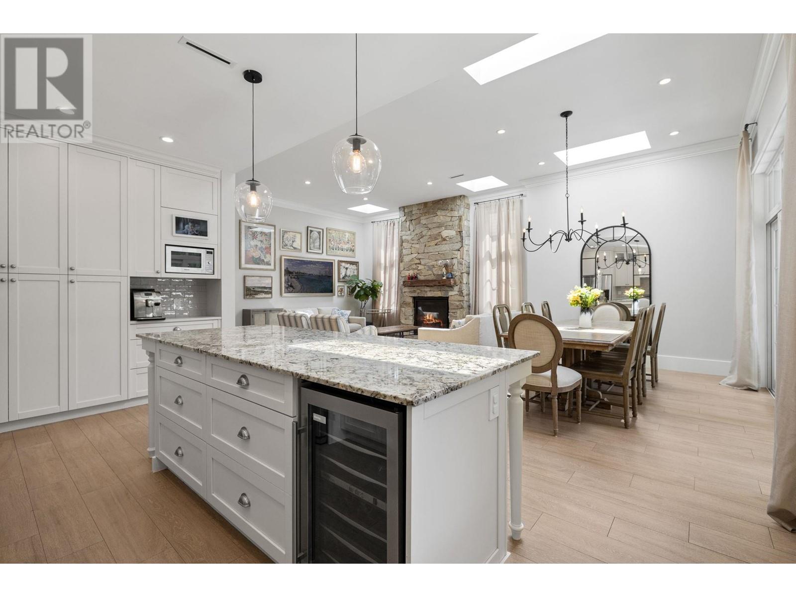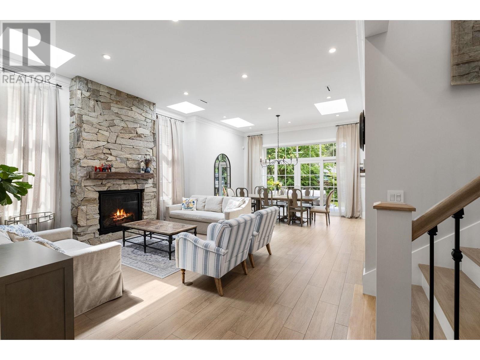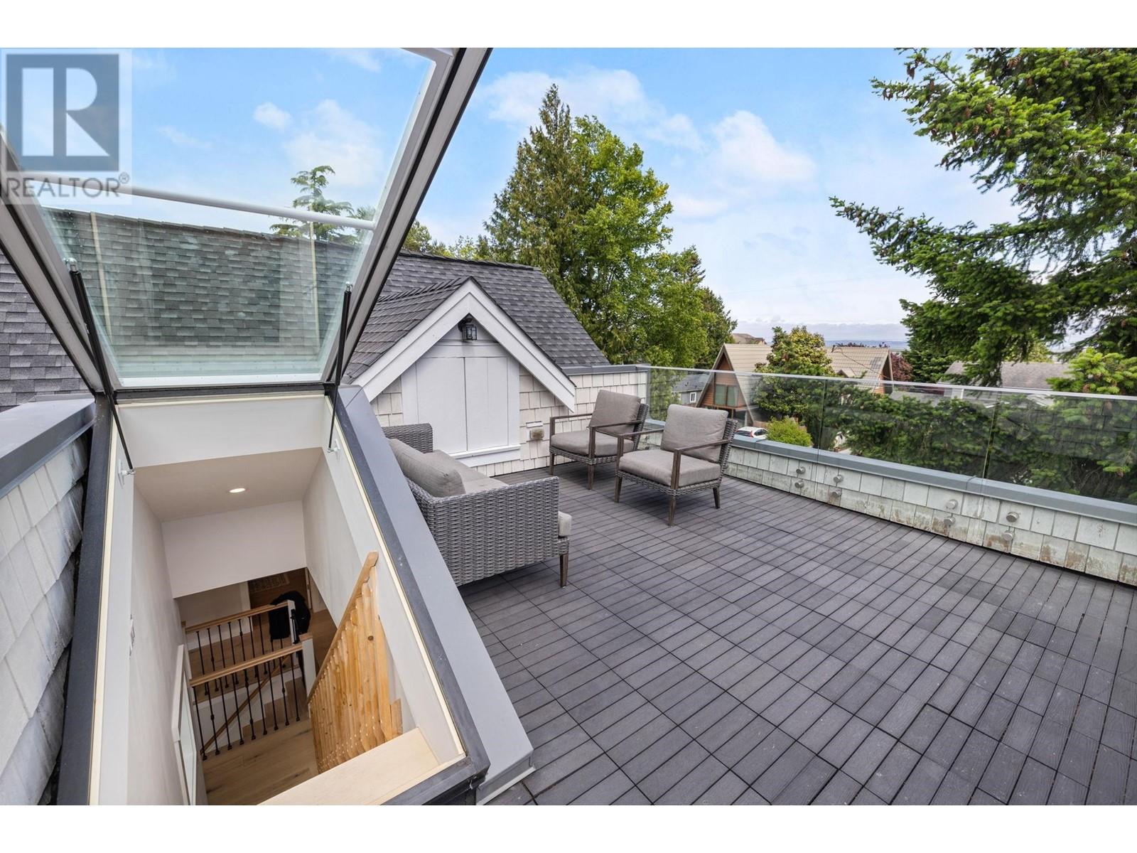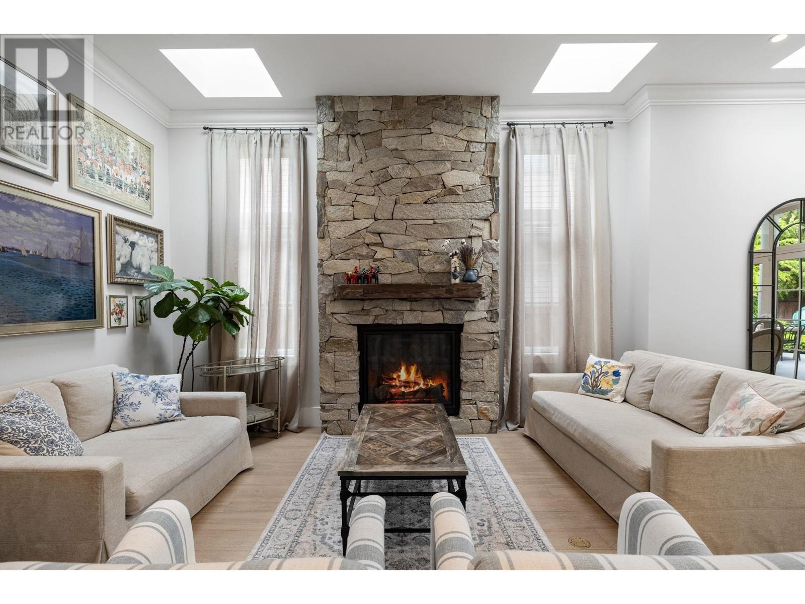 This one-of-a-kind residence offers unparalleled craftsmanship & seamless blend of indoor & outdoor living. Designed w meticulous attention to detail, this 2731 square ft home is a true mstrpiece. Open-concept flr plan & 11 ft ceilings creates airy & expansive atmosphere. Stone finishes add elegance & timeless appeal. Large covered deck off living rm extends living space outdoors, perfect for entertaining or relaxing. Enjoy breathtaking views of ocean & beyond to White Rock from private rooftop deck. Choose btwn 2 luxurious mstr bdrms, each featuring stunning spa-like ensuites. Flr-to-ceiling stone fireplace serves as central feature in living area. In-floor heating throughout ensures warmth & comfort year-round. Dbl garage provides ample space for vehicles & storage. Come view today. (id:48970) Show More