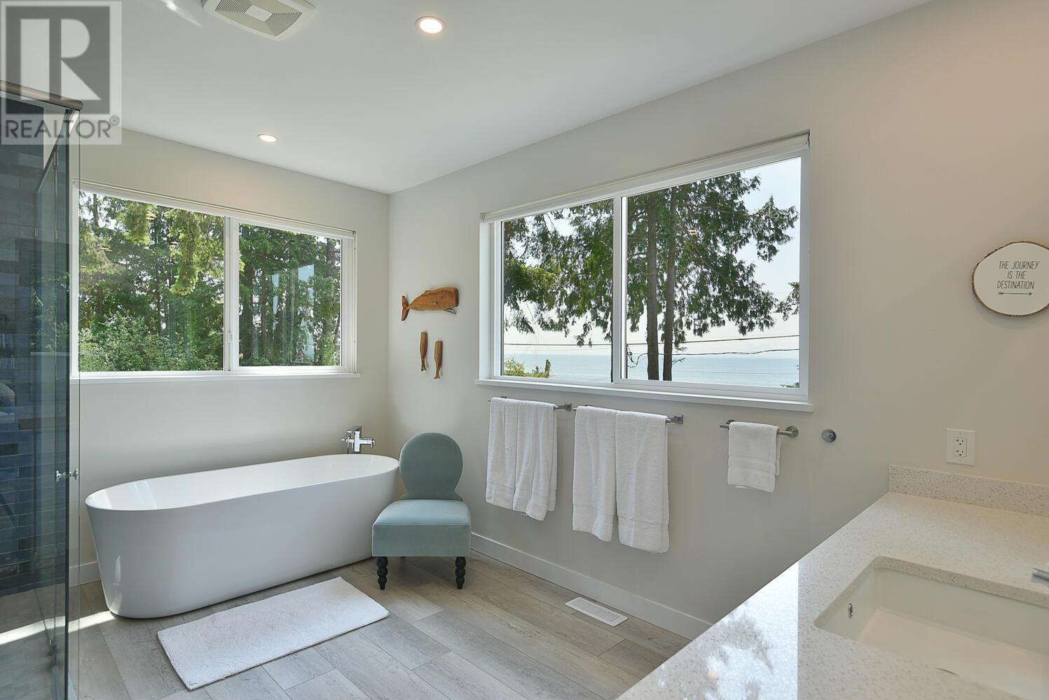 Stunning walk out beachfront home on a level half acre. This is the legacy property you´ve been waiting for. Located on coveted Ocean Beach Espl this meticulous custom fully rebuilt 2-story, 4 bed home offers thoughtful design, sweeping southwest ocean views and true West Coast living. Bright, open layout with gourmet kitchen, gas appliances, 2 gas fireplaces, A/C, ample built-in storage and excess parking. Gorgeous open concept spacious primary suite with spa like master bath. Private well and potential to add a 960 square ft dwelling. Airtight built, and under 2-5-10 warranty. Minutes to the ferry. (id:48970) Show More