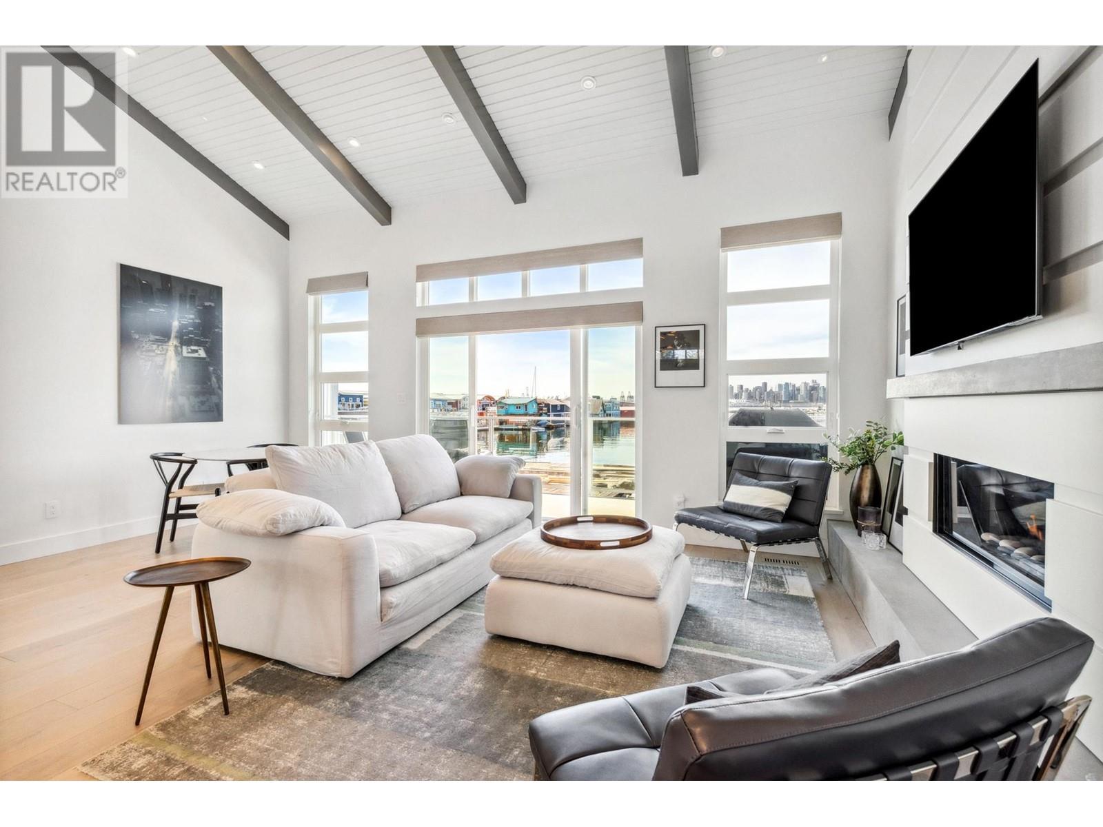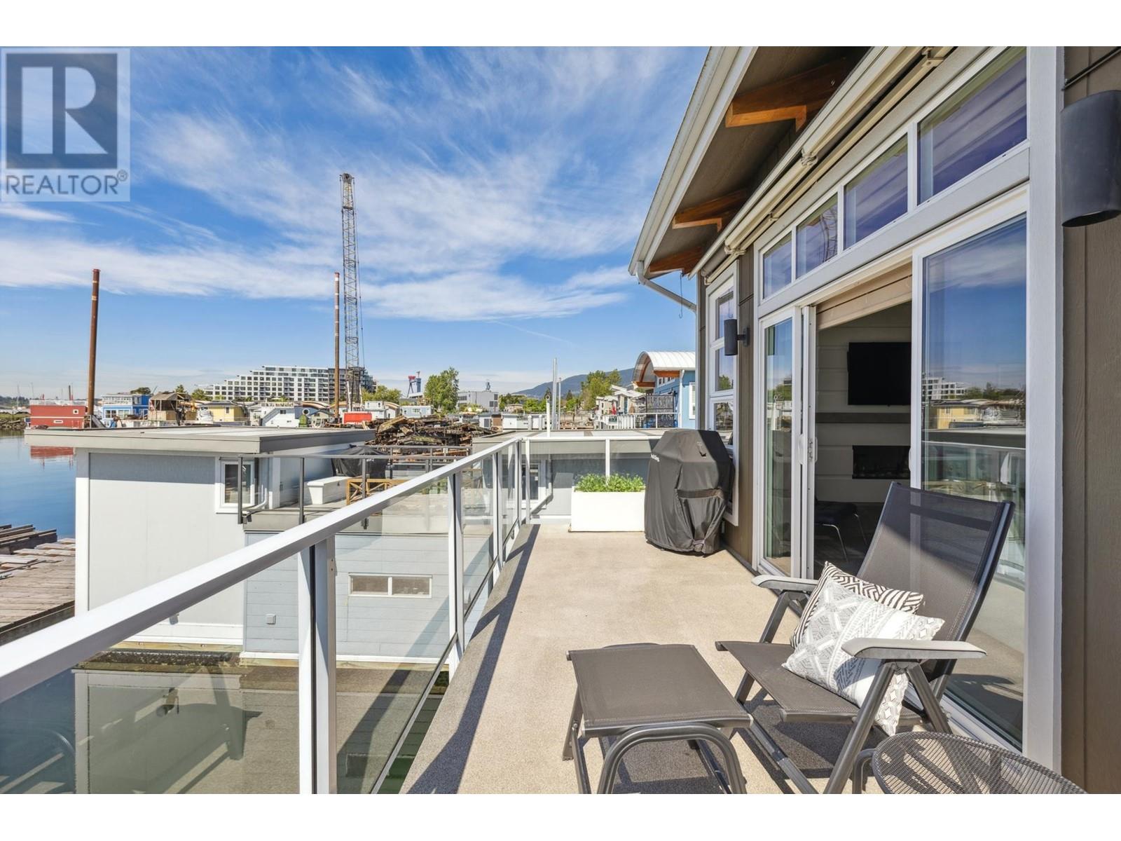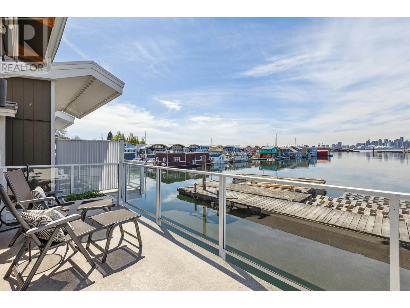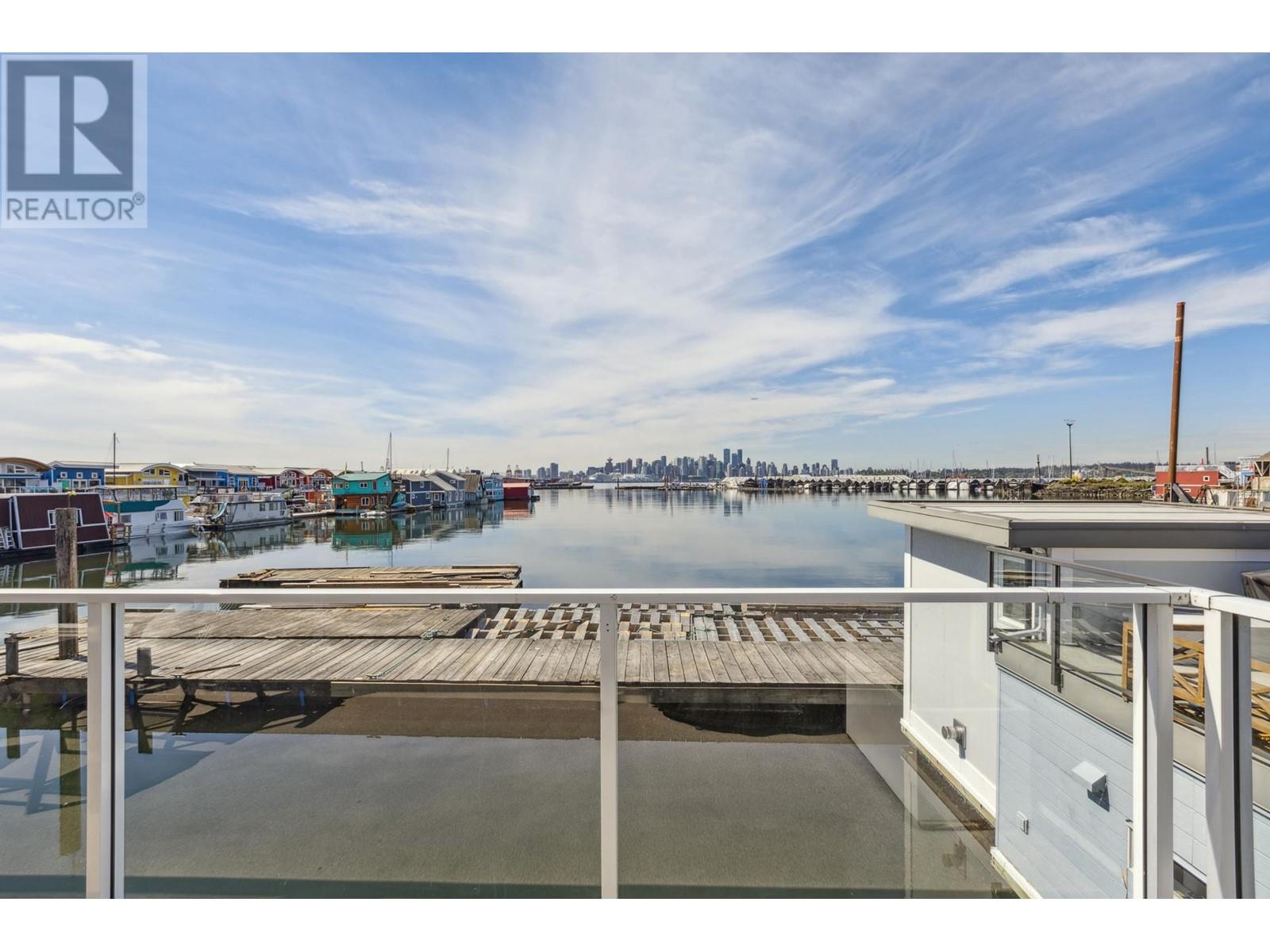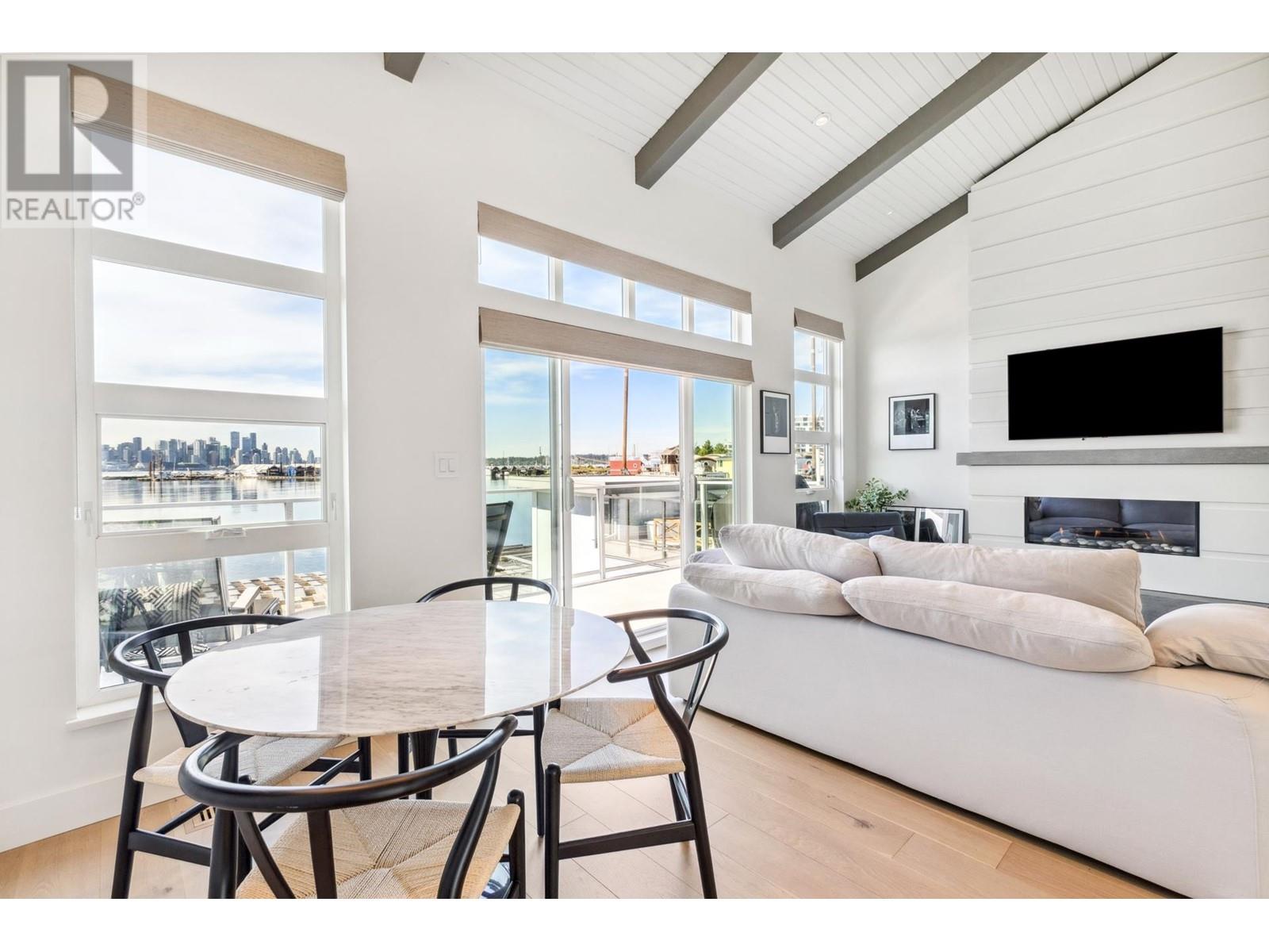 Live on the water in this renovated 2-bed, 2-bath, 1,182 sq/ft float home at Mosquito Creek Marina. With rare north-south exposure and stunning views of the water and downtown, this home offers natural light & modern elegance. The reverse floor plan maximizes the view, with an open-concept main level featuring white oak floors, custom millwork, a gas ffp, vaulted ceilings, and a chef´s kitchen with large island. Sliding doors open to a 151 sq/ft deck with awning-ideal for relaxing or entertaining. Downstairs: two bedrooms, including a spacious primary with ensuite, plus a spa-like steam shower and in-unit laundry. Built with 2x6 construction, metal roof, and on-demand hot water. Airbnb/rentals allowed with yearly fee. Moorage: $1,130/m. Steps to Spirit Trail, Shipyards, and Lonsdale Quay. (id:48970) Show More