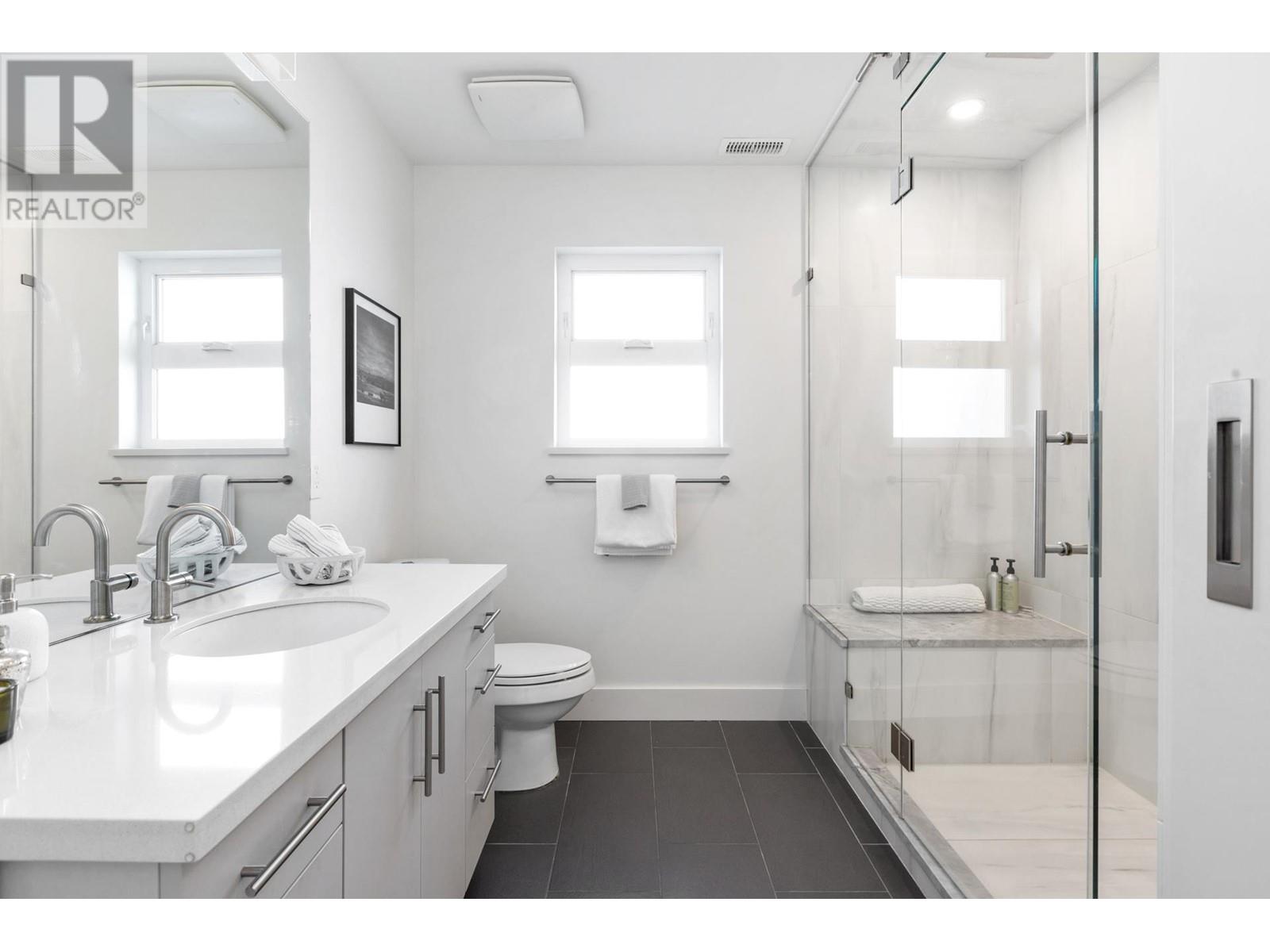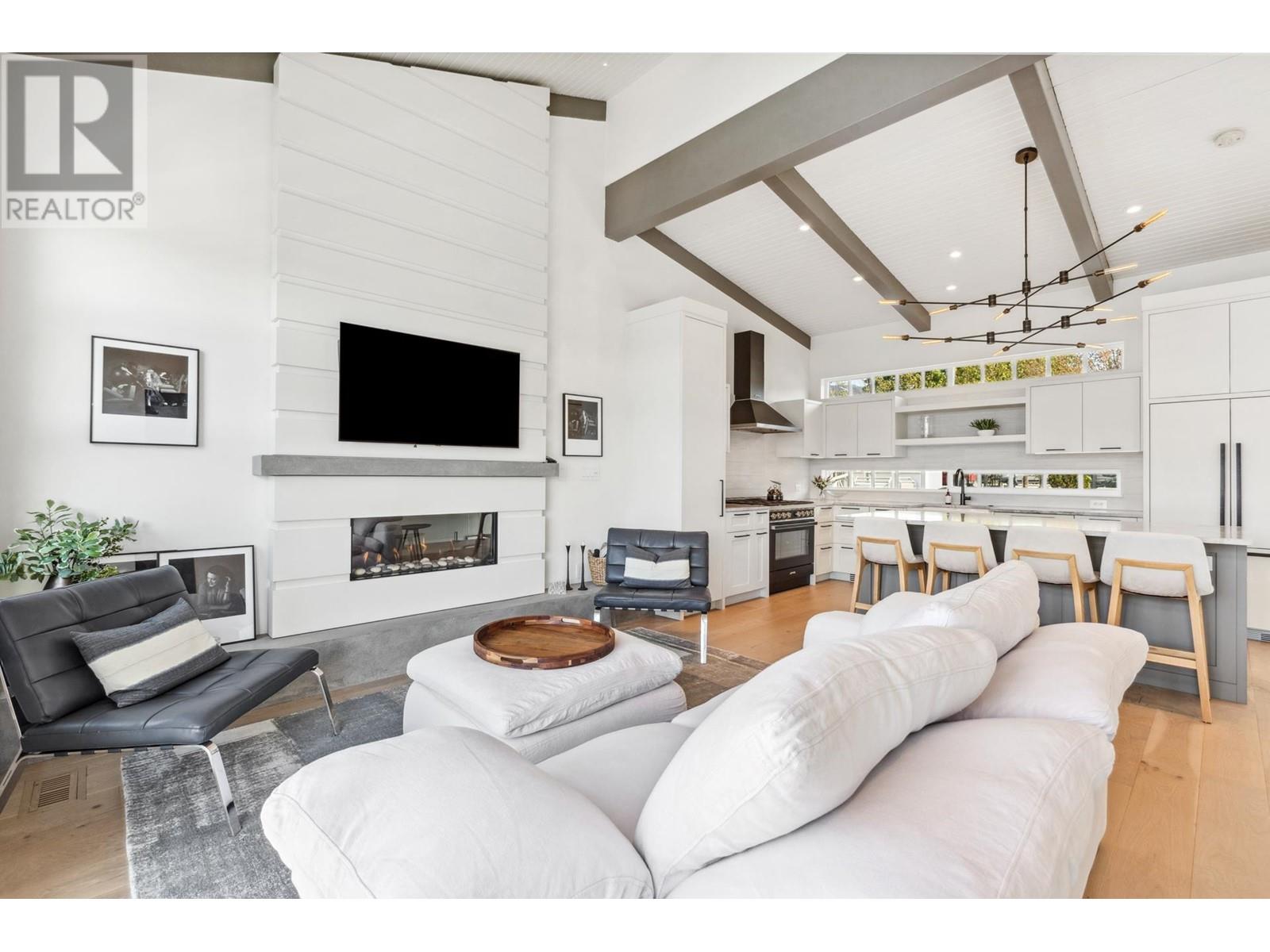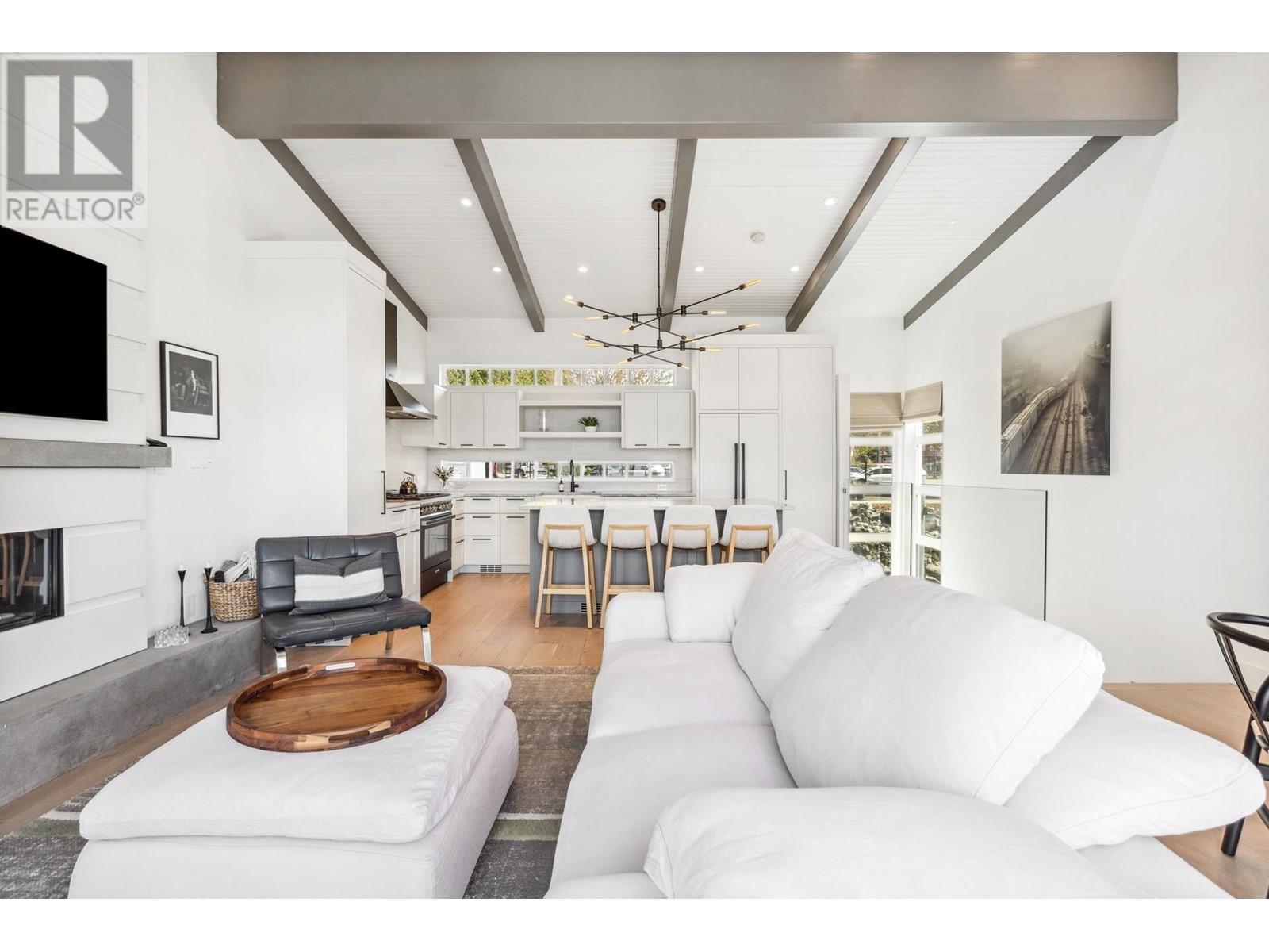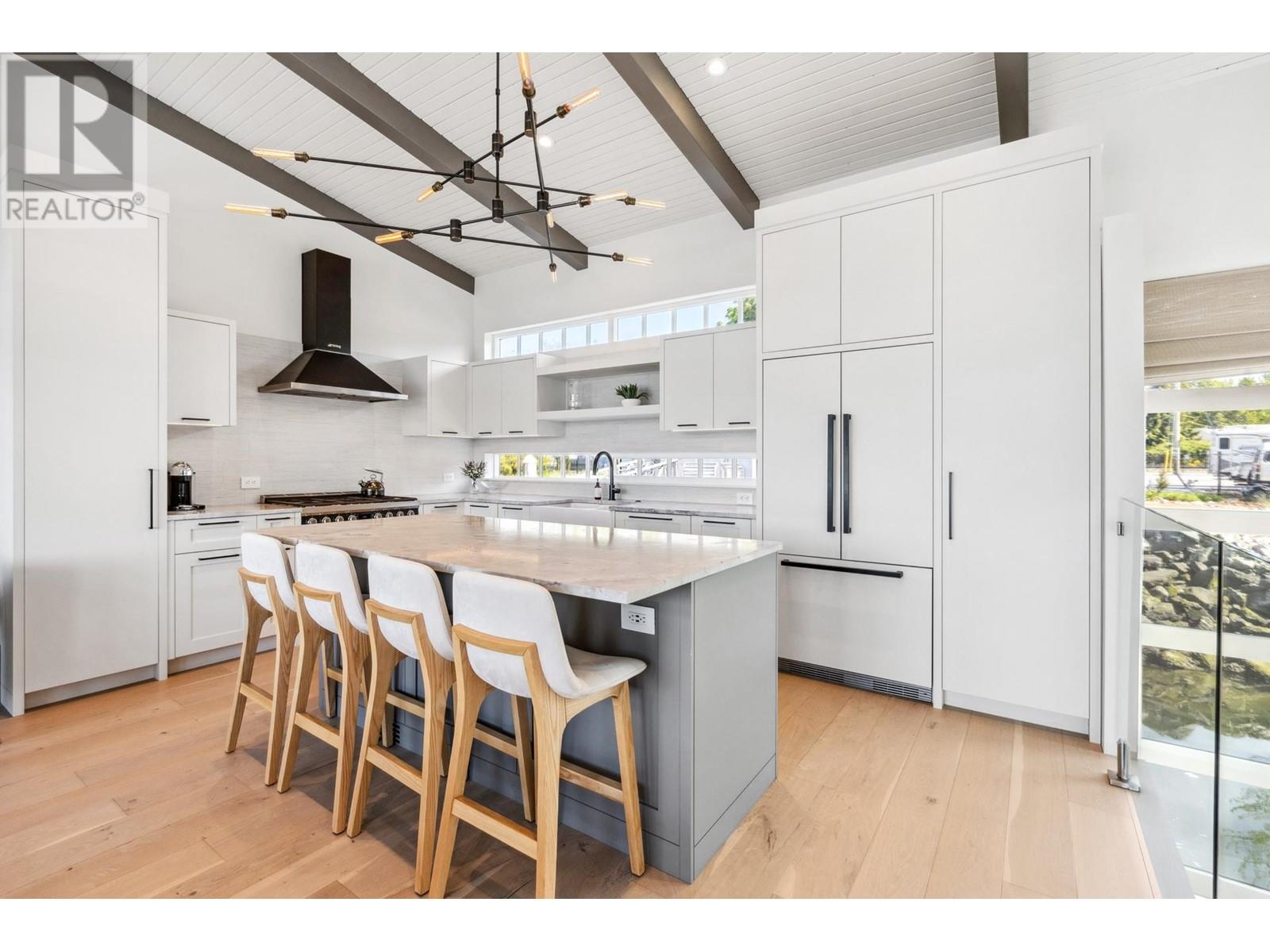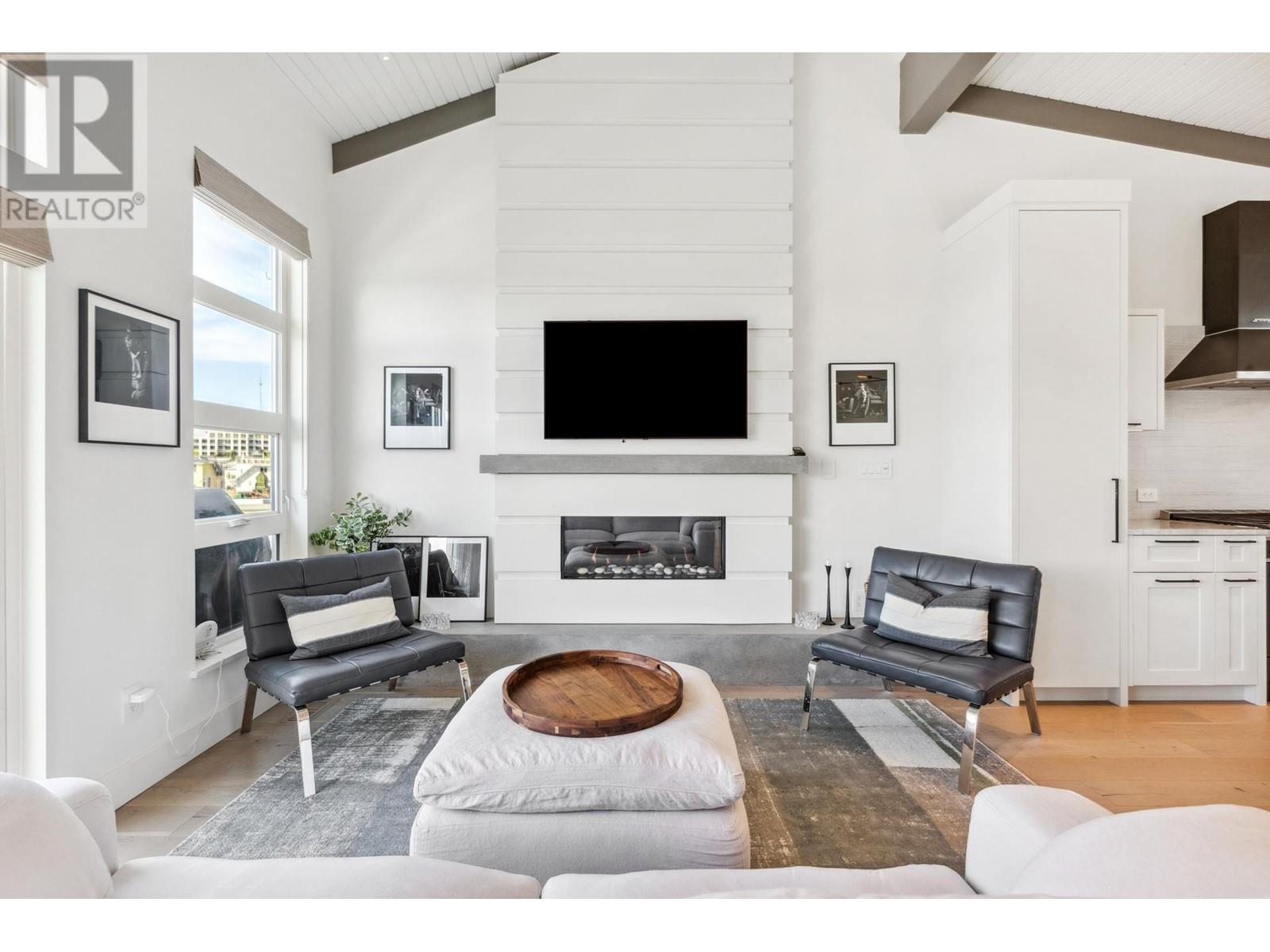 Live on the water in this renovated 2-bed, 2-bath, 1,182 sq/ft float home at Mosquito Creek Marina. With rare north-south exposure and stunning views of the water and downtown, this home offers natural light & modern elegance. The reverse floor plan maximizes the view, with an open-concept main level featuring white oak floors, custom millwork, a gas ffp, vaulted ceilings, and a chef´s kitchen with large island. Sliding doors open to a 151 sq/ft deck with awning-ideal for relaxing or entertaining. Downstairs: two bedrooms, including a spacious primary with ensuite, plus a spa-like steam shower and in-unit laundry. Built with 2x6 construction, metal roof, and on-demand hot water. Airbnb/rentals allowed with yearly fee. Moorage: $1,130/m. Steps to Spirit Trail, Shipyards, and Lonsdale Quay. (id:48970) Show More