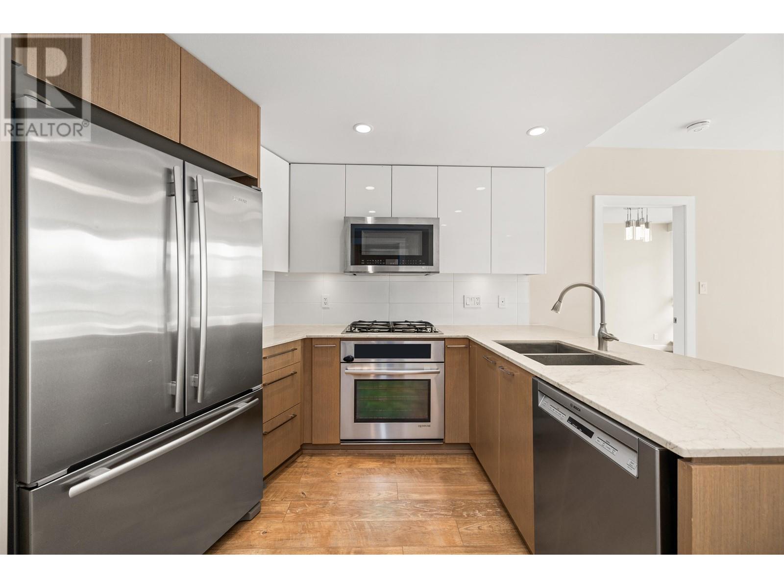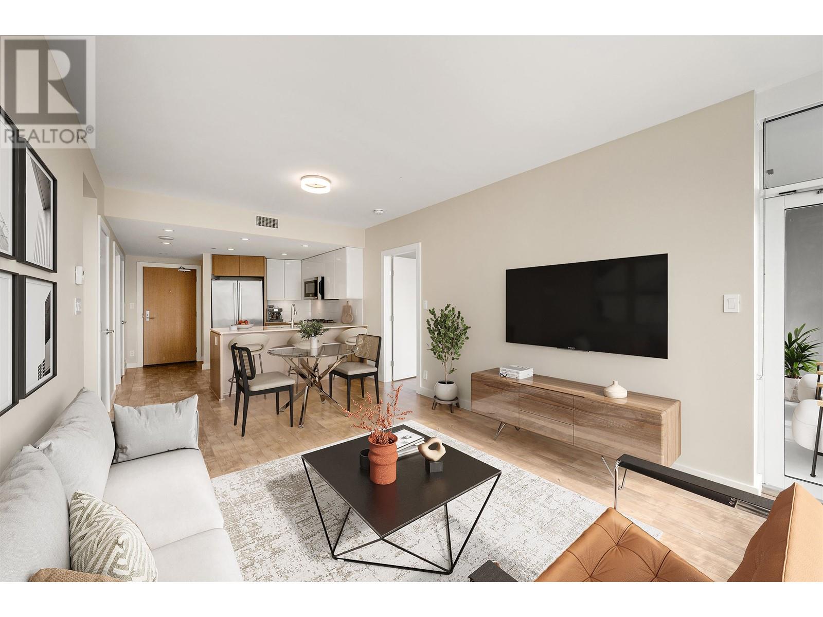 Experience the ultimate urban lifestyle in this stylish 2 Bed + Flex, 2 Bath condo in Olympic Village. Live steps from the seawall, Skytrain, and vibrant shops, cafes and dining. Designed for comfort and style, with two-toned cabinets, marble countertops, stainless steel appliances, central A/C and in-suite laundry. Soak in stunning city views and enjoy resort-style amenities: gym, sauna, media room, rooftop terrace, garden and 24/7 concierge. Includes prime parking, storage and a double bike locker - ideal for active, connected living in one of Vancouver's most sought-after neighbourhoods. (id:48970) Show More
