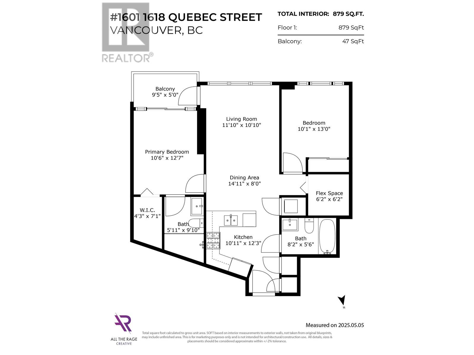 - Area 879 sq ft