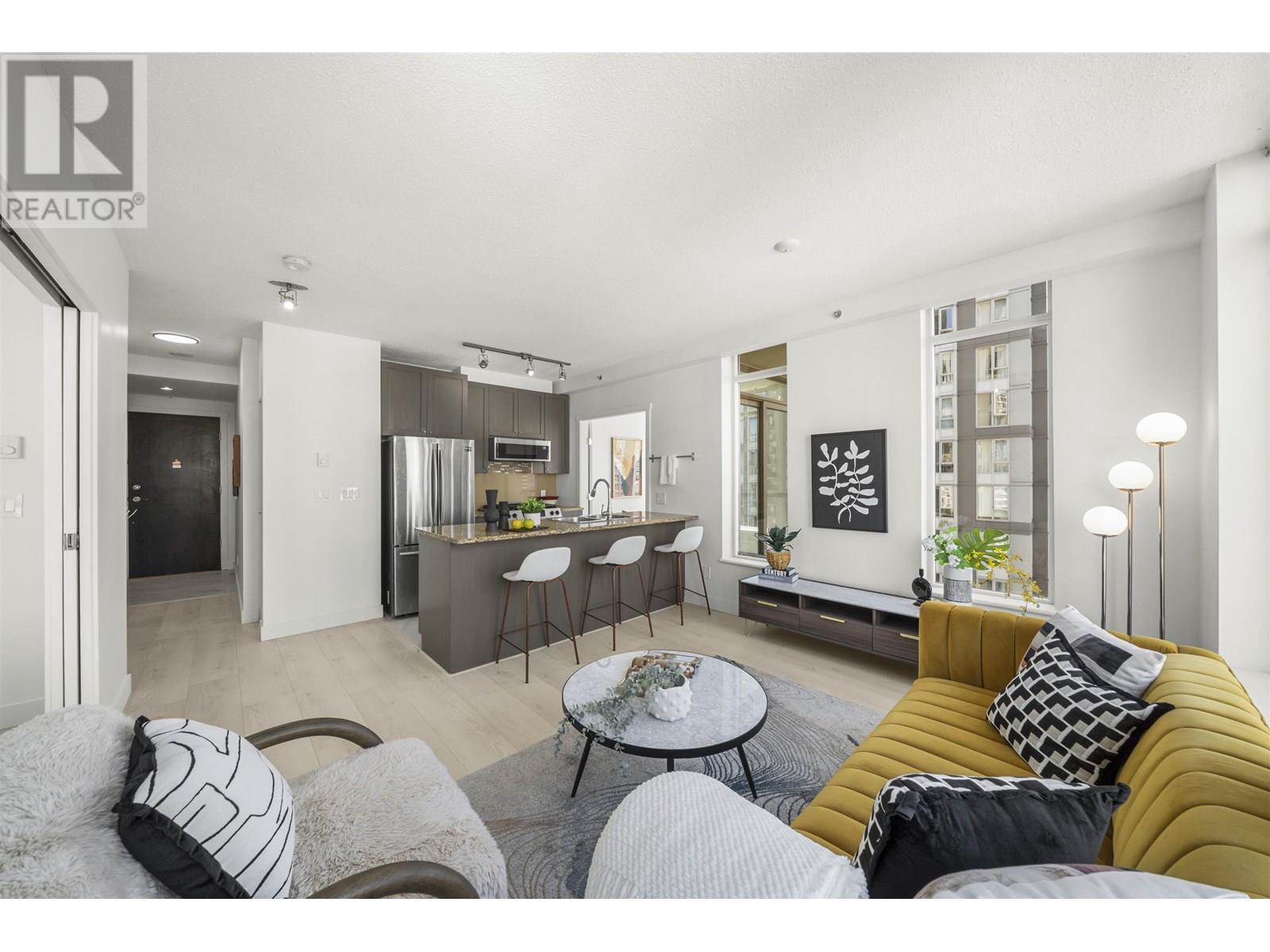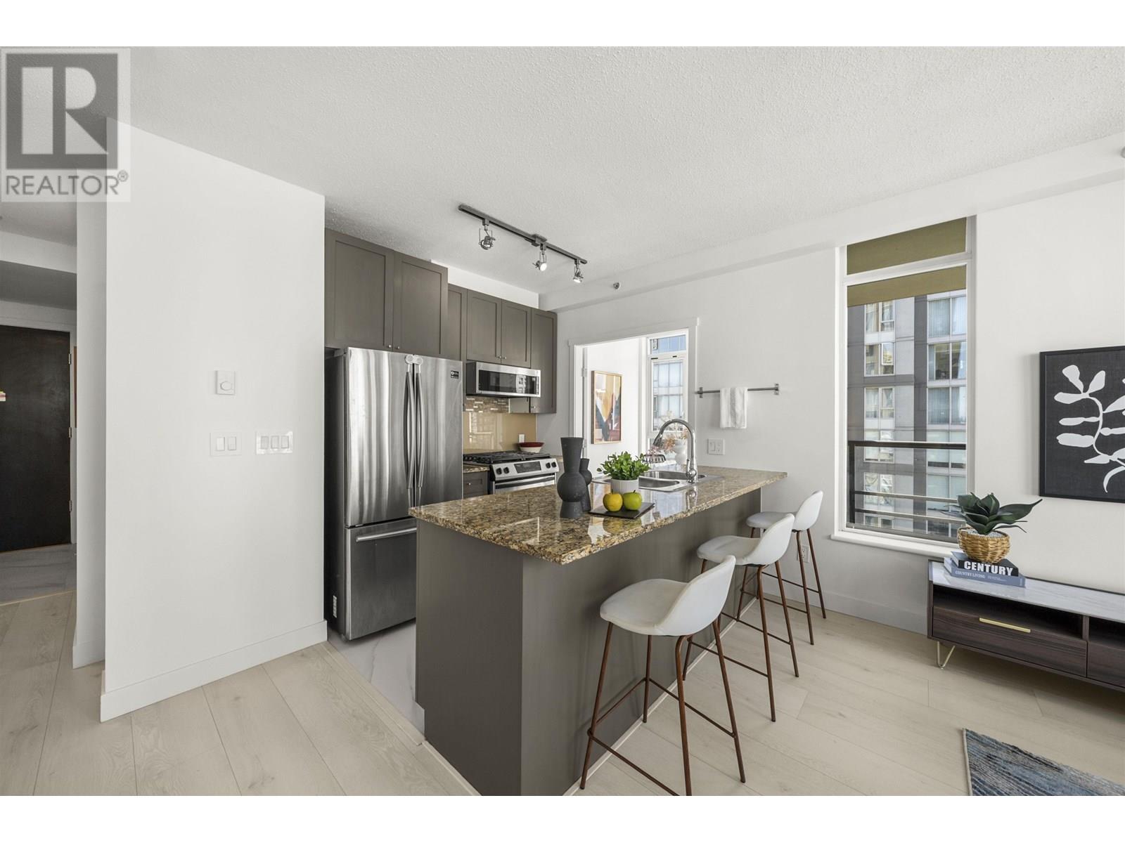 Welcome to The Bentley in the heart of Yaletown Downtown. This bright corner one bedroom home includes a den and solarium perfect for a home office, extra storage and dining area. Renovated with new laminate floors, tiles including the shower tiles, fresh paint and blinds. Enjoy peaceful city views from your balcony and large windows. North facing and thoughtfully laid out with no wasted space. Comes with one parking. Located steps to the best dining cafes shops and transit in Downtown Vancouver. Building amenities include a caretaker, court yard, gym, hot tub and EV charging. A great opportunity for professionals or investors. 2 pets allowed. No short term rentals allowed. Open House Sat, July 12 @ 2-4pm & Sun, July 13 @ 2-4pm. (id:48970) Show More