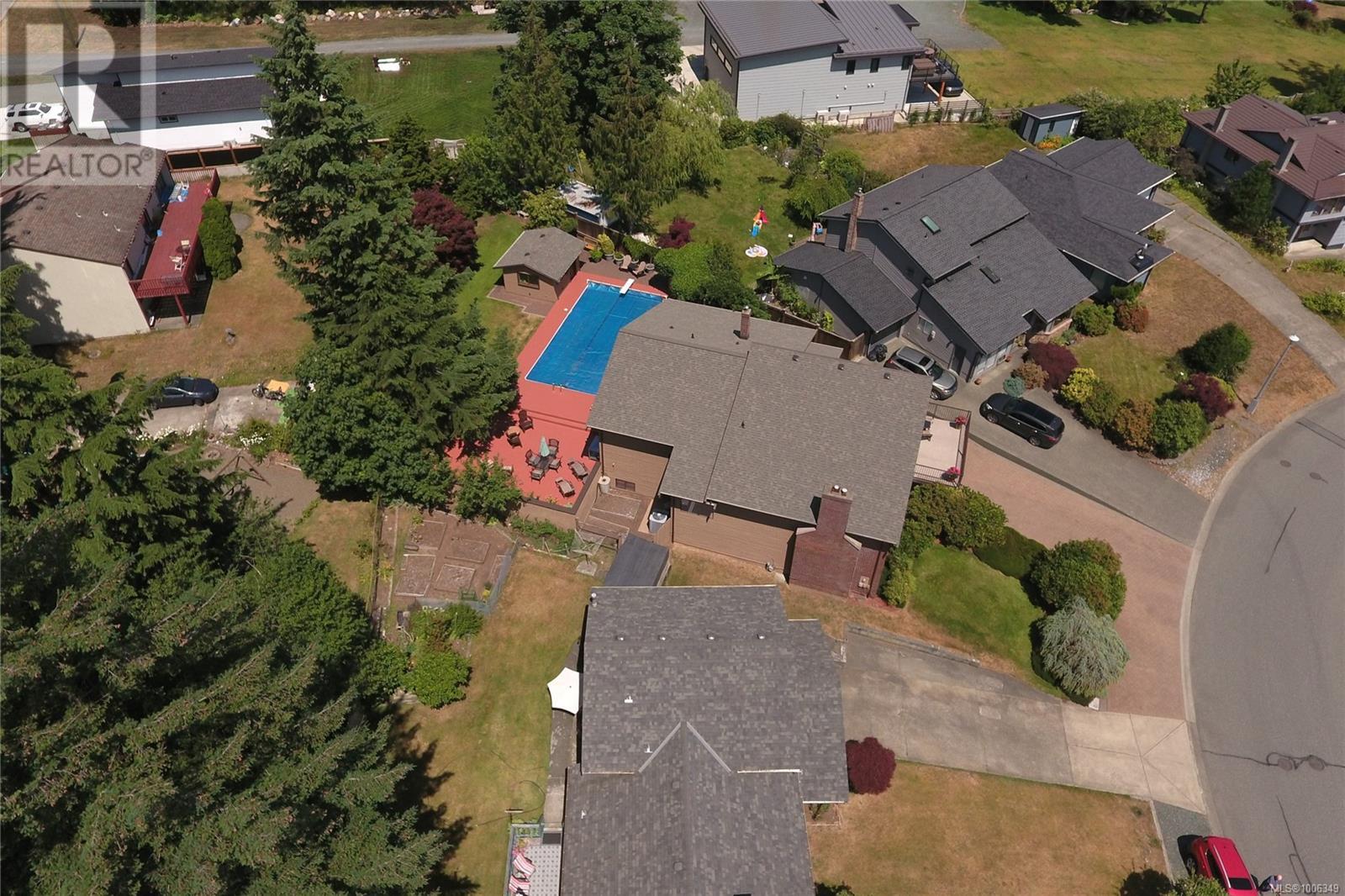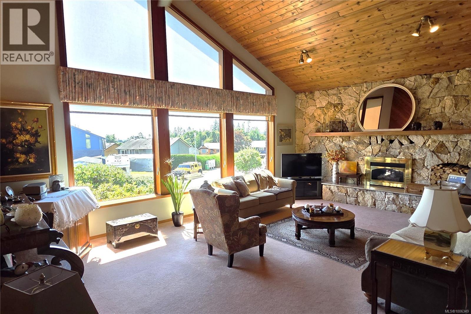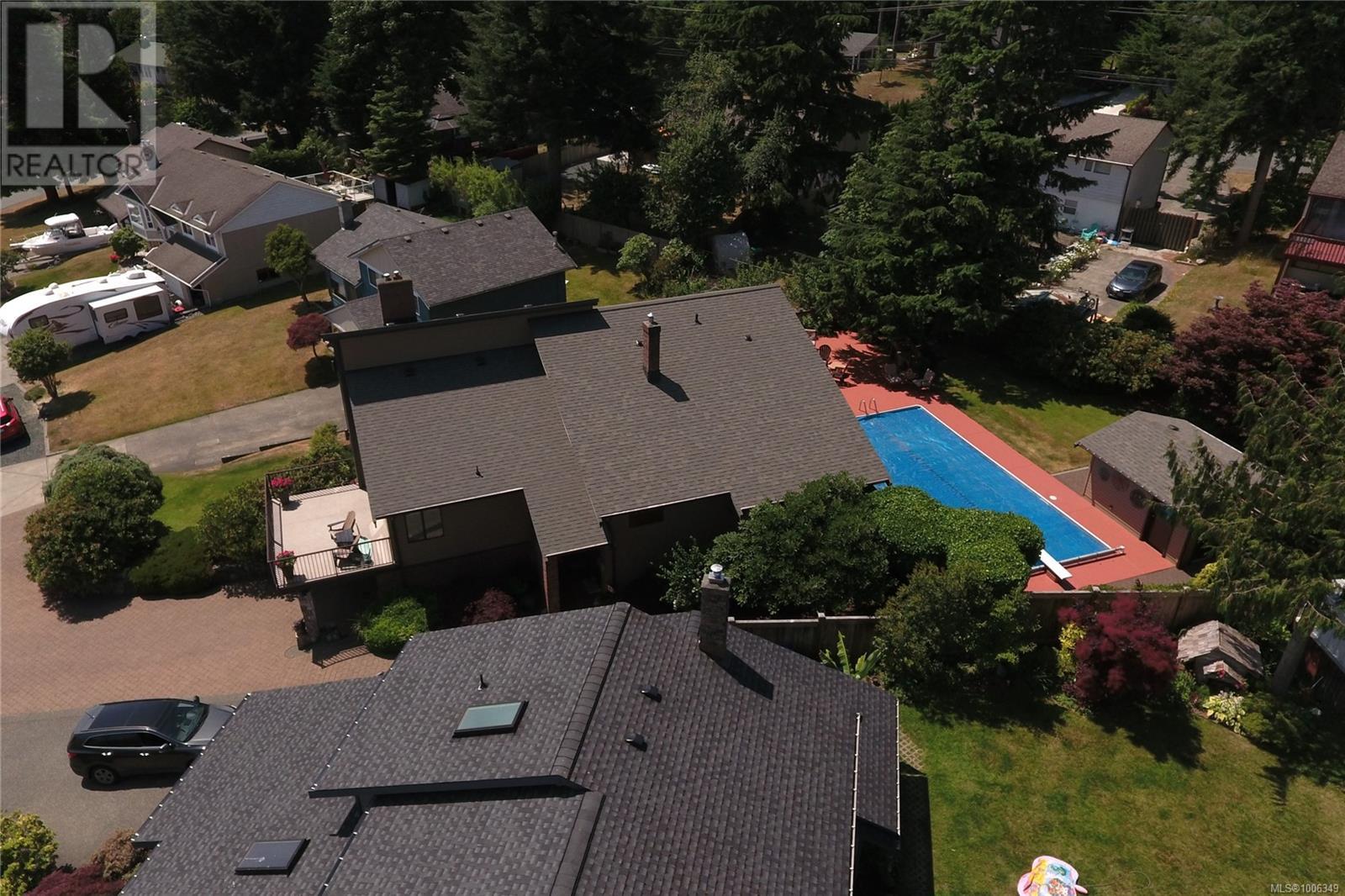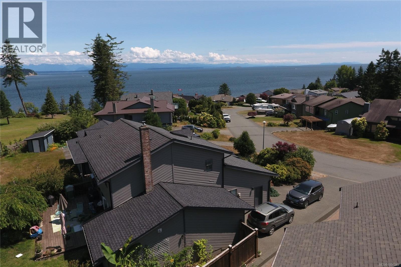 Don't miss this custom built 4,000+ square foot 5-bedroom family home in a very desirable well established neighbourhood, with wonderful ocean & mountain views, designed and built with entertaining and family in mind. The large open kitchen and eating nook feature wall-to-wall cabinets and built-in oven & stove top, and sliding door to the south-facing ocean view deck. The spacious sunken living room has a full bank of bright daylight windows, high vaulted ceilings and a cozy gas insert, and opens to the formal dining area and a quaint & private sunroom. The primary bedroom is one of three on the main level, and features a large walk-in, 5-piece ensuite with double sized jacuzzi tub, and a separate make-up vanity. Downstairs you have 2 more bedrooms and a huge family room with built-in bench seating, pool table, and gas fireplace, ideal for large gatherings of friends or family. Out back, the fully fenced yard has a large patio, lush gardens and the in-ground pool for hosting the family gatherings. This home has been lovingly maintained for decades, and features upgraded Hunter Douglas blinds in the kitchen, roller shades and black-out blinds in the living room, newer roof in 2022, and upgraded with a heat pump for year round heating and cooling. Located in the very quiet Passage View neighbourhood, close to the Sportsplex, the ocean and Willow Point amenities. (id:48970) Show More