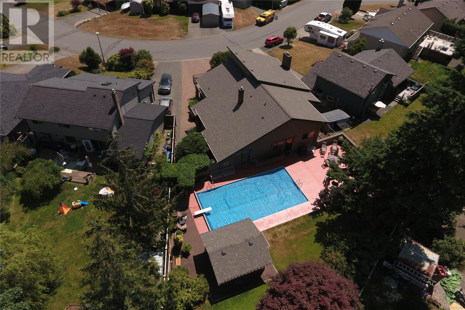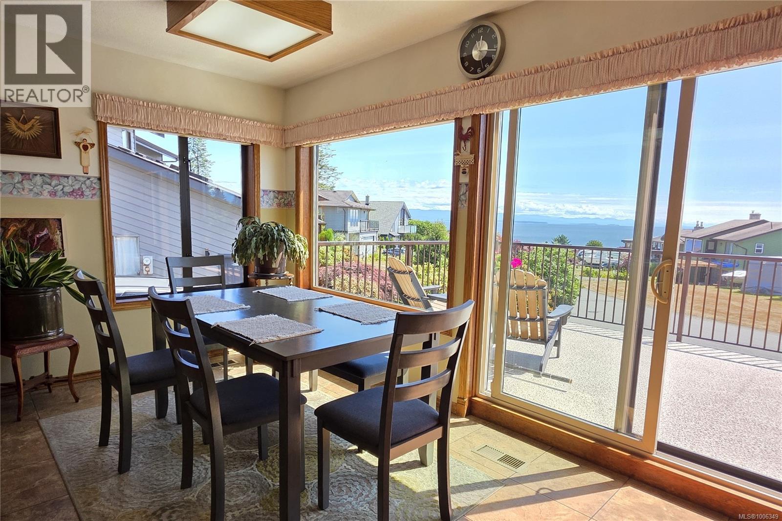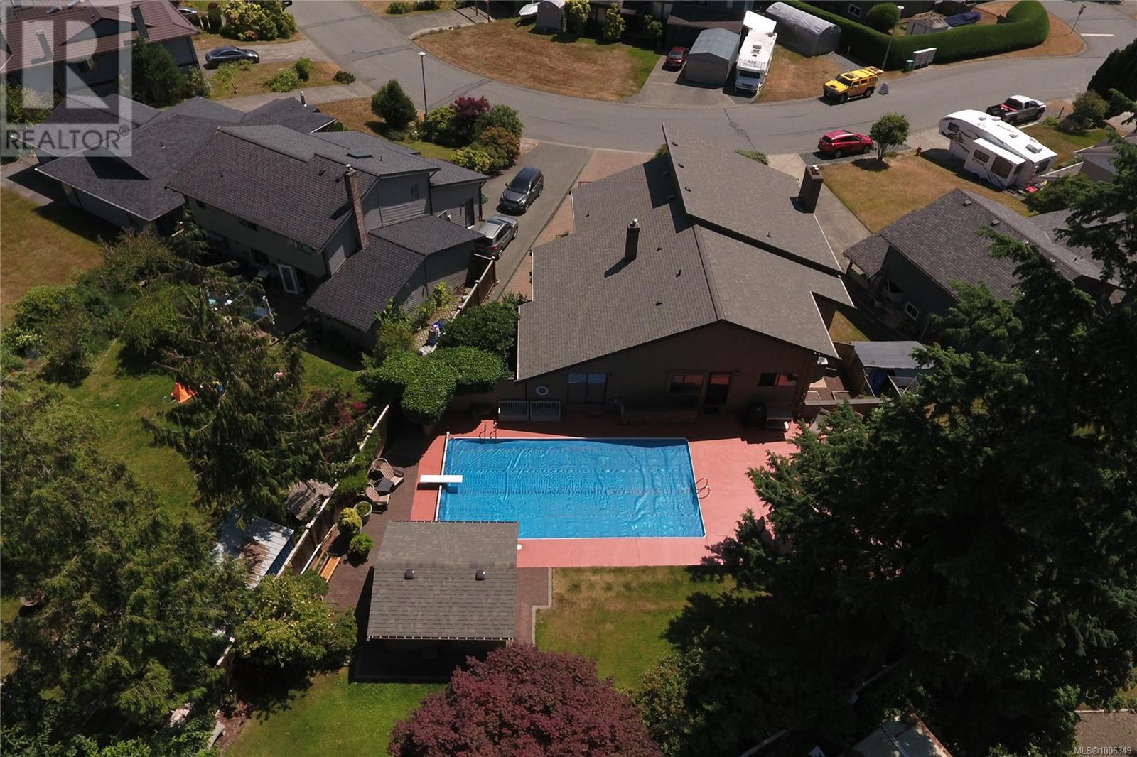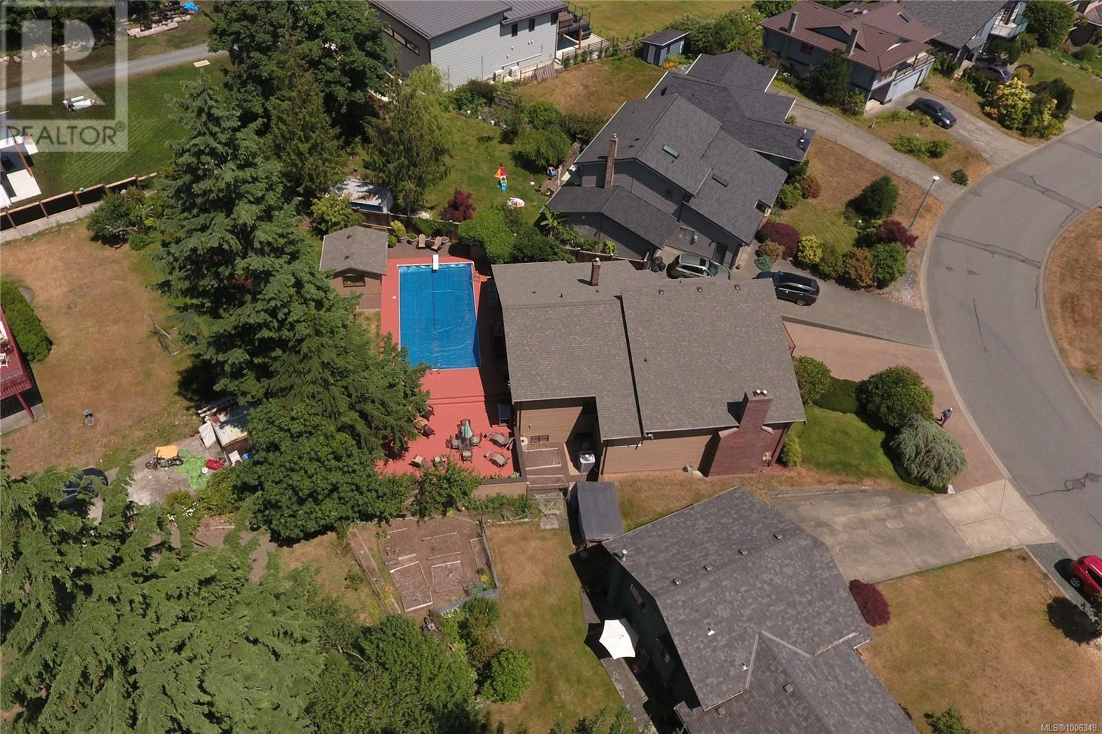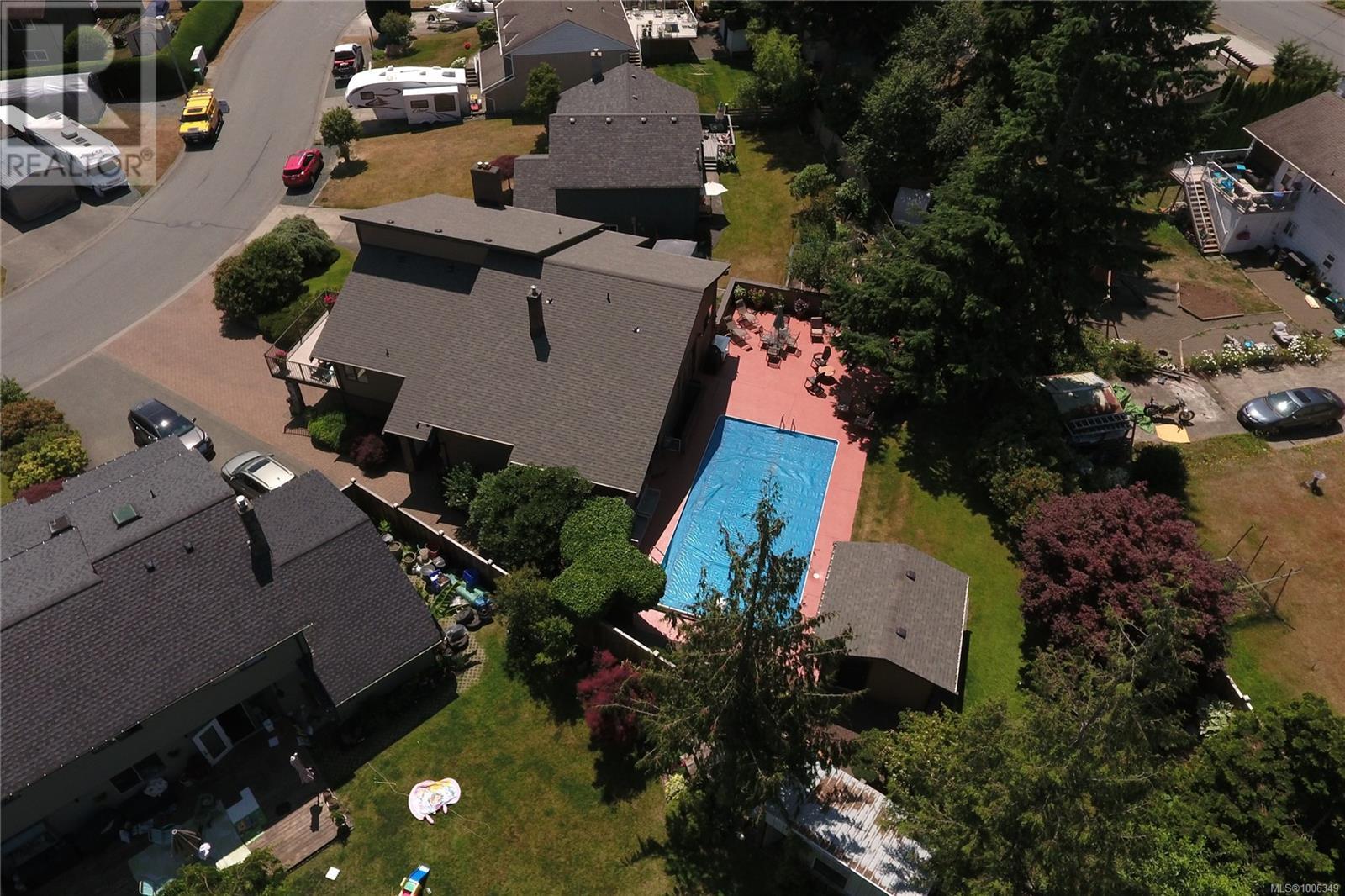 Don't miss this custom built 4,000+ square foot 5-bedroom family home in a very desirable well established neighbourhood, with wonderful ocean & mountain views, designed and built with entertaining and family in mind. The large open kitchen and eating nook feature wall-to-wall cabinets and built-in oven & stove top, and sliding door to the south-facing ocean view deck. The spacious sunken living room has a full bank of bright daylight windows, high vaulted ceilings and a cozy gas insert, and opens to the formal dining area and a quaint & private sunroom. The primary bedroom is one of three on the main level, and features a large walk-in, 5-piece ensuite with double sized jacuzzi tub, and a separate make-up vanity. Downstairs you have 2 more bedrooms and a huge family room with built-in bench seating, pool table, and gas fireplace, ideal for large gatherings of friends or family. Out back, the fully fenced yard has a large patio, lush gardens and the in-ground pool for hosting the family gatherings. This home has been lovingly maintained for decades, and features upgraded Hunter Douglas blinds in the kitchen, roller shades and black-out blinds in the living room, newer roof in 2022, and upgraded with a heat pump for year round heating and cooling. Located in the very quiet Passage View neighbourhood, close to the Sportsplex, the ocean and Willow Point amenities. (id:48970) Show More