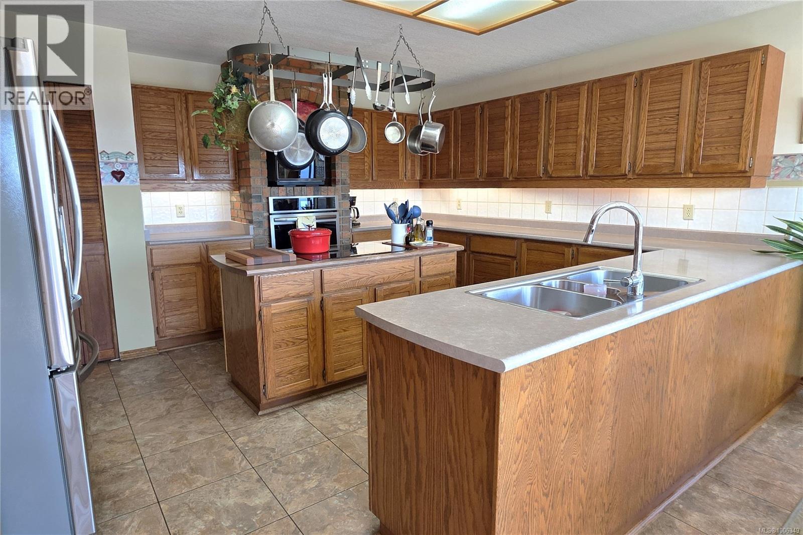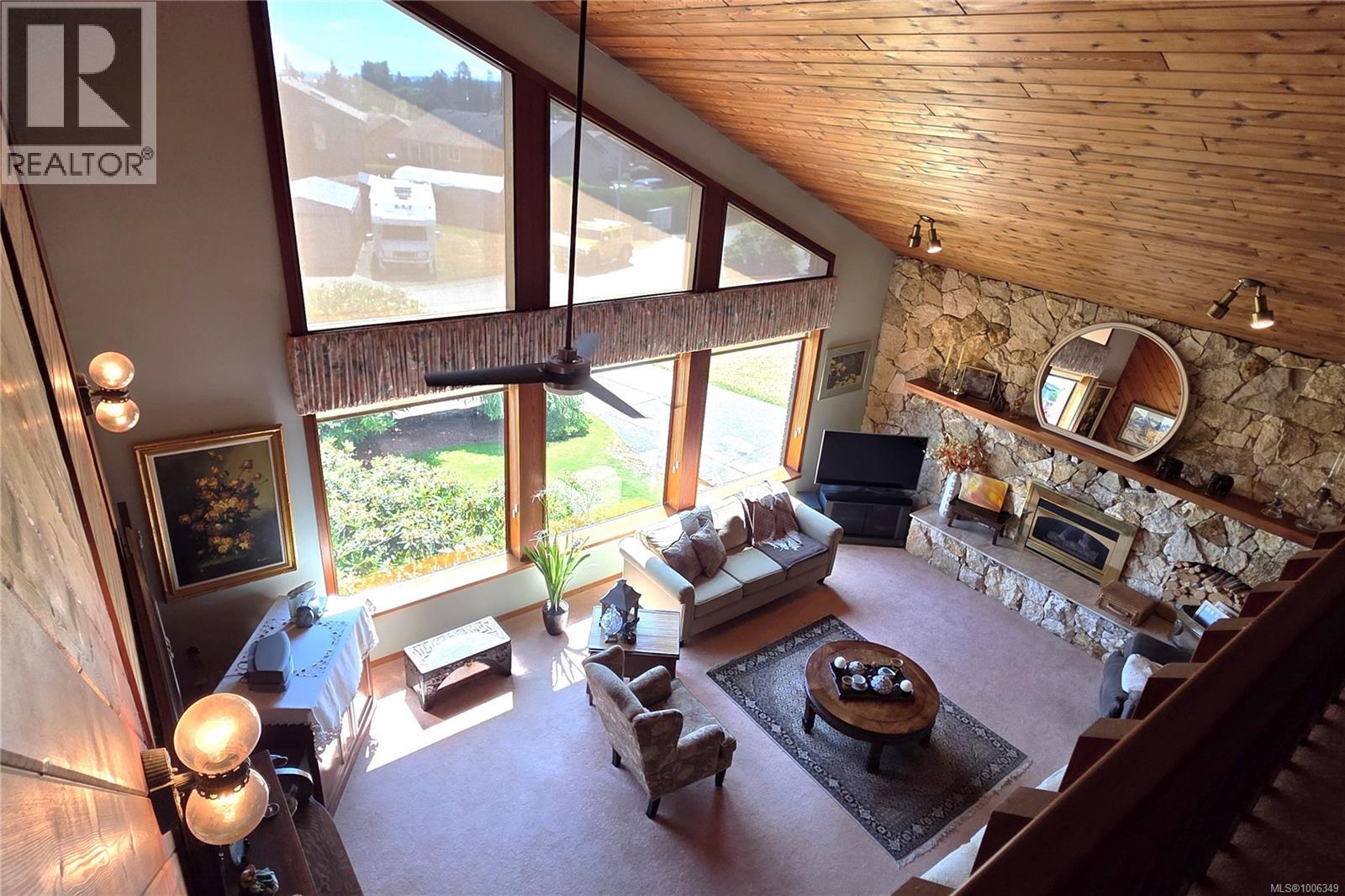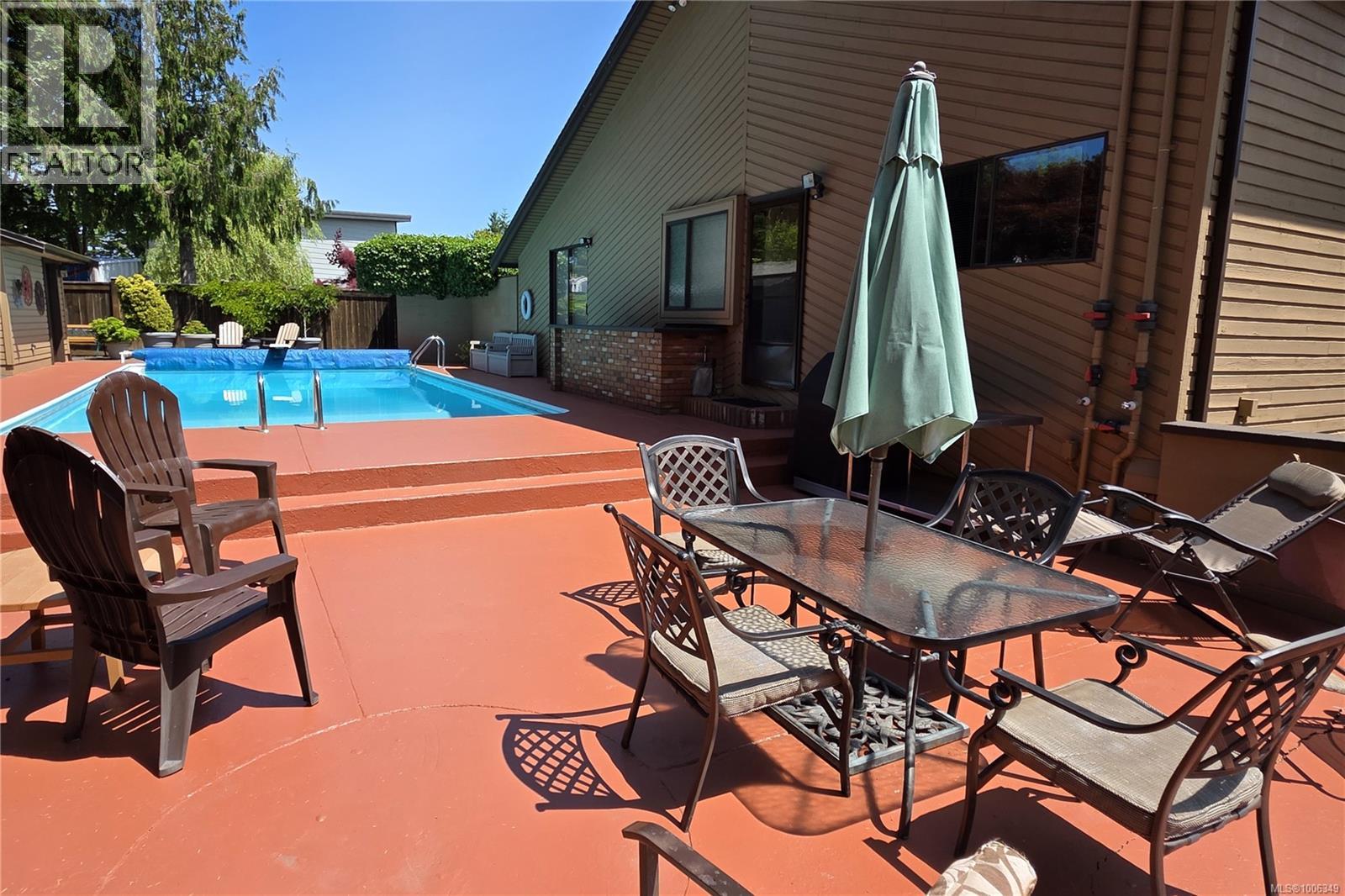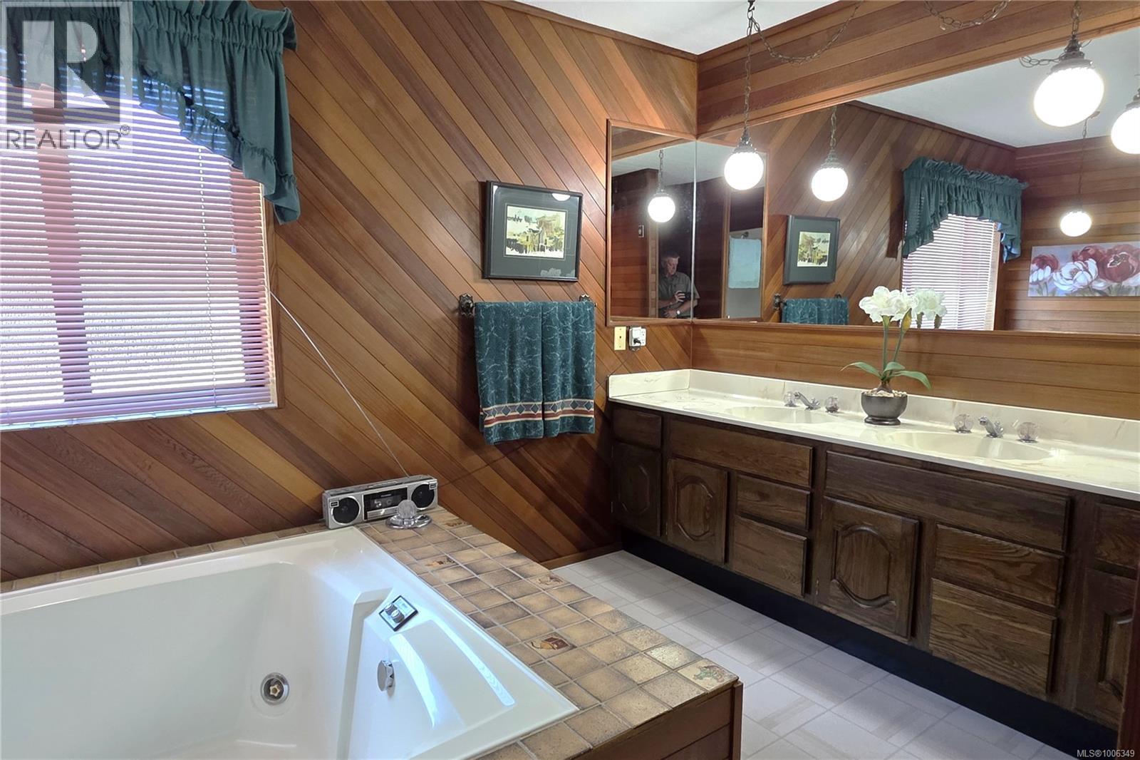 Don't miss this custom built 4,000+ square foot 5-bedroom family home in a very desirable well established neighbourhood, with wonderful ocean & mountain views, designed and built with entertaining and family in mind. The large open kitchen and eating nook feature wall-to-wall cabinets and built-in oven & stove top, and sliding door to the south-facing ocean view deck. The spacious sunken living room has a full bank of bright daylight windows, high vaulted ceilings and a cozy gas insert, and opens to the formal dining area and a quaint & private sunroom. The primary bedroom is one of three on the main level, and features a large walk-in, 5-piece ensuite with double sized jacuzzi tub, and a separate make-up vanity. Downstairs you have 2 more bedrooms and a huge family room with built-in bench seating, pool table, and gas fireplace, ideal for large gatherings of friends or family. Out back, the fully fenced yard has a large patio, lush gardens and the in-ground pool for hosting the family gatherings. This home has been lovingly maintained for decades, and features upgraded Hunter Douglas blinds in the kitchen, roller shades and black-out blinds in the living room, newer roof in 2022, and upgraded with a heat pump for year round heating and cooling. Located in the very quiet Passage View neighbourhood, close to the Sportsplex, the ocean and Willow Point amenities. (id:48970) Show More
