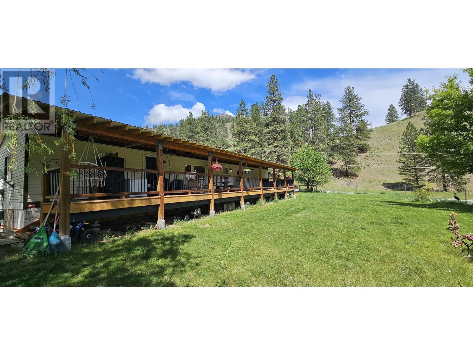 Sweet little hobby farm property of almost 2.5 acres is within walking distance to the Kettle River for summer time fun. In the heart of Rock Creek on a side road this south facing property is deer fenced, slightly sloped and suitable for animals / or gardens. There is a cross fence and field for livestock. The 2 bedroom / 2 bath manufactured home sits on a concrete foundation wall. Vaulted veiling, full ensuite, new flooring through-out, updated plumbing, pellet stove and good sized eat-in kitchen area. A second roof was put over the unit for weather protection and ties into a huge covered south facing deck (64x10) for year round enjoyment. Corner property with easy Crown Land access for riding or adventures. Drilled well, septic, cell service, internet all in place. Lots of parking. And the start of a second foundation if you want to expand or build a shop. Hot tub included. (id:48970) Show More