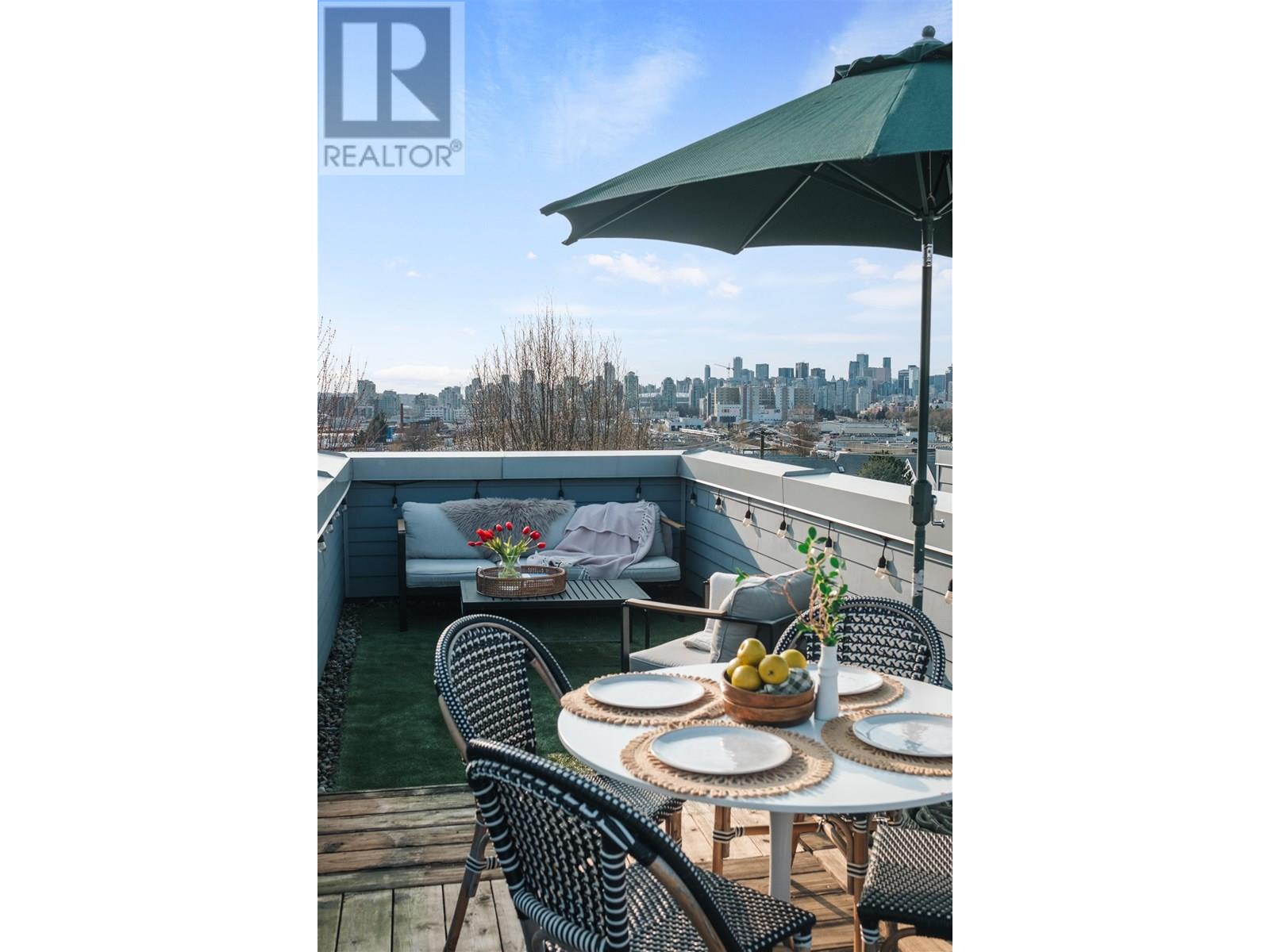 WELCOME TO YOUR MODERN TOWNHOUSE JUST MINUTES FROM THE DRIVE! This 3-bed + den, 4-bath home offers 1,485 sq/ft of well-designed living space, plus a 250 sq/ft private rooftop patio-perfect for dining al fresco, entertaining guests, or enjoying warm summer evenings in your own outdoor oasis. The open-concept main level features stainless steel appliances, quartz countertops, laminate flooring, and oversized windows that flood the space with natural light. Upstairs, you'll find three generously sized bedrooms-each with its own full bath-plus a spacious den, ideal for a home office or flex space. All this just steps from transit, parks, shops, and the vibrant energy of Commercial Drive. Don´t miss this one-book your private showing today! Open House Sun July 13th 1pm-2pm (id:48970) Show More