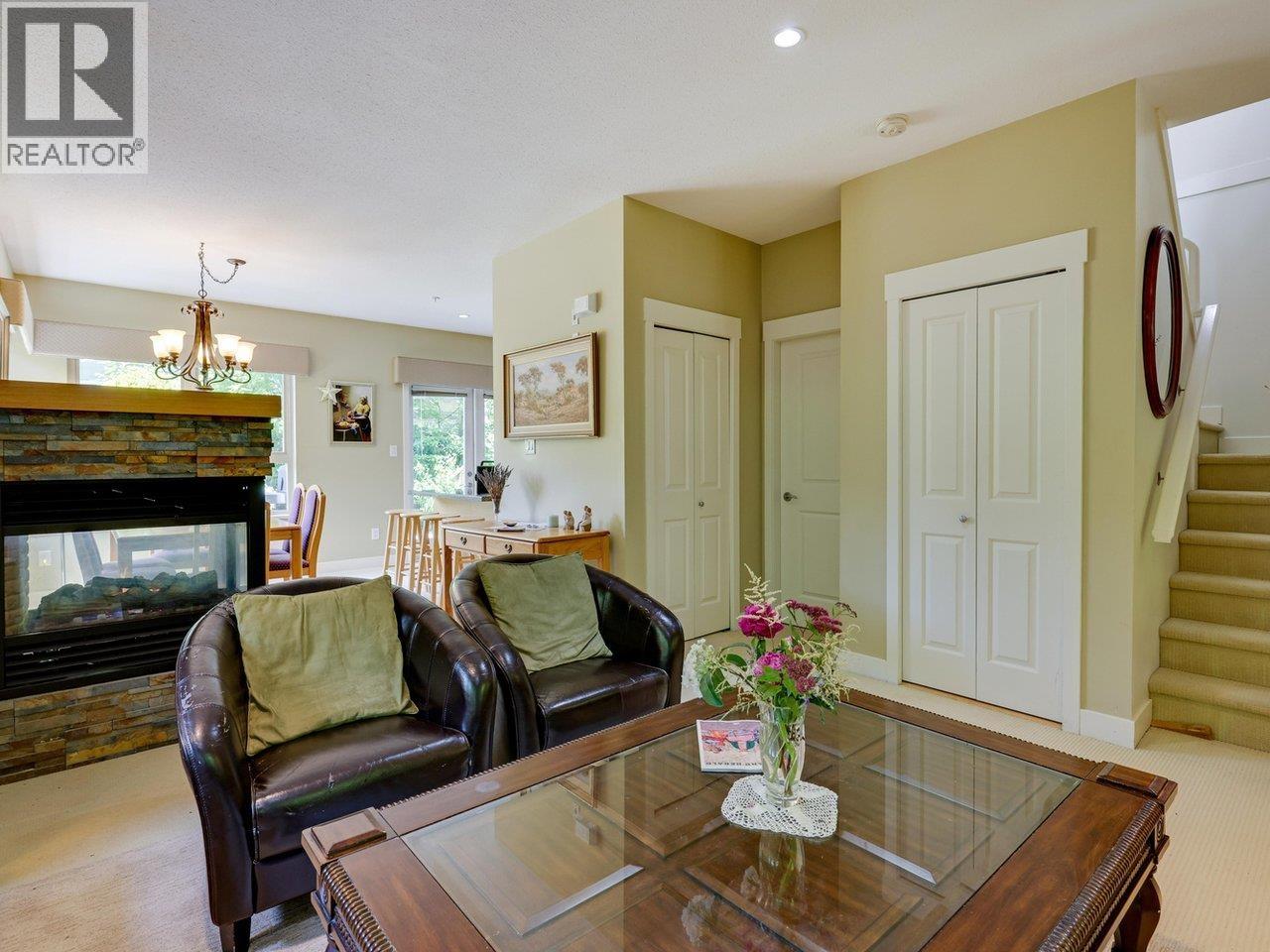 This home feels like a detached home, without the exterior maintenance. Proudly presenting this rare, spacious & well maintained 3 bed and 3 bath & office, end unit townhome at Vista29. Plenty of large windows south west facing to allow natural light to flow into open-concept main level boasting a cozy double-sided fireplace, generous living/dining area as well kitchen counter breakfast space. True primary bedroom covers entire top level & features WIC & grand ensuite with double vanity. Level above main includes two oversized bedrms & office. Enjoy morning coffee on the private outdoor terrace & garden oasis bordered by mature trees that offer something new in every season. Steps to Queensdale Market, Pub, Starbucks & more. 2 parking & lots of storage. Only one resident must be 55+. Feels like a detached home w/o the yardwork. Walkscore 89, excellent public transport and Delbrook community recreation Centre services. A must see! Call your agent for appointment. Open House Sunday July 13, 2:00pm - 4:00pm (id:48970) Show More