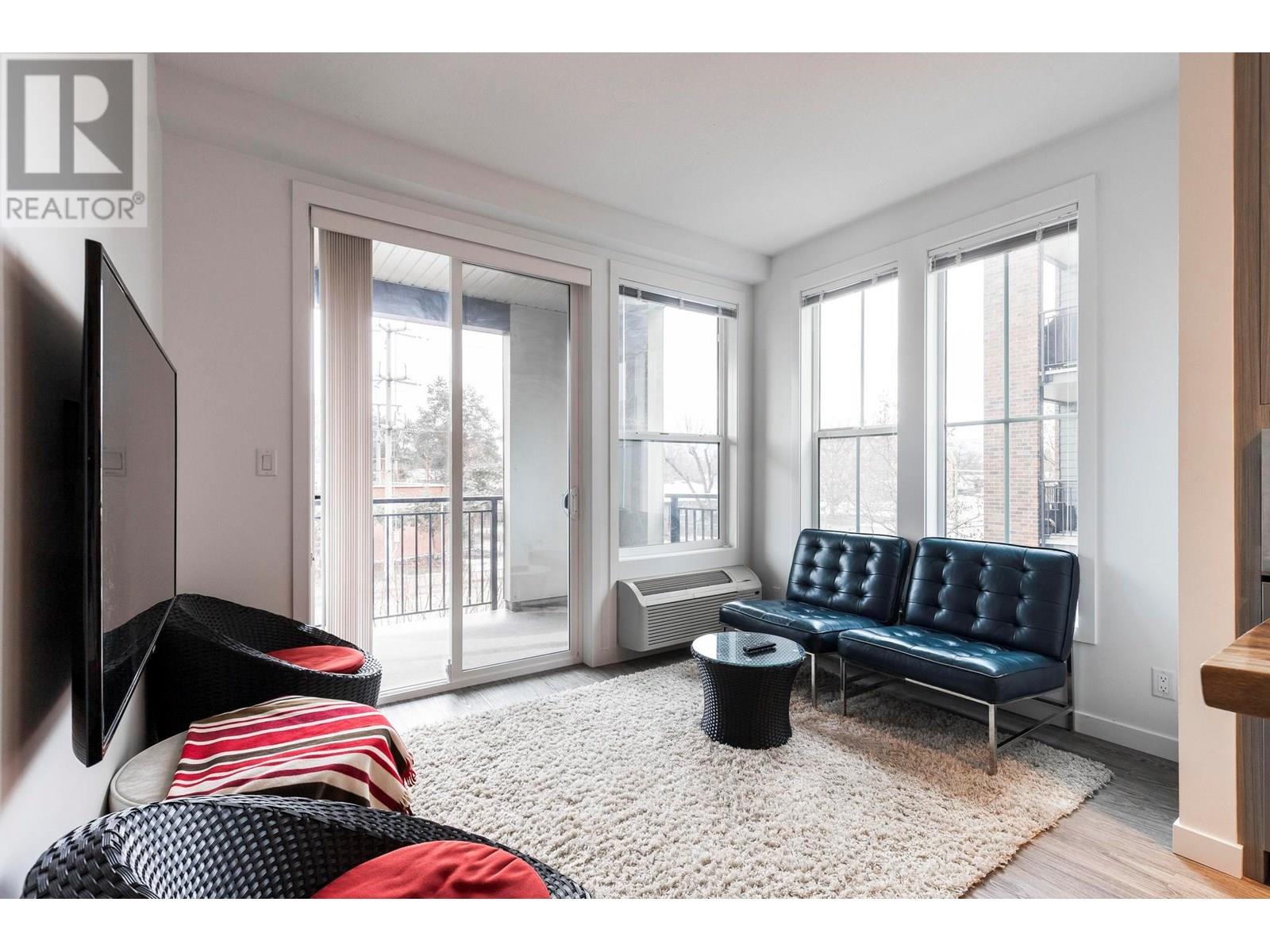 ****VACANT, READY FOR NEW OWNER***Discover the perfect balance of modern comfort and unbeatable location with this 2-bedroom, 2-bathroom condo at 206-1770 Richter St, right in the heart of Kelowna. This vacant, move-in-ready home offers a sleek yet urban design featuring a striking mix of brick, Hardie board, and concrete. Step into an open-concept floor plan with oversized windows that flood the space with natural light. The kitchen is a showstopper, boasting sleek cabinetry, stainless steel appliances, a tile backsplash, and high-end countertops. The spacious master bedroom includes a luxurious ensuite with dual sinks, while the second bedroom is thoughtfully positioned on the opposite side of the unit for privacy. Enjoy your morning coffee or unwind on the private covered patio. Additional perks include in-suite laundry, one underground parking stall, and a storage locker. This condo is pet and rental-friendly, making it a versatile choice for homeowners or investors. Central Green is a LEED-certified community surrounded by green space, offering a peaceful, park-like setting just steps from downtown Kelowna, beaches, and shopping. Don’t miss this opportunity—schedule your viewing today! (id:48970) Show More