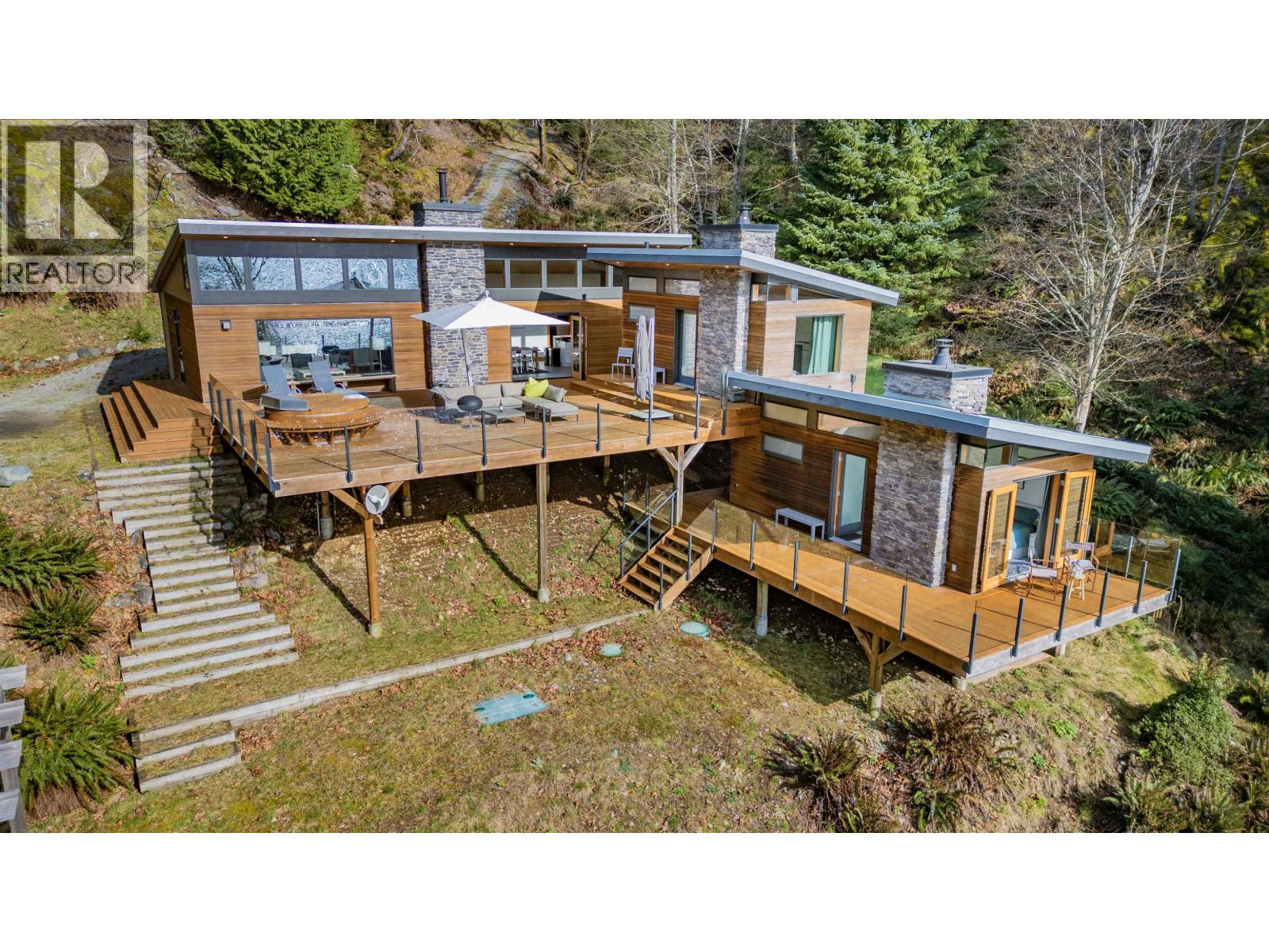 Waterfront SE facing LOW bank beachfront sunny 9+ acre Oasis. This is the only property listed in Howe Sound with a beautiful accessible sandy beach right in the front yard, and includes a mooring buoy. The main house features 3 beds with an ensuite 3 pc bath, a large laundry/mud room/3 pc bath off the kitchen, and great room area. Heated floors in the baths and TWO detached guesthouses, with a 3-piece bath and a Jotul fireplace. The large deck has a wood-fired or HW on-demand hot tub, and the yard features a yoga pavilion, beachside deck, and a raised garden bed area. This property has one of the largest solar panel /generator setups on Gambier Island and is located in the popular Brigade Bay community which features the use of a private marina and is a quick 15-minute trip to West Van. (id:48970) Show More