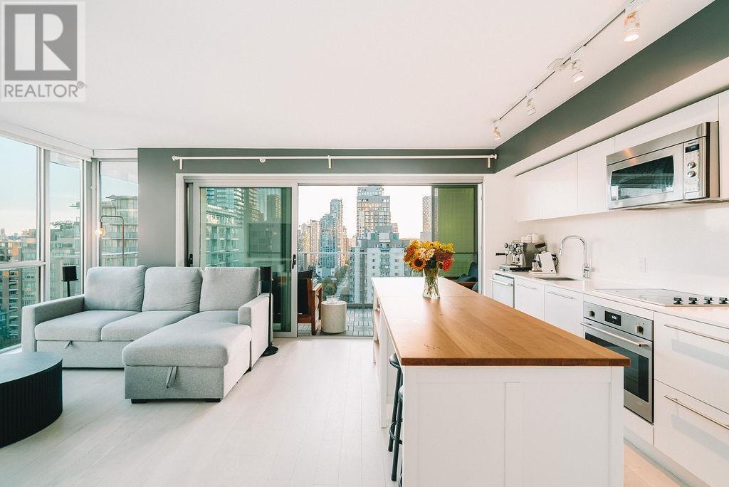 Spacious, bright 2 Bed + Flex Corner Unit with 148 square ft balcony offering panoramic views over Yaletown and Downtown Vancouver. Built by award-winning Townline, this home features an open-concept living/kitchen area that flows to the oversized balcony-perfect for entertaining or relaxing in the sun. The kitchen boasts white cabinetry, S/S appliances, and an XL island. Bonus flex room and in-suite laundry. 1 parking & 1 locker included. Pet-friendly. Amenities: gym, BBQ/lounge, party & meeting rooms, and more. Walk to Yaletown, Robson, restaurants, SkyTrain & Seawall. Book your private showing today! Open House July 12 Saturday 2:00 - 4:00 (id:48970) Show More