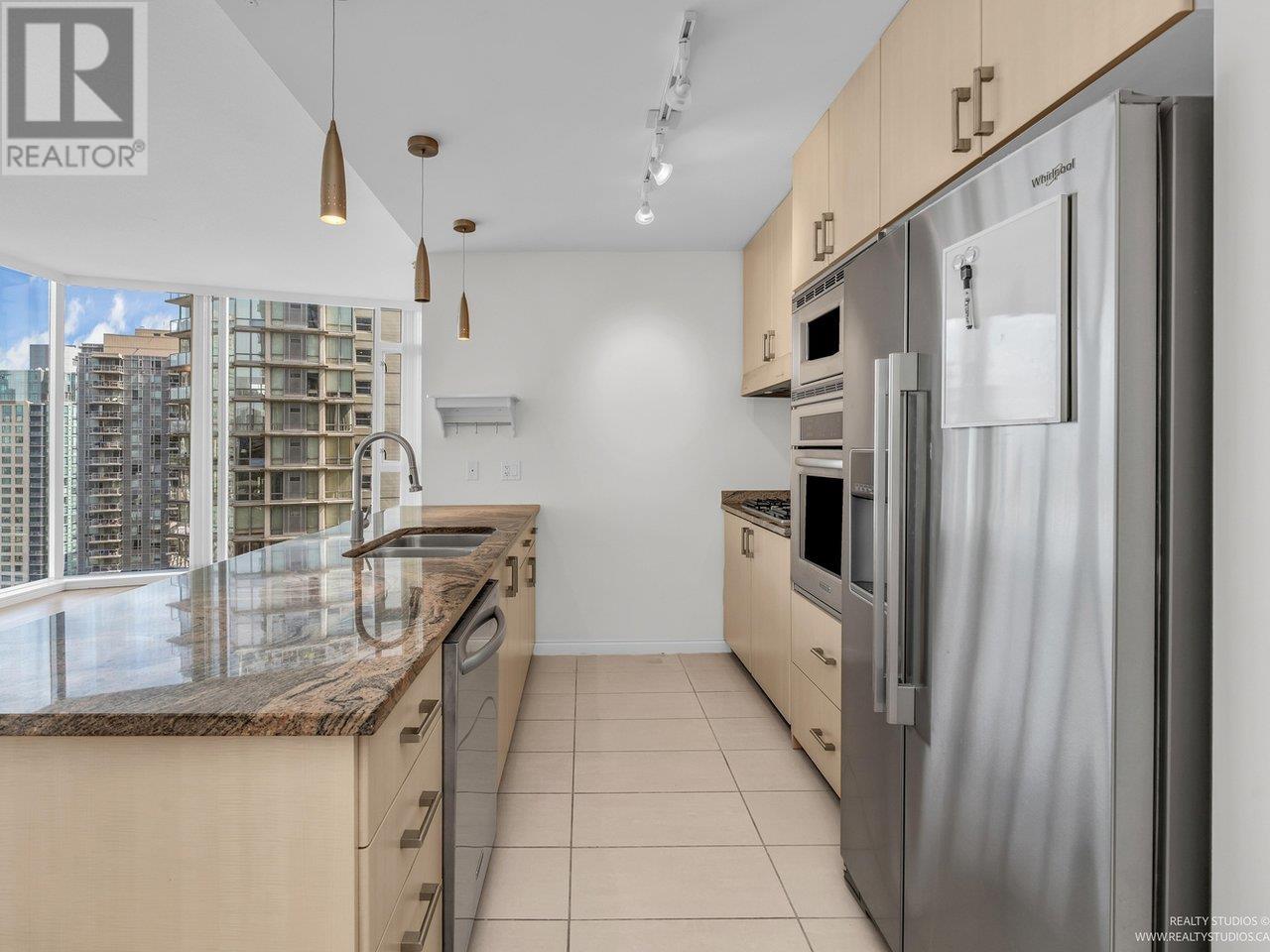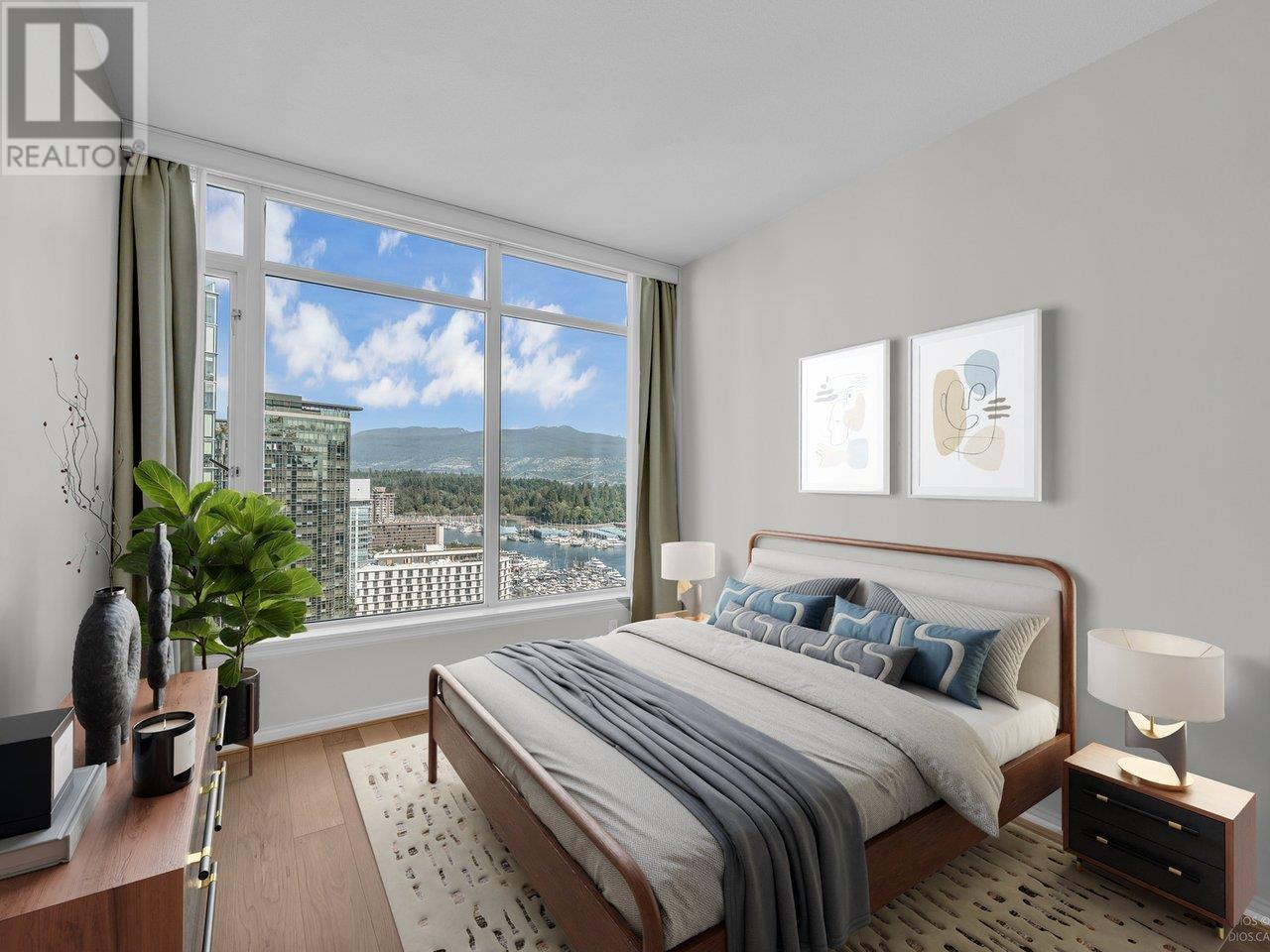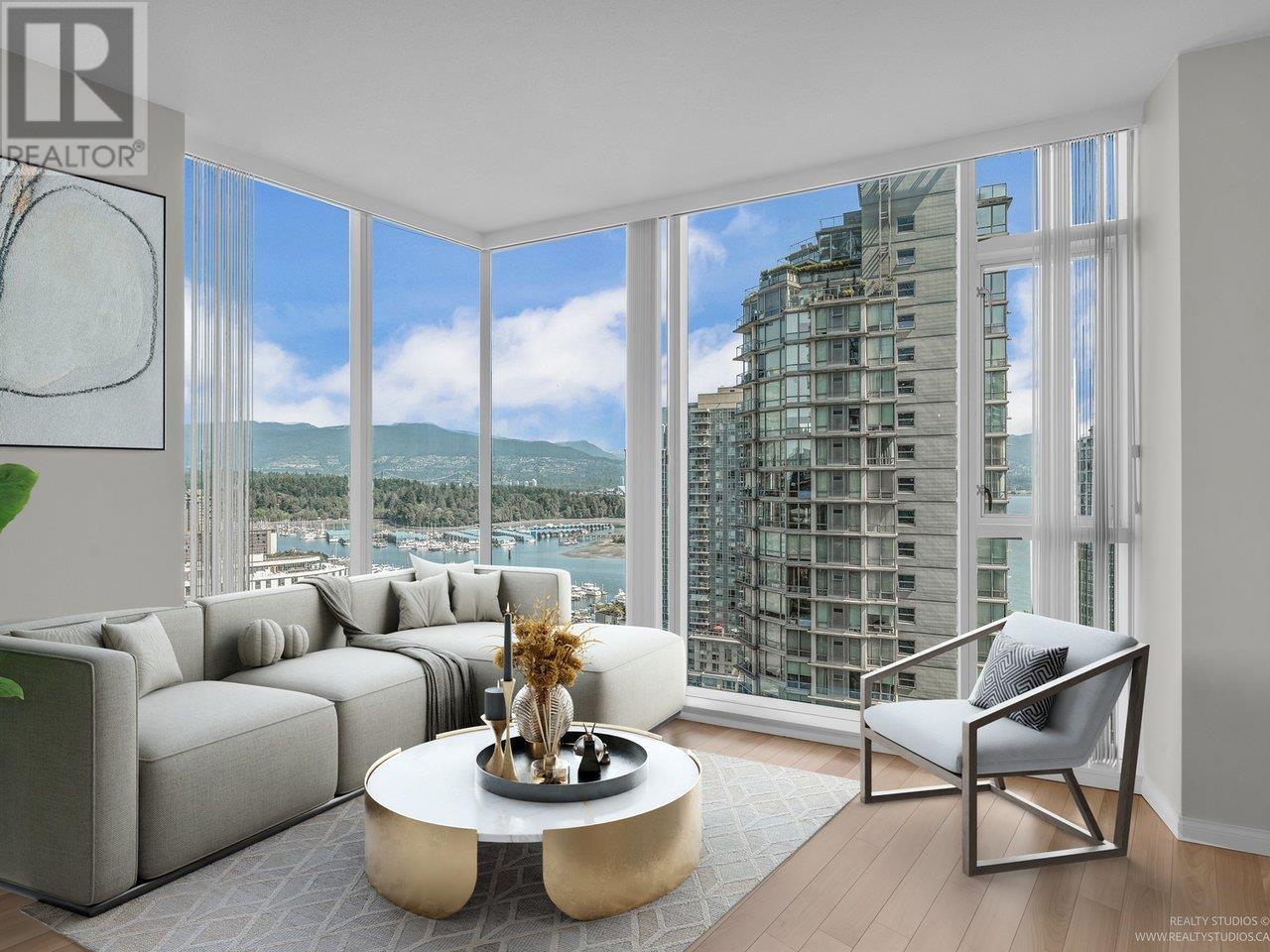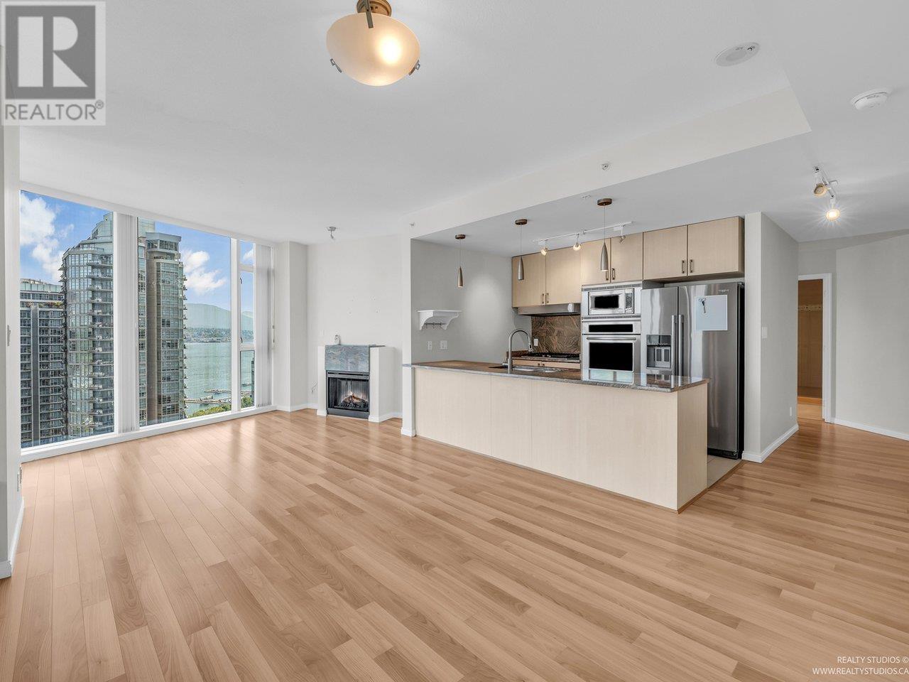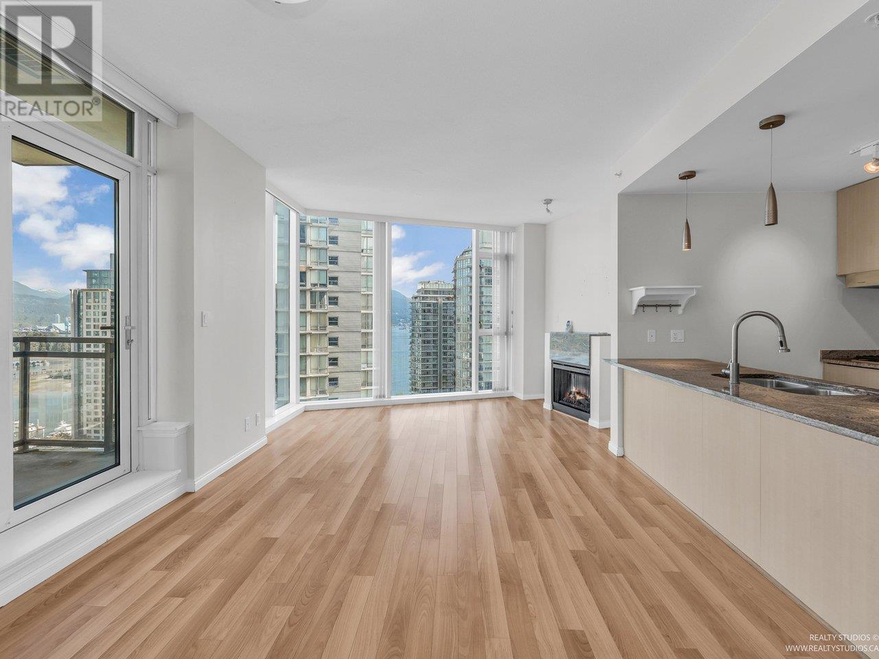 Welcome to The Ritz in Coal Harbour! This rare 3-bedroom corner residence offers 2 ensuite bathrooms plus a third full bath-ideal for comfortable everyday living. Perched high above the city, you'll enjoy breathtaking, uninterrupted views of the ocean, North Shore mountains, Stanley Park, and the downtown skyline, all framed by floor-to-ceiling windows. The spacious, open-concept layout is designed for relaxation or entertaining, featuring over-height ceilings, engineered hardwood floors, air conditioning, and a cozy fireplace. A den, bright solarium, and open balcony offer versatile spaces for work, creativity, or quiet reflection-all bathed in natural light. Amenities include concierge, pool, hot tub, sauna, gym, & party room. Steps from the seawall, Stanley Park, cafés, restaurants! (id:48970) Show More
