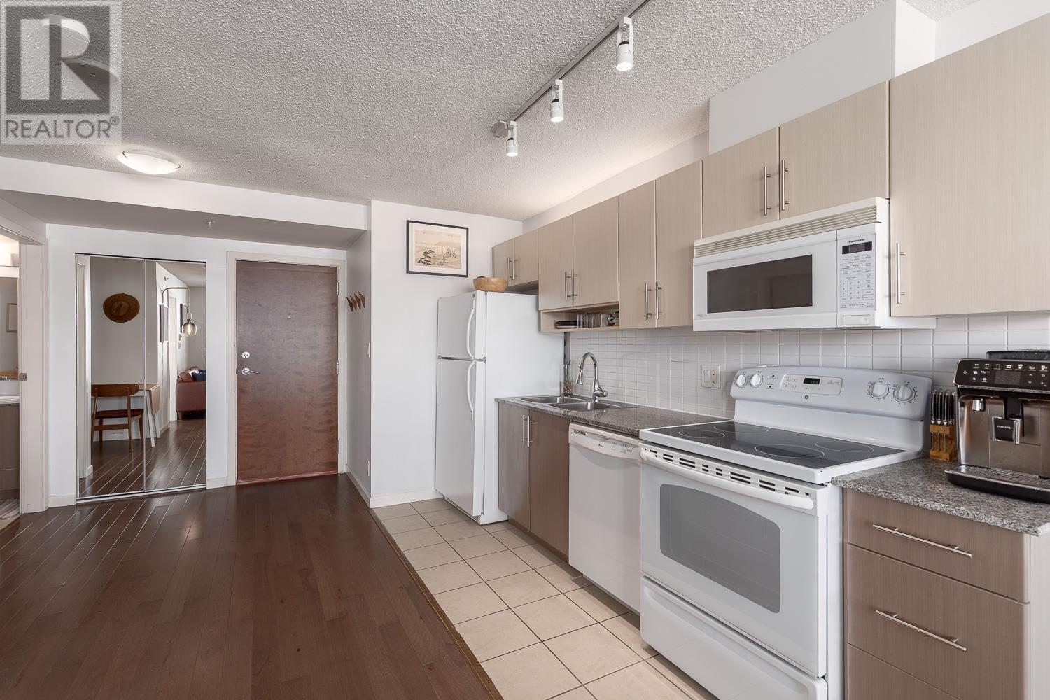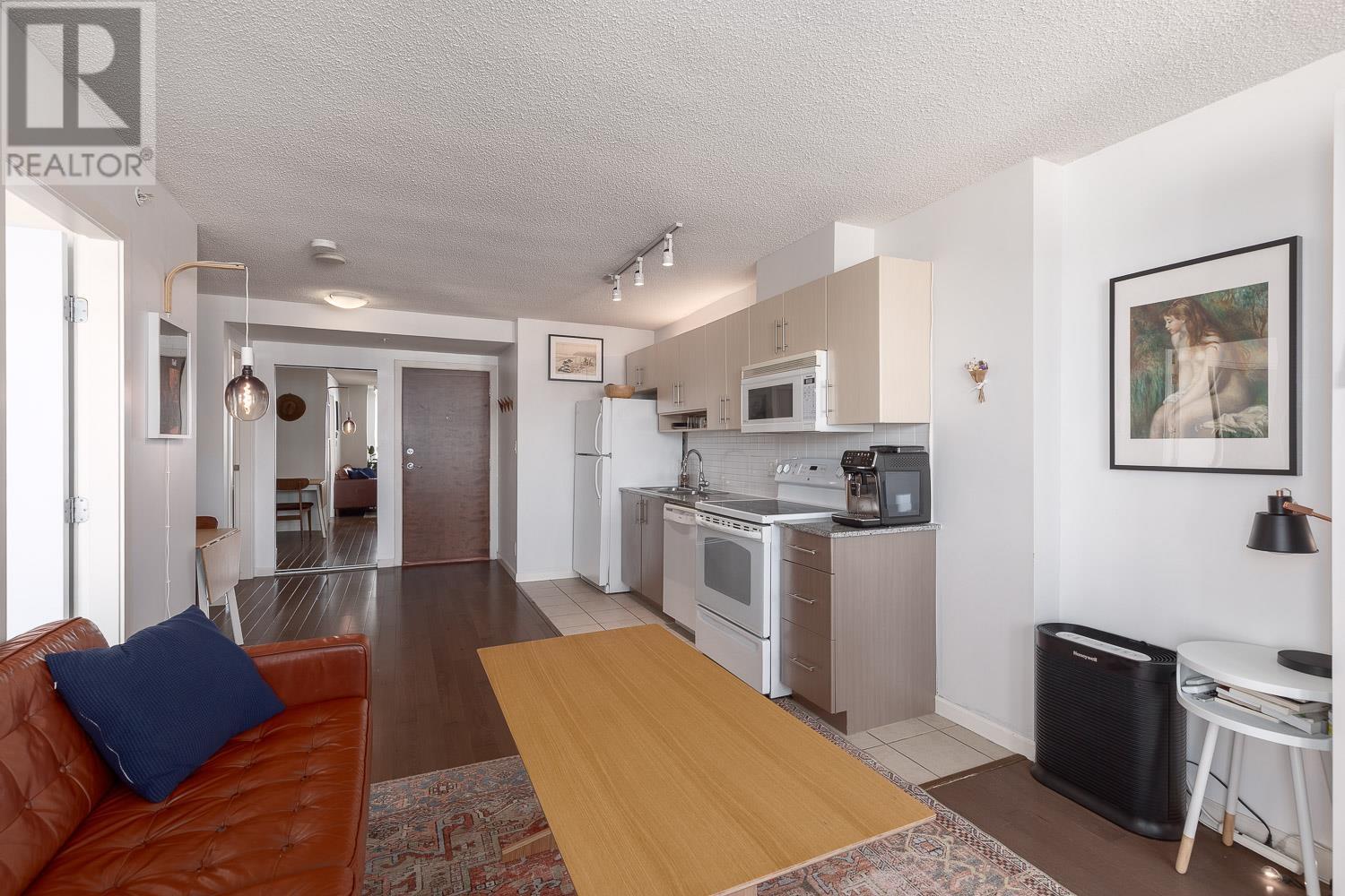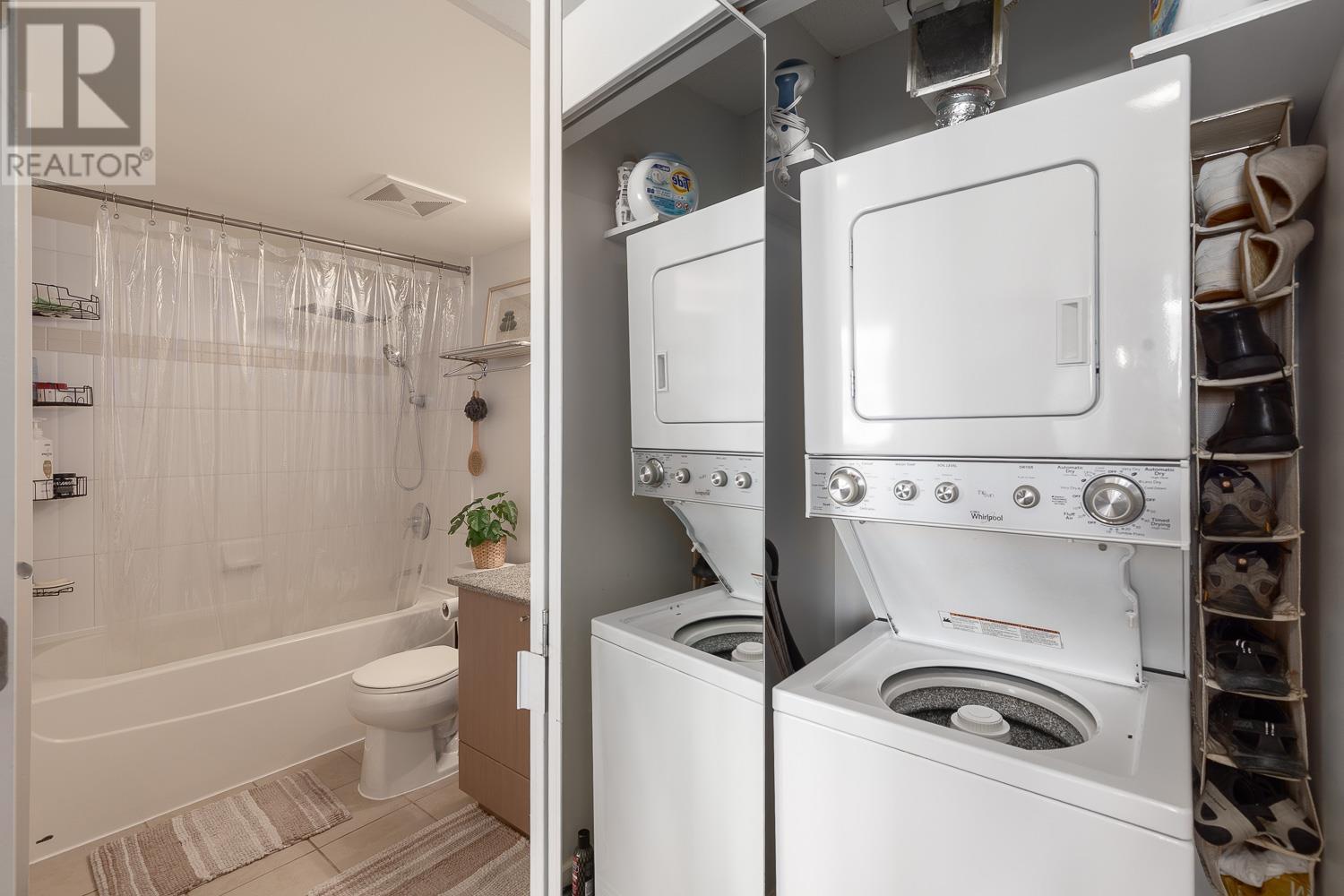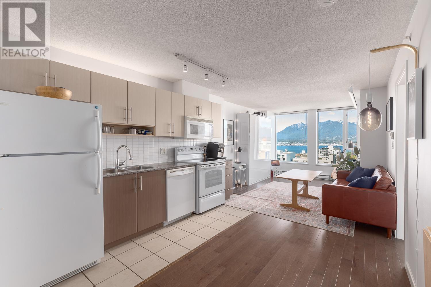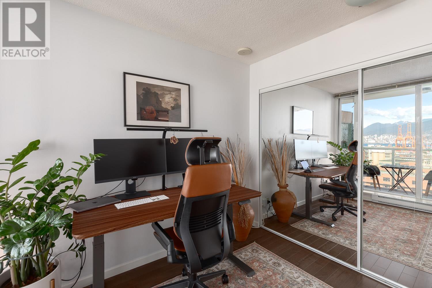 1 BEDROOM + LARGE DEN + BALCONY with stunning, unobstructed MOUNTAIN, OCEAN & CITY VIEWS-experience a new, breathtaking scene every day. FLOOR-TO-CEILING windows flood the space with natural light. The living area includes a sleek Murphy bed with a hydraulic lift, converting easily into a queen-size bed. The official bedroom is currently used as an office but fits a standard queen bed if preferred. Includes in-suite laundry, 1 parking, and a storage locker. SUPER CONVENIENT: 5 min walk to the Seawall, SKYTRAIN, Rogers Arena, Concord Park, Costco, T&T, International Village & more. Building offers a GYM, office/lounge, bike & visitor parking, and updated elevators. A rare opportunity-come see the view in person! (id:48970) Show More