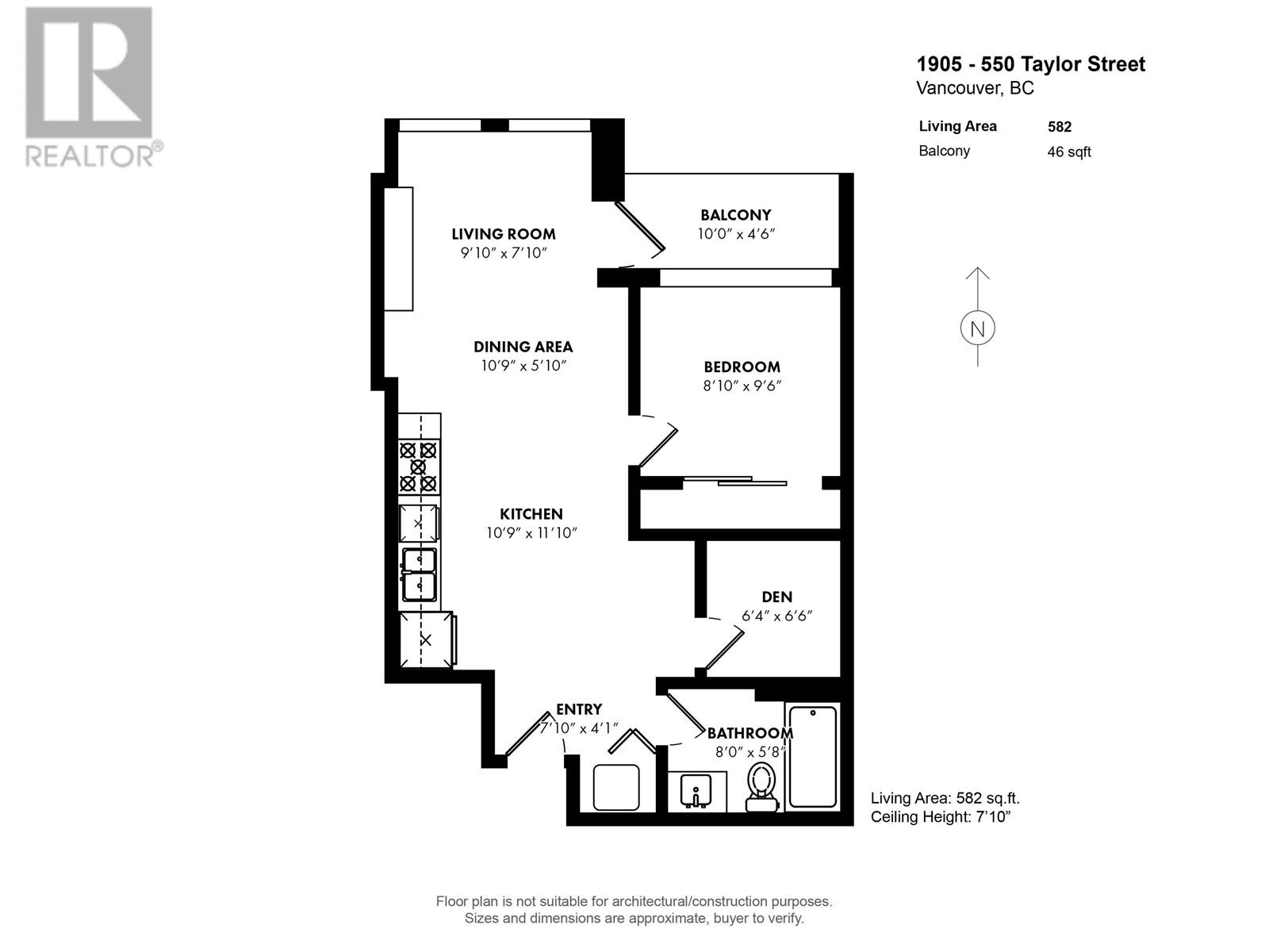 - Area 582 sq ft