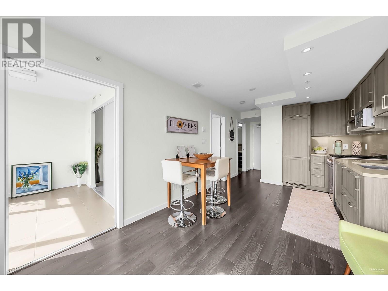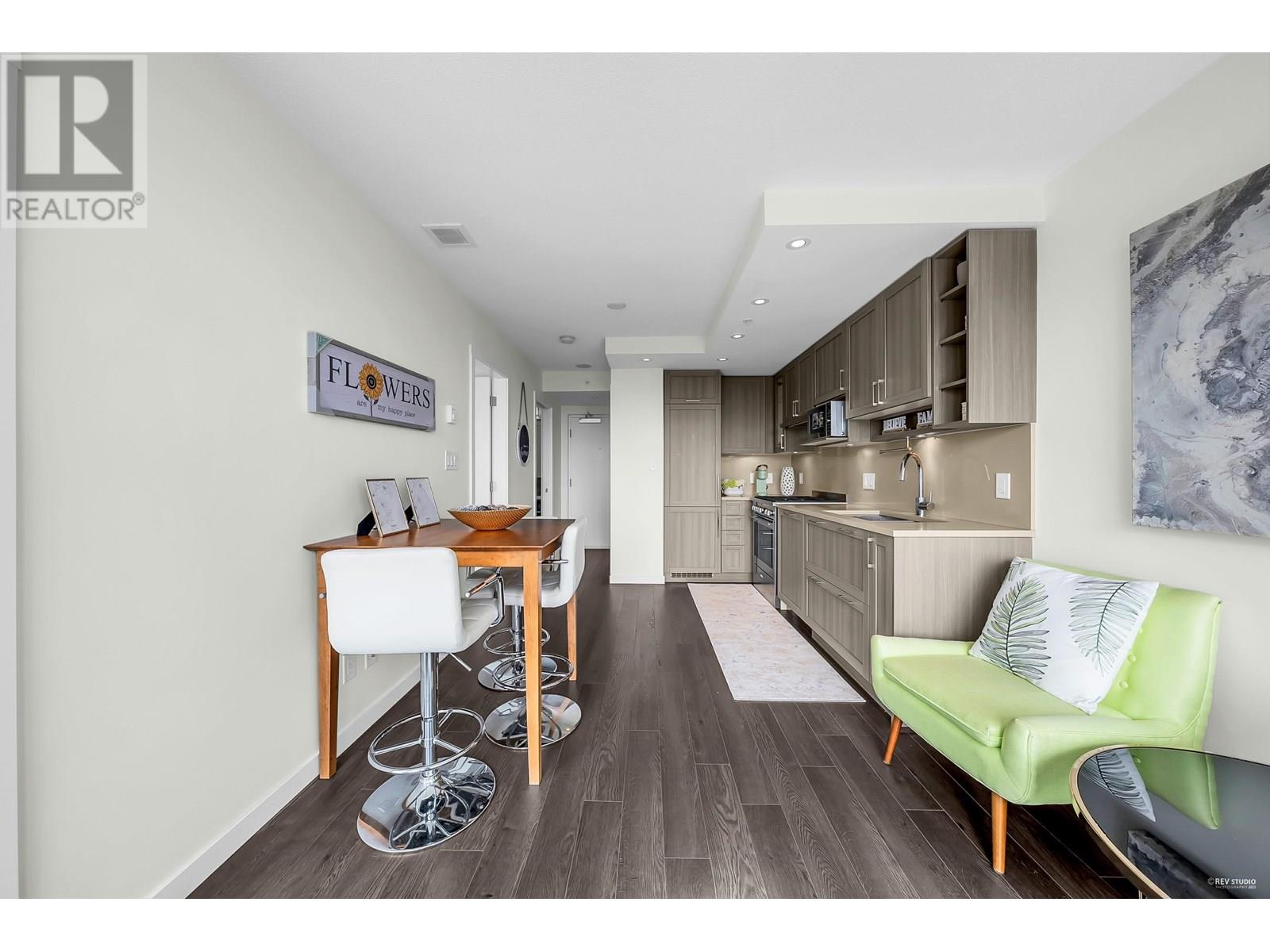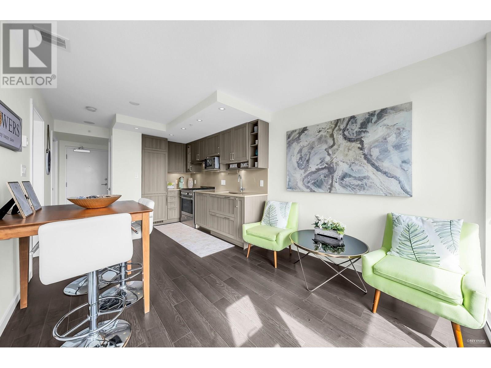 Wall Centre Central Park - East facing 1 bedroom + Large flex room + den. One of Vancouver's most convenient and sought-after properties in the Collingwood neighbourhood. Flex room could easily be used as second bedroom. Open concept design with no wasted space living, dining and kitchen, premium s/s appliances, quartz countertops, gas cooktop, wide plank laminate flooring, in-suite laundry, floor to ceiling windows and good size balcony with a beautiful northern view of city, mountains, parks, and stadium. Building amenities include indoor lap pool, hot tub, fitness centre, rooftop garden, meeting room. Centrally located just minutes walk to Joyce skytrain station, parks, recreation, shopping, restaurants. Quick possession is available. Call now, don't miss this one! (id:48970) Show More