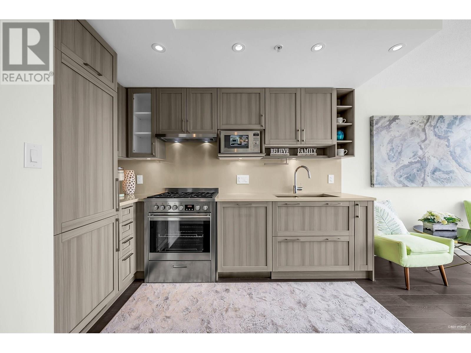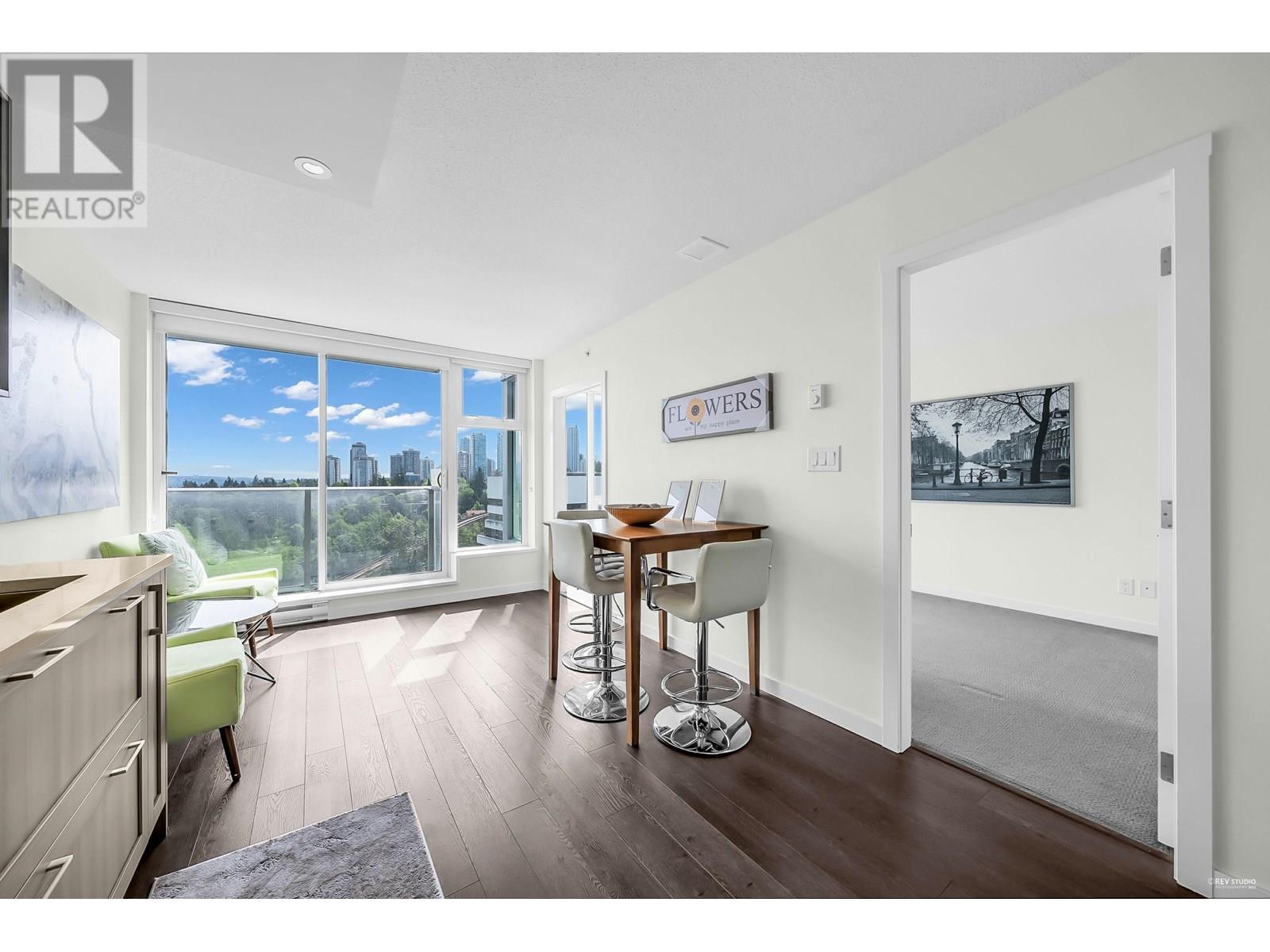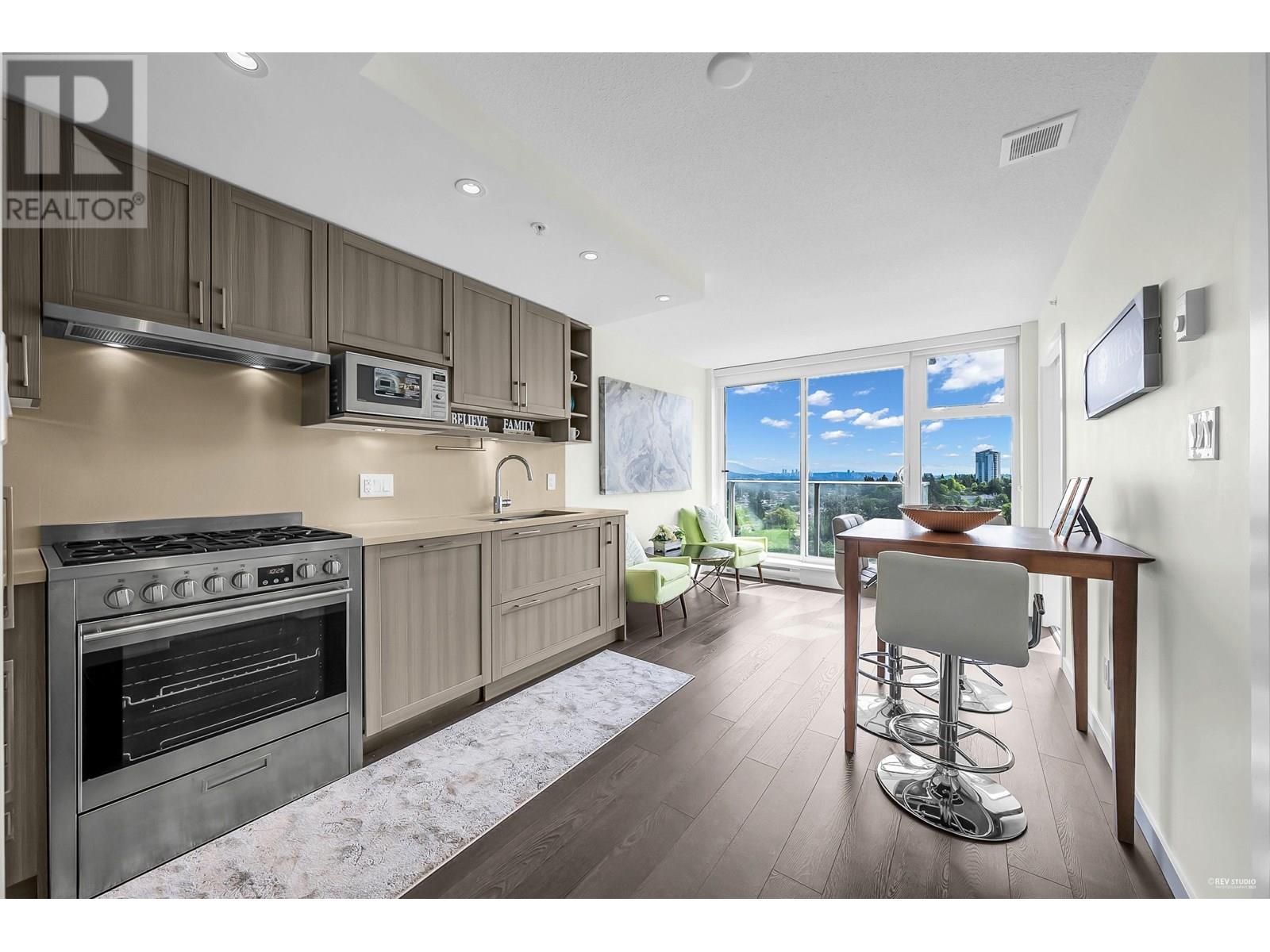 Wall Centre Central Park - East facing 1 bedroom + Large flex room + den. One of Vancouver's most convenient and sought-after properties in the Collingwood neighbourhood. Flex room could easily be used as second bedroom. Open concept design with no wasted space living, dining and kitchen, premium s/s appliances, quartz countertops, gas cooktop, wide plank laminate flooring, in-suite laundry, floor to ceiling windows and good size balcony with a beautiful northern view of city, mountains, parks, and stadium. Building amenities include indoor lap pool, hot tub, fitness centre, rooftop garden, meeting room. Centrally located just minutes walk to Joyce skytrain station, parks, recreation, shopping, restaurants. Quick possession is available. Call now, don't miss this one! (id:48970) Show More
