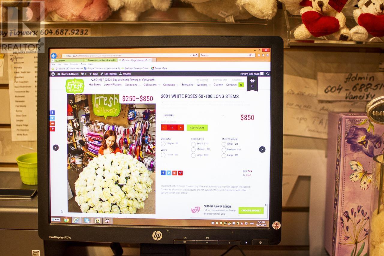 Upscale, Well-Established (30+ yrs in business) and Profitable Florist Boutique in Prime location in Downtown Vancouver situated in the mall with the office tower and in walking distance to all high-end hotels, shopping centers and corporate businesses. This flower boutique caters to both walk-in, internet orders and mature and loyal clientele (and ongoing contracts). Extensive and well built online presence (10 yr WEB-SITE TOPICAL AUTHORITY with organic ranking). Interior design was fully updated 5 yrs ago. Well-trained staff that is capable to operate without on-site supervision and is willing to stay. The owner is willing to provide training. Comes with additional 300 sq ft on-site storage. May be qualified for BCPNP. Please DO NOT approach staff without prior appointment with the listing agent. (id:48970) Show More