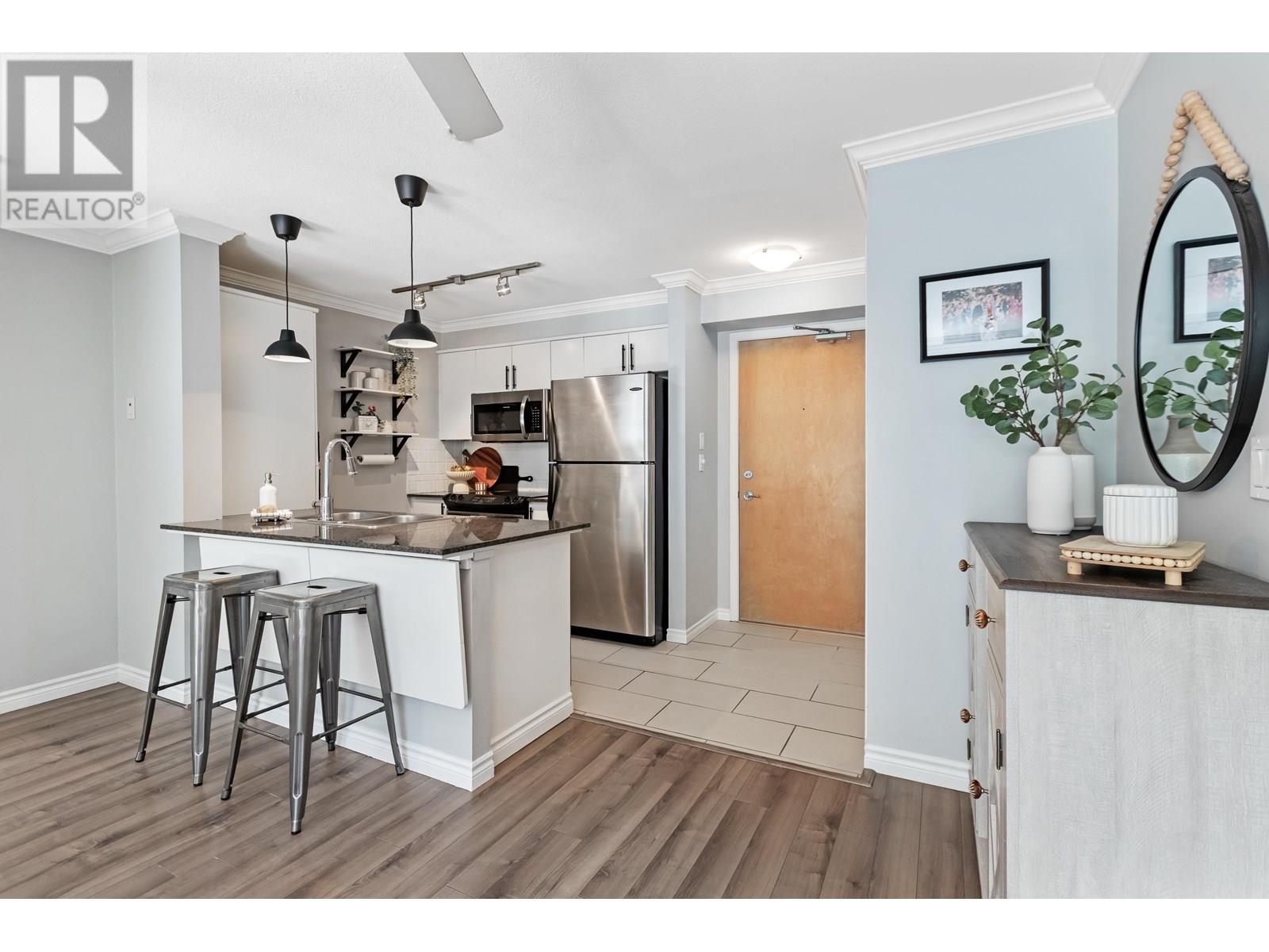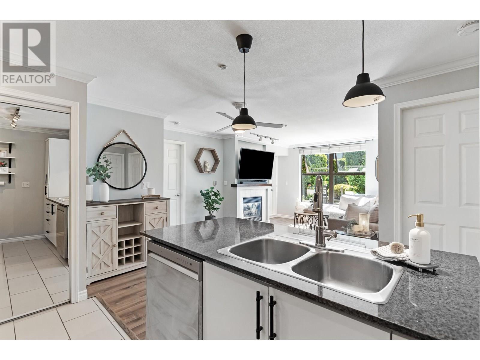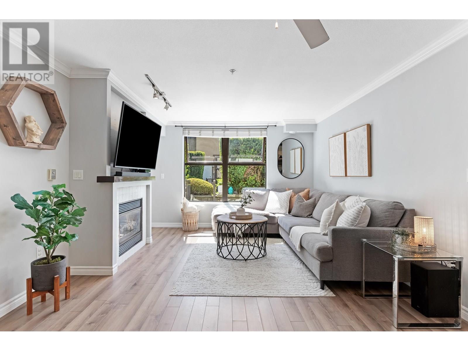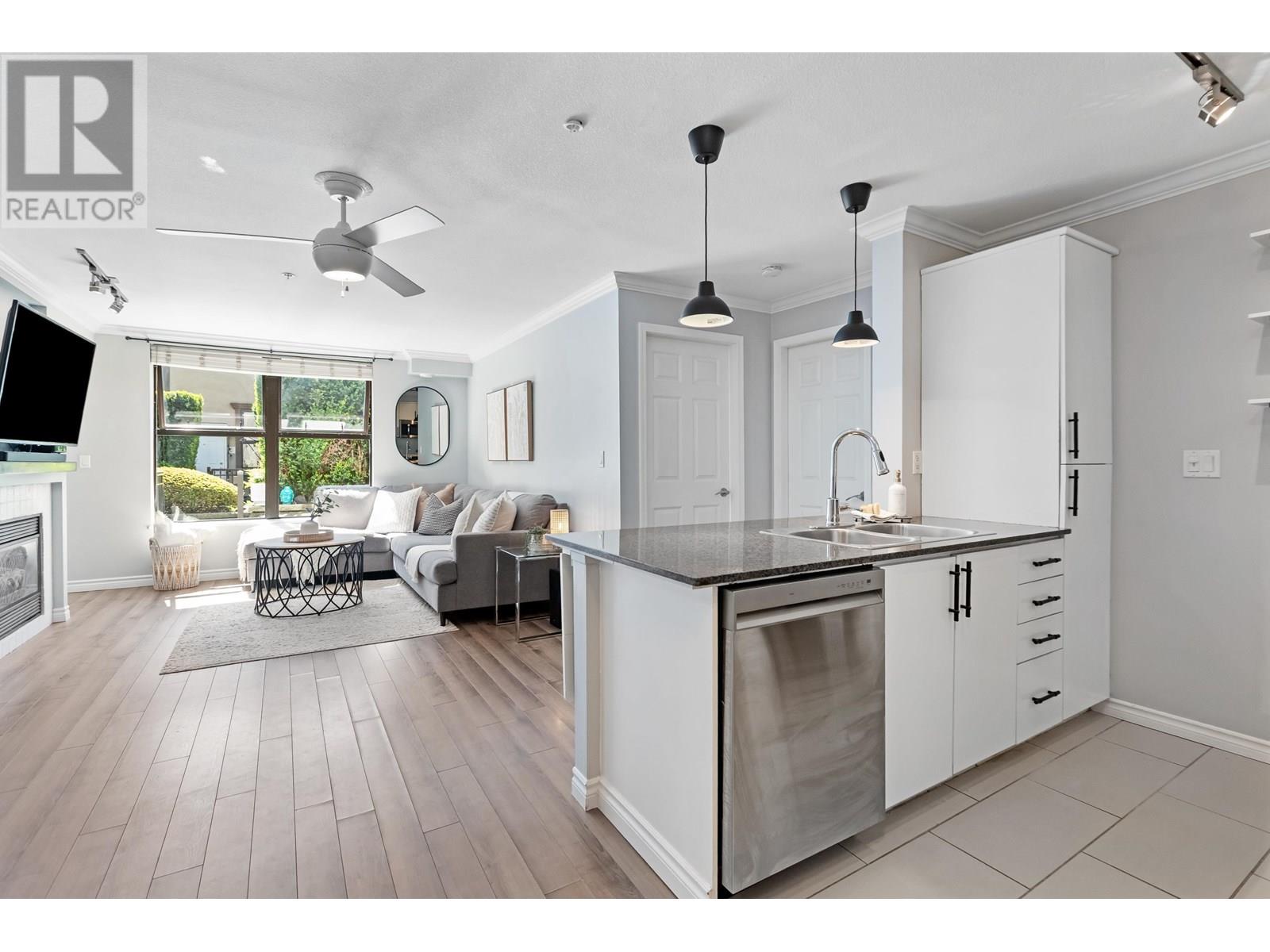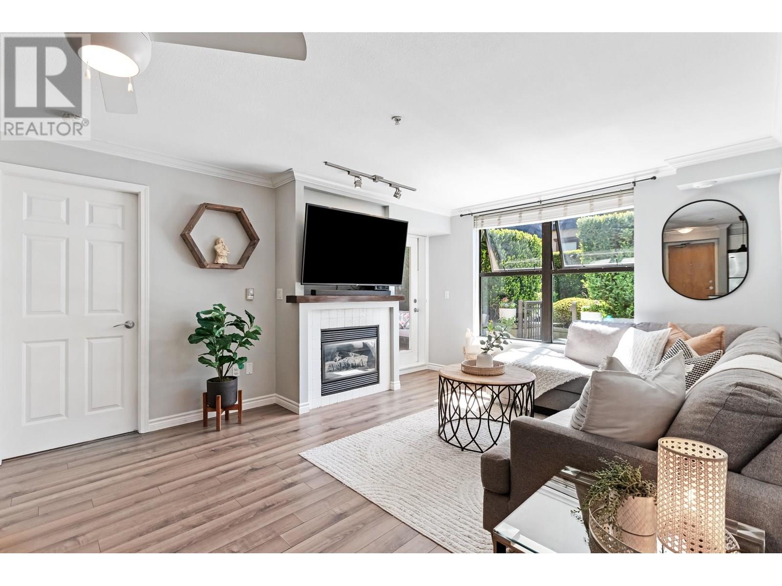 In an UNBEATABLE LOCATION, this ground level unit has an oversized, PRIVATE COVERED PATIO for year round enjoyment! This bright & beautifully updated 2 bed, 2 bath END UNIT offers 855 sqft of open-concept living, modern white kitchen with S/S appliances & an inviting living room with cozy gas fire. Great layout, feels bigger than 855sqft.Tucked away on the quiet South side/COURTYARD SETTING, giving you outdoor/indoor living; almost 250 sqft of Patio! Centrally located to all that Port Moody has to offer including Shops, Breweries, Trails, Restaurants, Rocky Point, Skytrain & WestCoast Express. Storage locker, one parking, & easy suite access. (id:48970) Show More