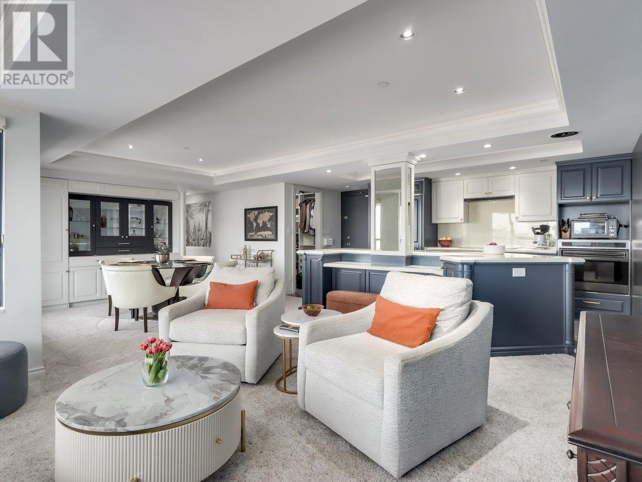 Indulge in sophisticated urban living at The Carlyle in the heart of Vancouver´s luxury district. Thoughtfully renovated with high-end finishes and custom millwork, this oversized 927sqft 1bdrm sub-penthouse offers seamless open-concept living-ideal for entertaining-with effortless flow from the custom chef´s kitchen to the generous living and dining areas. Step onto your covered balcony to take in stunning city and water views. Enjoy A/C, in-suite laundry, integrated speakers, spa-inspired bath with walk-in shower, and elegant millwork throughout. World-class amenities include a pool, sauna, hot tub, gym, BBQ lounge and serene entertainment deck. Just steps from Robson, Urban Fare, and Vancouver´s finest boutiques and dining. Comes with 1 parking spot. (id:48970) Show More