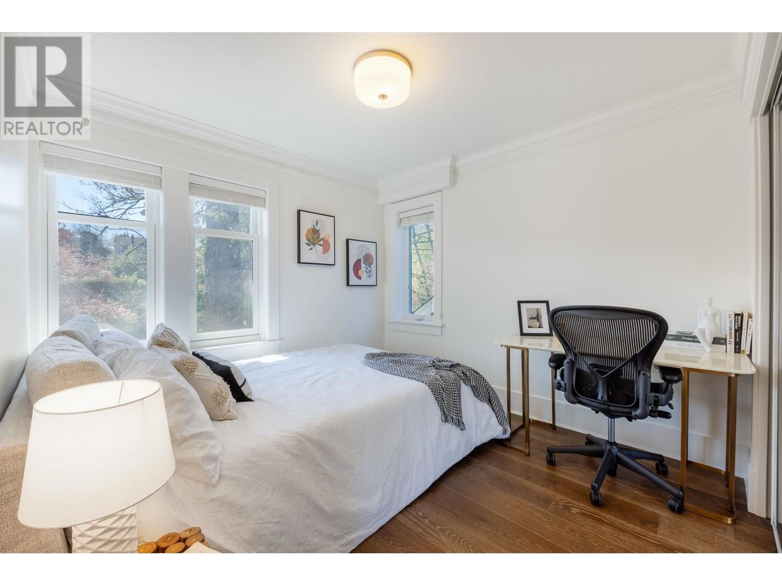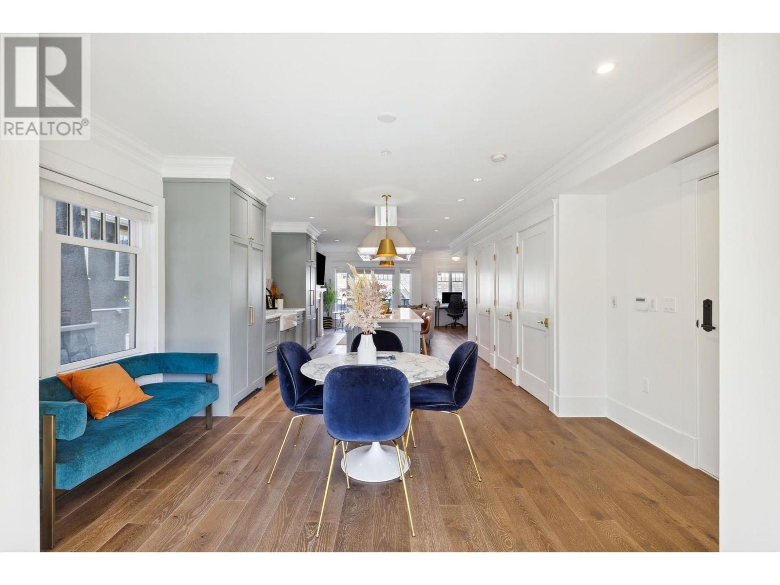 Welcome to Heritage by Formwerks, a boutique 12 unit development which exudes luxury and quality. This 2 bed 3 bath, 2 level townhome is the epitome of class. Historic craftsman-style exterior with unmatched interior details; including a Chef's dream kitchen with 6-burner wolf range, Fisher & Paykel appliances, and a farmhouse sink, the kitchen will quickly become the centre for all family gatherings. Upstairs has two spacious bedrooms, including an enviable primary suite with large walk-in closet, spa-like ensuite with free-standing soaker tub & glass walk-in shower. 1 car private garage included plus bike locker. Steps to South Granville's shops/restaurants and Vancouver Lawn Tennis Club, this location cannot be beat. (id:48970) Show More