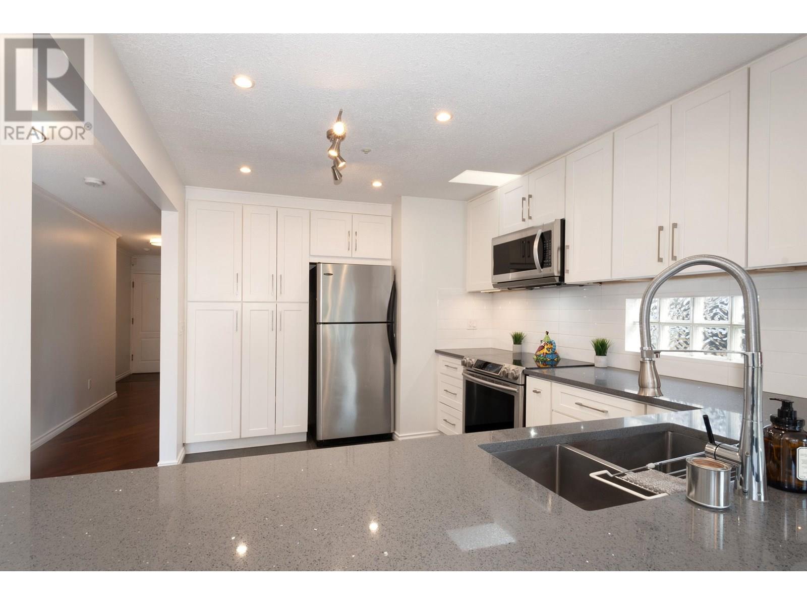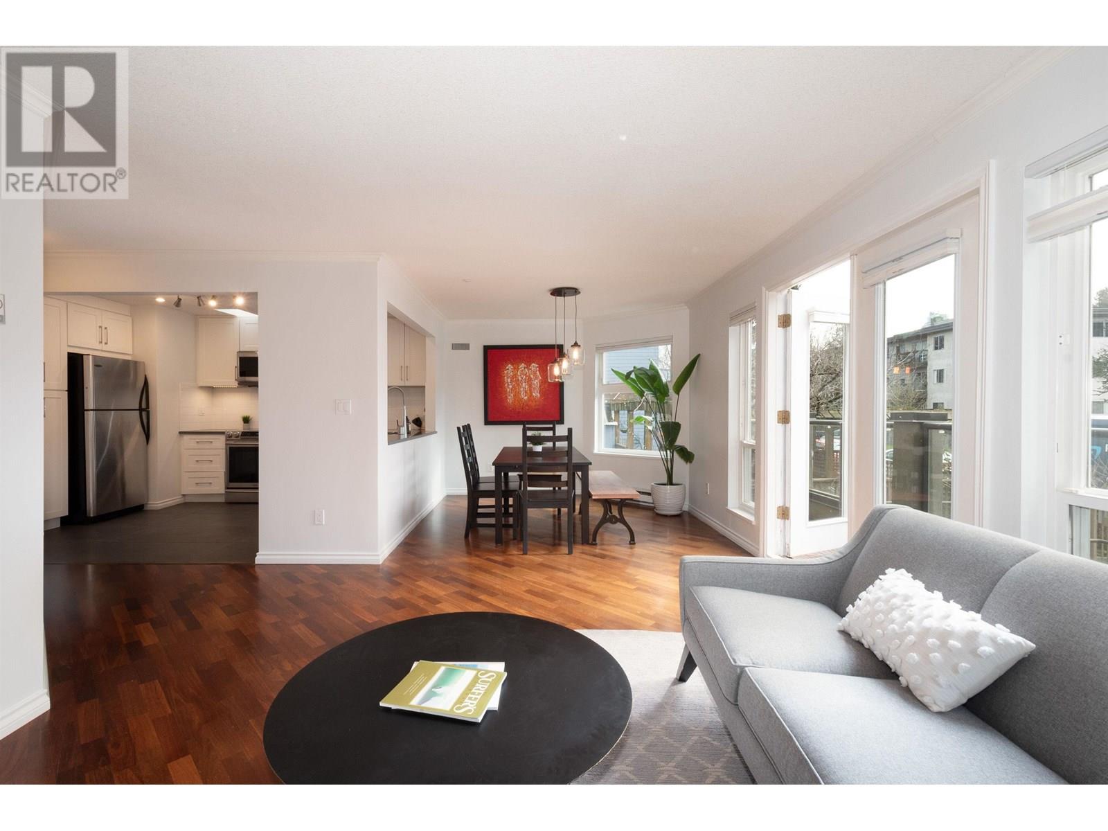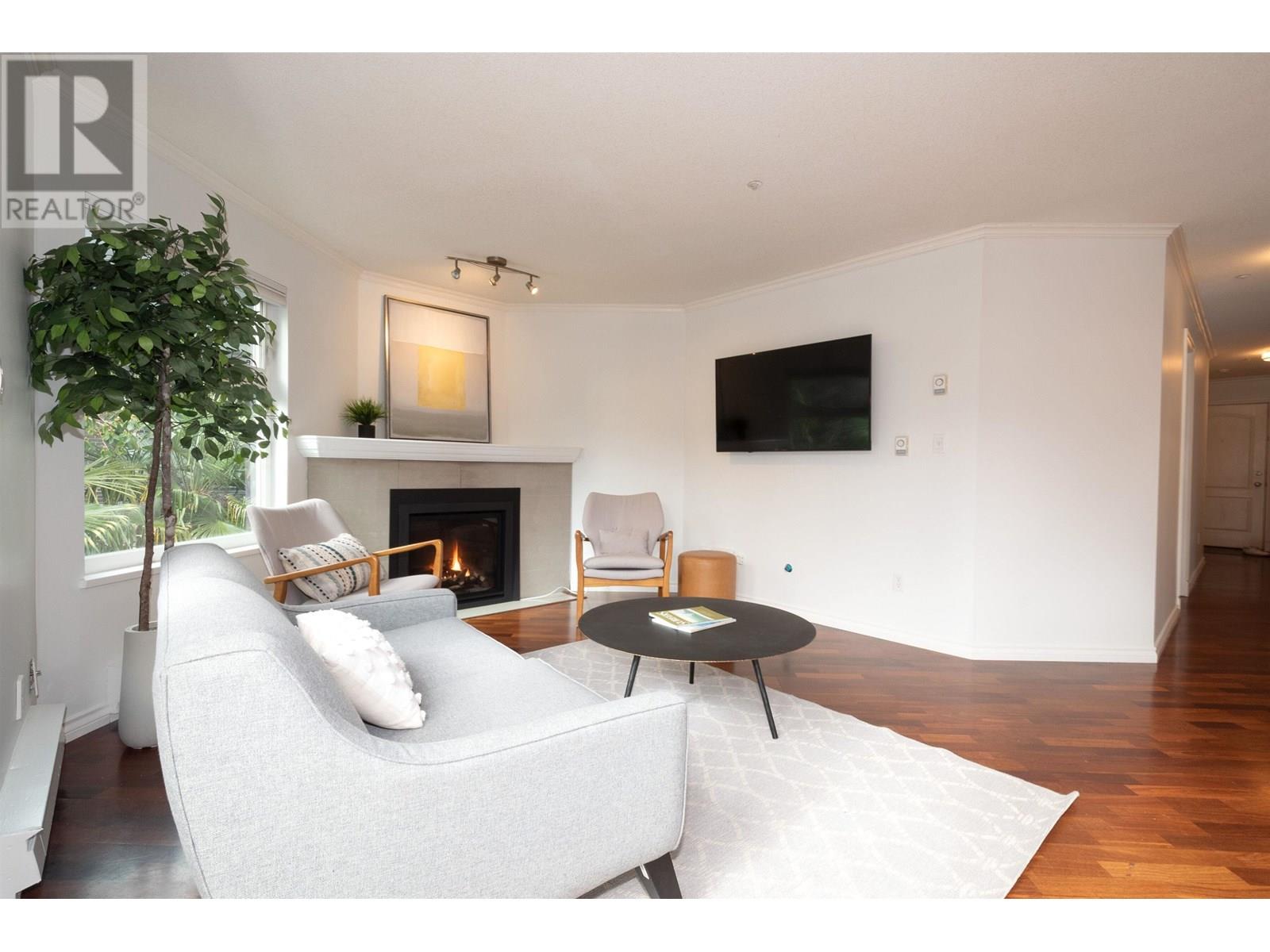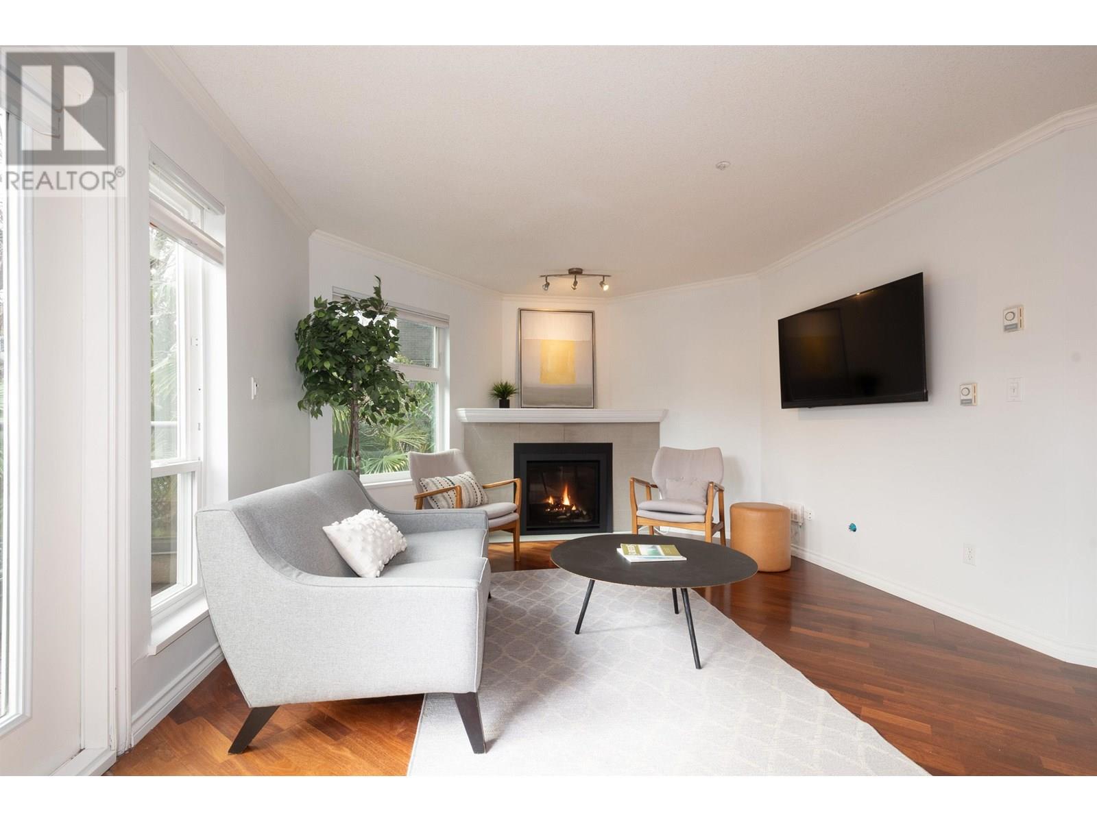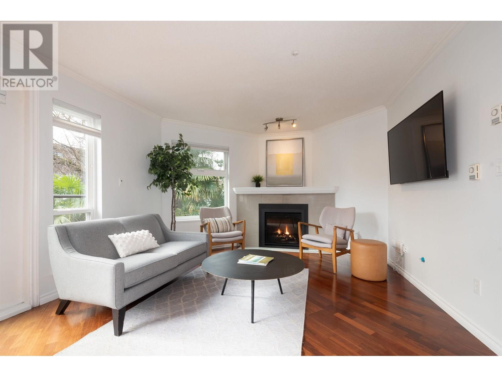 Bright and spacious 2-bed, 2-bath home North of 4th in sought-after Carmel Place! This well-managed boutique building is just two blocks from Kits Beach and the vibrant shops, cafes, and restaurants of 4th Ave. The open-concept kitchen flows into a welcoming living space with a new gas fireplace and two French doors leading to a sun-soaked south-facing patio overlooking lush gardens. The king-sized primary bedroom offers direct access to a stunning common rooftop deck, while the second bedroom features its own private balcony. Pet-friendly with 1 parking & 1 storage. (id:48970) Show More