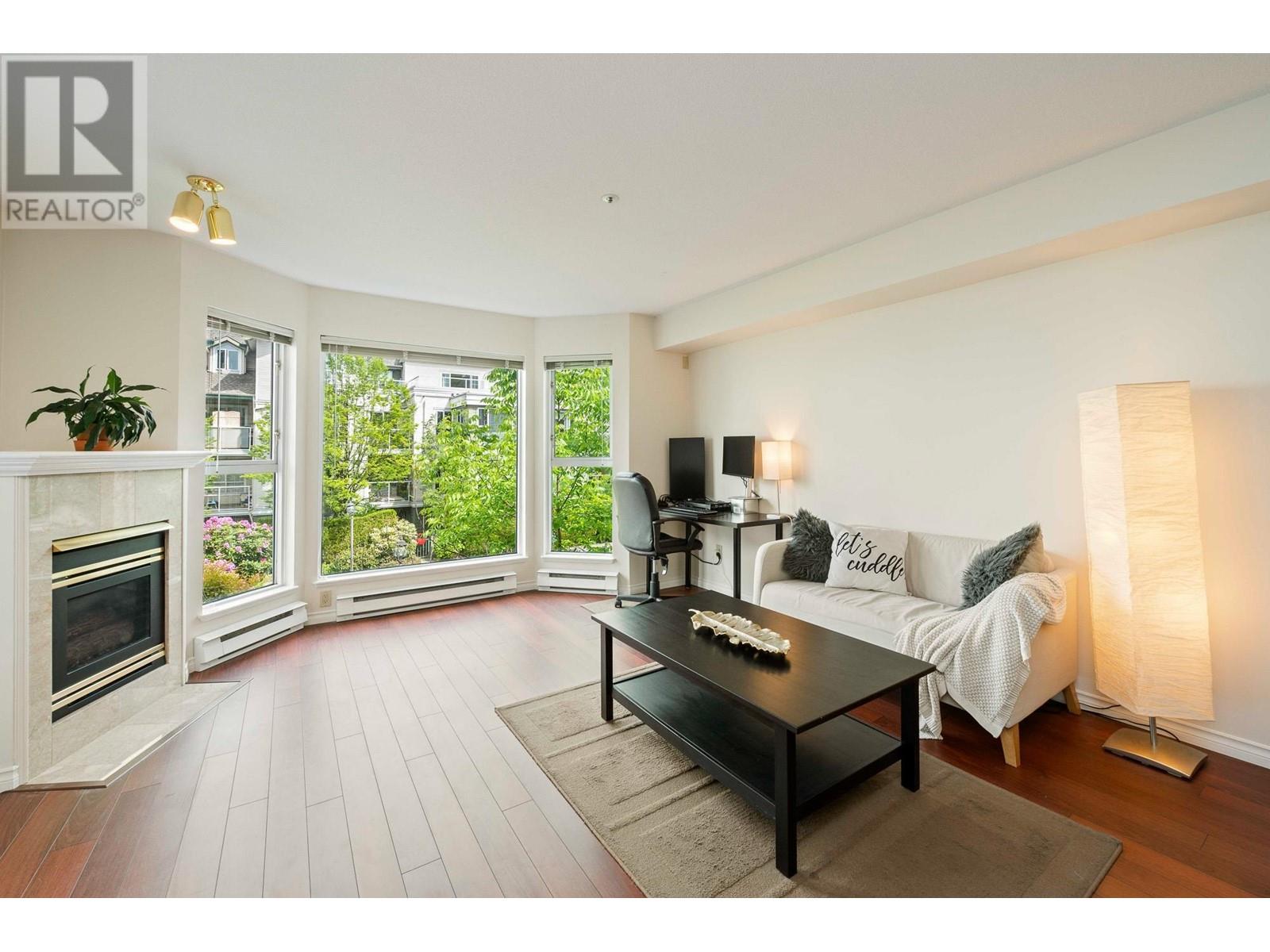 Welcome to The Newport on Main! This bright & spacious 1 bed+flex, 1.5 bath unit overlooks the quiet inner courtyard with lush greeneries & blooming flowers. This home features a open layout, large windows, comfortable dining & living area with cozy fireplace to snuggle up. Generous bedroom can easily fit a king size bed plus room for a nursery/a relaxing sitting area. Functional kitchen with newer stainless appliances, plenty of cabinetry & walk-in pantry storage. Enjoy coffee & BBQ all year around at your spacious covered balcony. Well managed Rain-screened building with proactive strata & healthy CRF. 1 secure parking. Pet & rental friendly! Centrally located at the heart of Main St; just steps to boutiques, shops, cafes & restaurants along the Michelin Mile bringing diverse cultures together. (id:48970) Show More