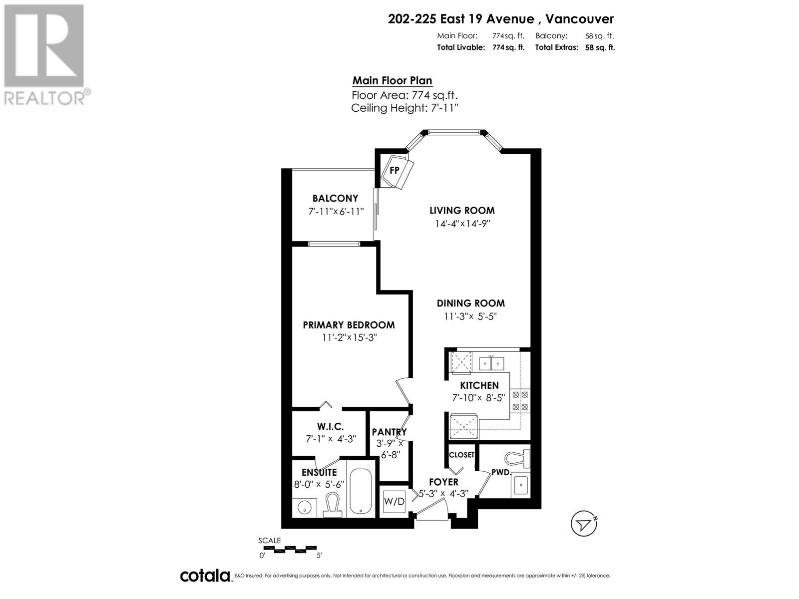- Area 774 sq ft