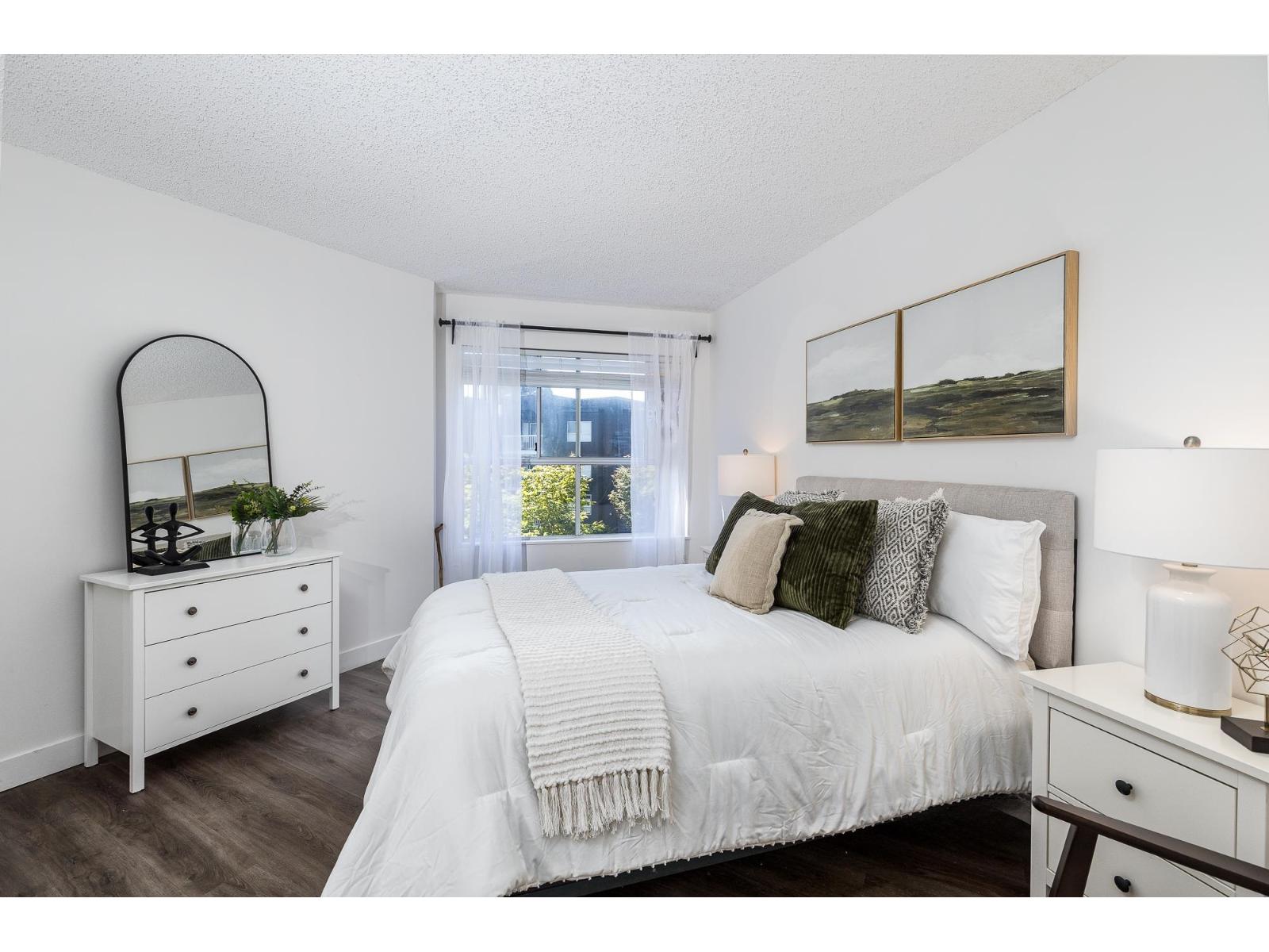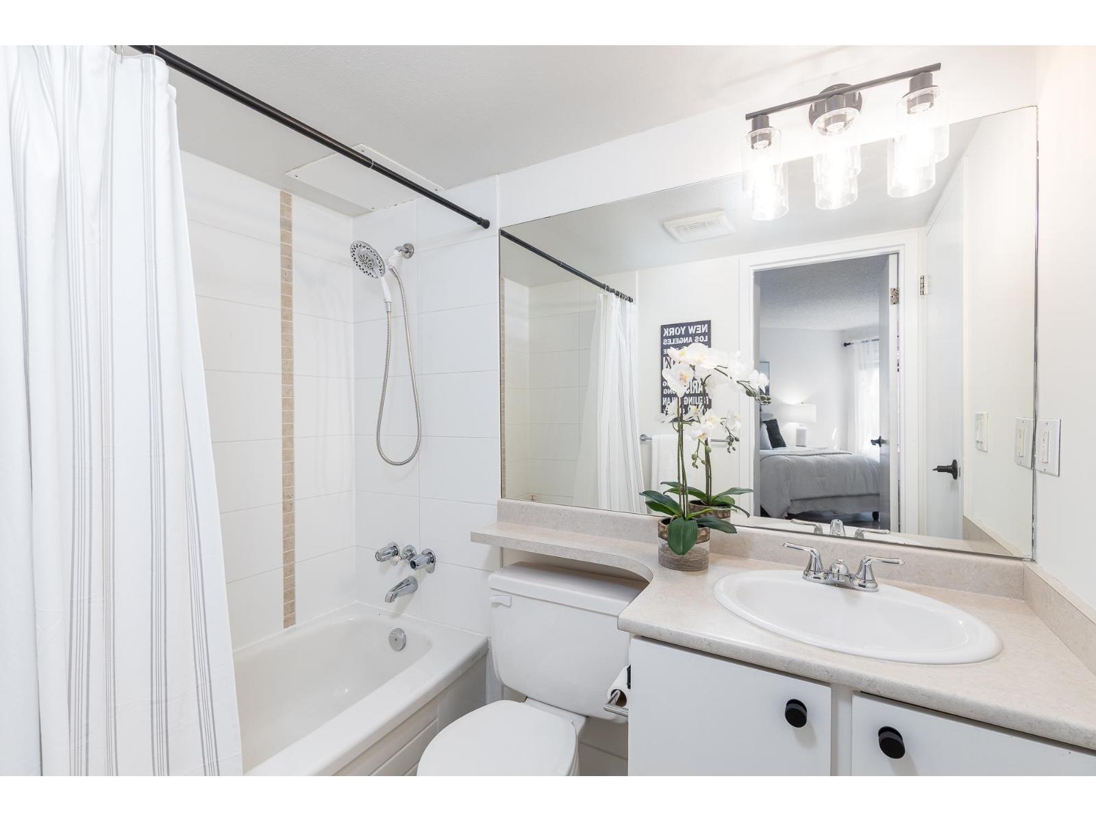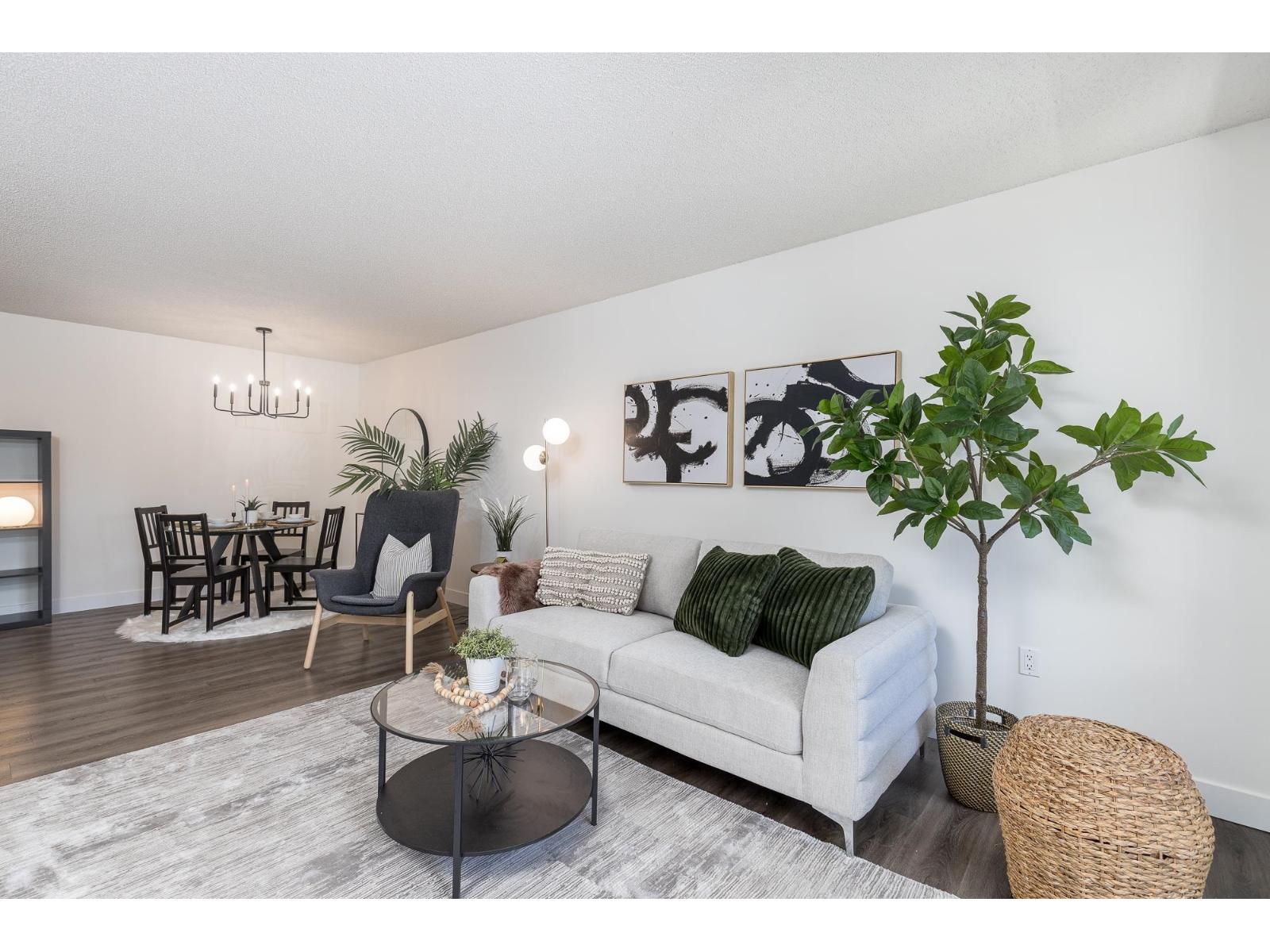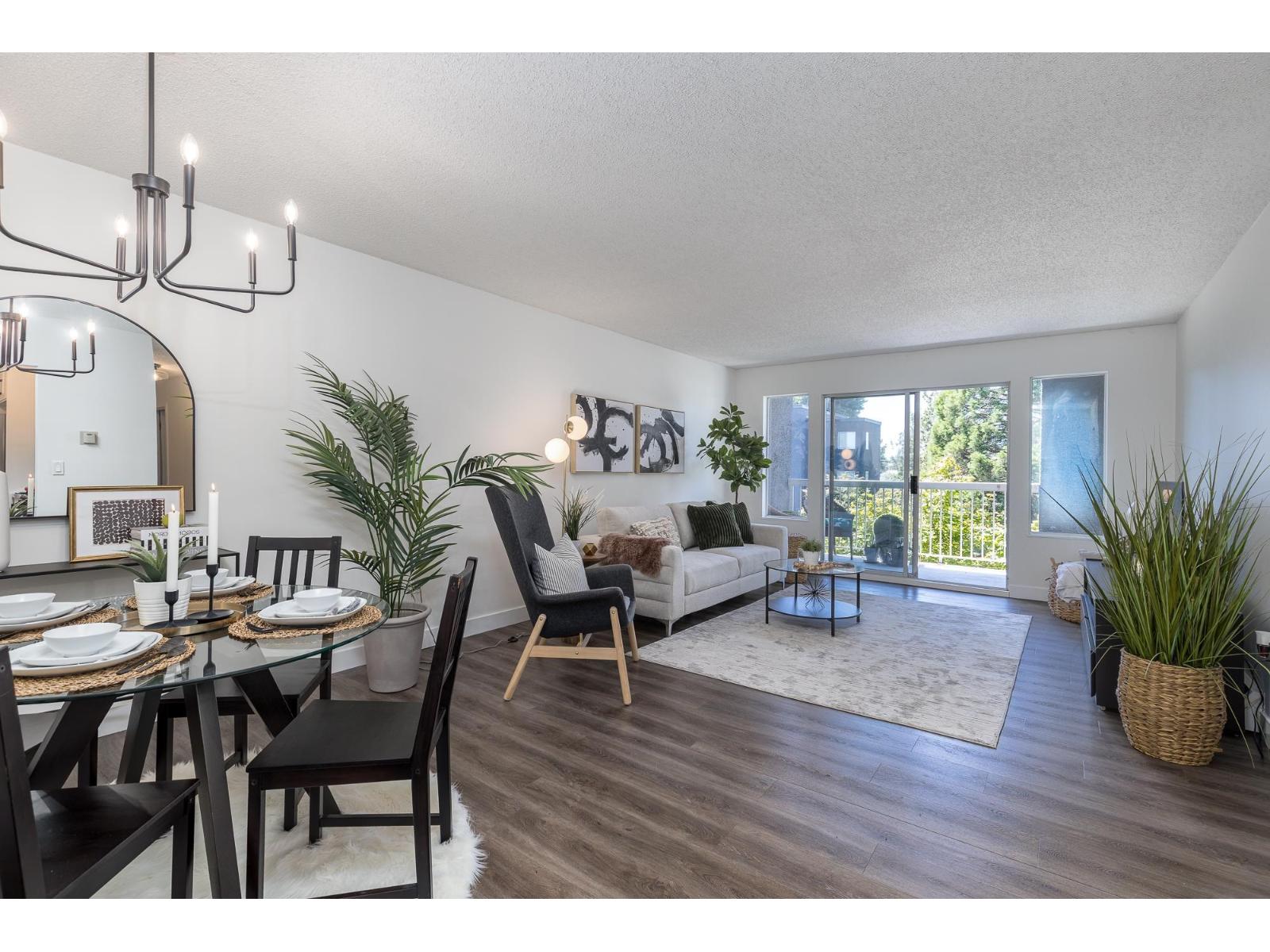 Convenient - Affordable - Tastefully Updated. This stunning 2 bed condo in Langley Village is the epitome of a GREAT INVESTMENT! Features include a bright, functional floorplan with new MODERN lighting & paint, newer vinyl plank floors, kitchen with BRAND NEW sink, stunning quartz counters & white kitchen cabinets. Enjoy the spacious living & dining rooms & large master bedroom with 'his & hers' closets inc. a massive walk-in. The second bedroom has 2 closets - perfect for extra storage! Relax with a morning coffee on your 82 sf balcony that overlooks cherry blossoms. Pet friendly! BONUS* Centrally located- quick to Willowbrook Mall, restaurants, schools, & future Rapid transit bus line/SkyTrain stations. Make this your home & experience the perfect blend of comfort, style & convenience! (id:48970) Show More