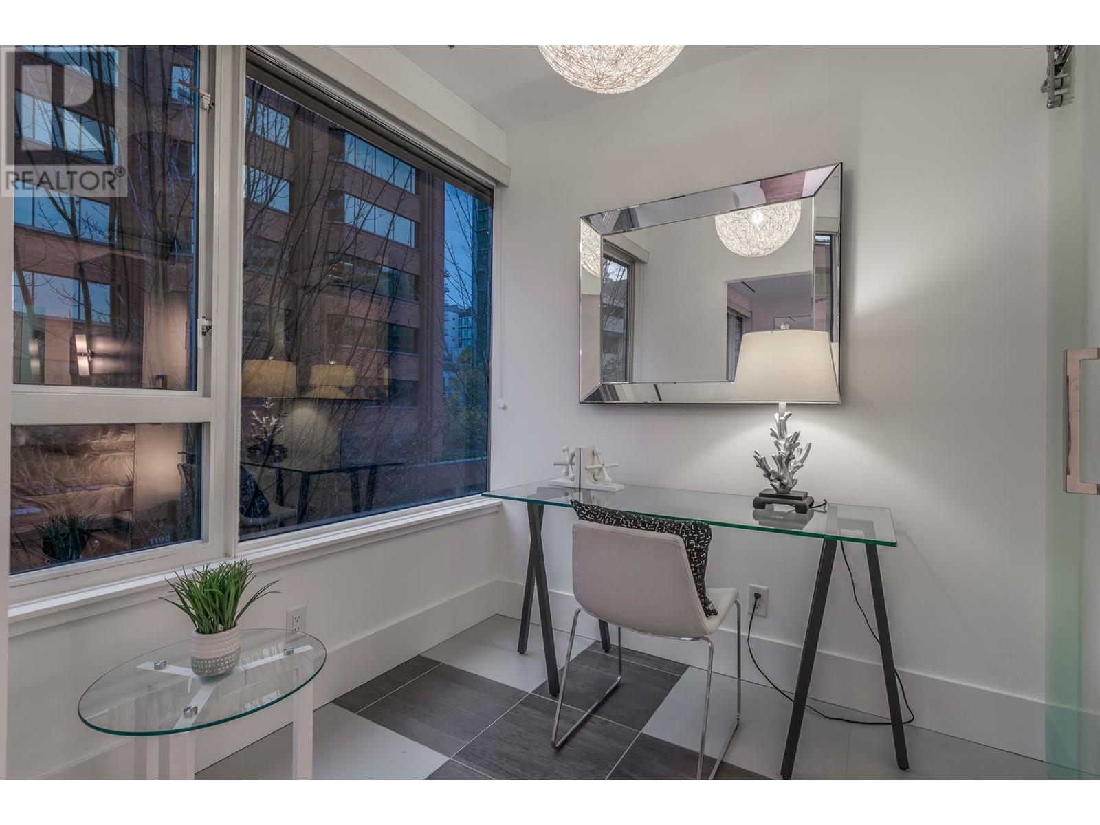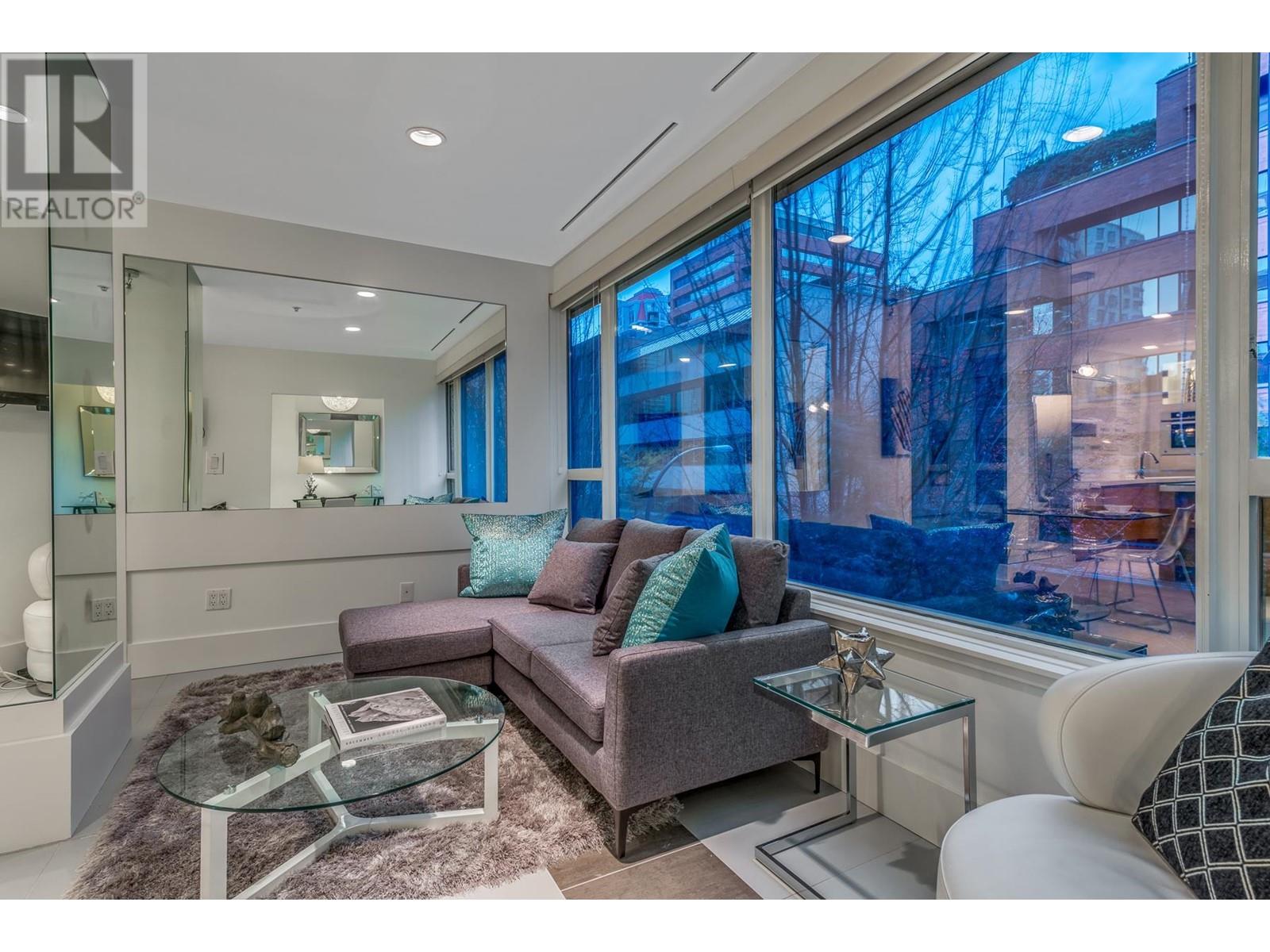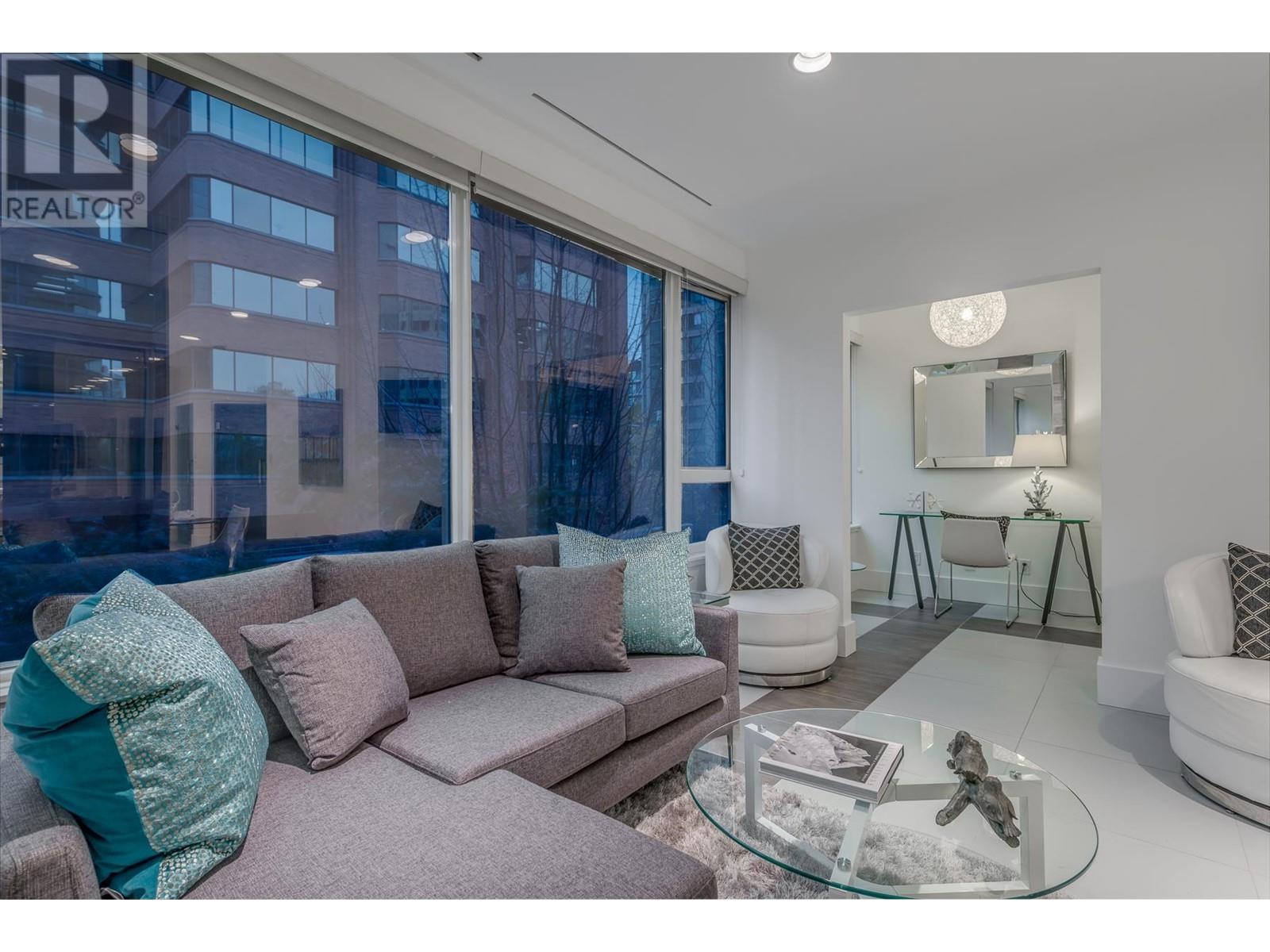 Welcome to London Place! This stunning designer suite offers the perfect blend of style and convenience in the heart of Downtown Vancouver. Rarely available, this spacious 1-bedroom + large den features a functional layout with a private outlook. Highlights include sleek quartz countertops, elegant tile floors, built-in appliances, frosted glass doors, and a luxurious spa-like bathroom. Residents enjoy access to fantastic amenities such as an air-conditioned gym, a rooftop hot tub, a games room with a pool table, TV, and a library. One parking spot is included. With a perfect walk score of 100, you´re just steps from Vancouver´s best restaurants, shopping, transit, and more. Open house Saturday, June 21 10am to 12noon (id:48970) Show More