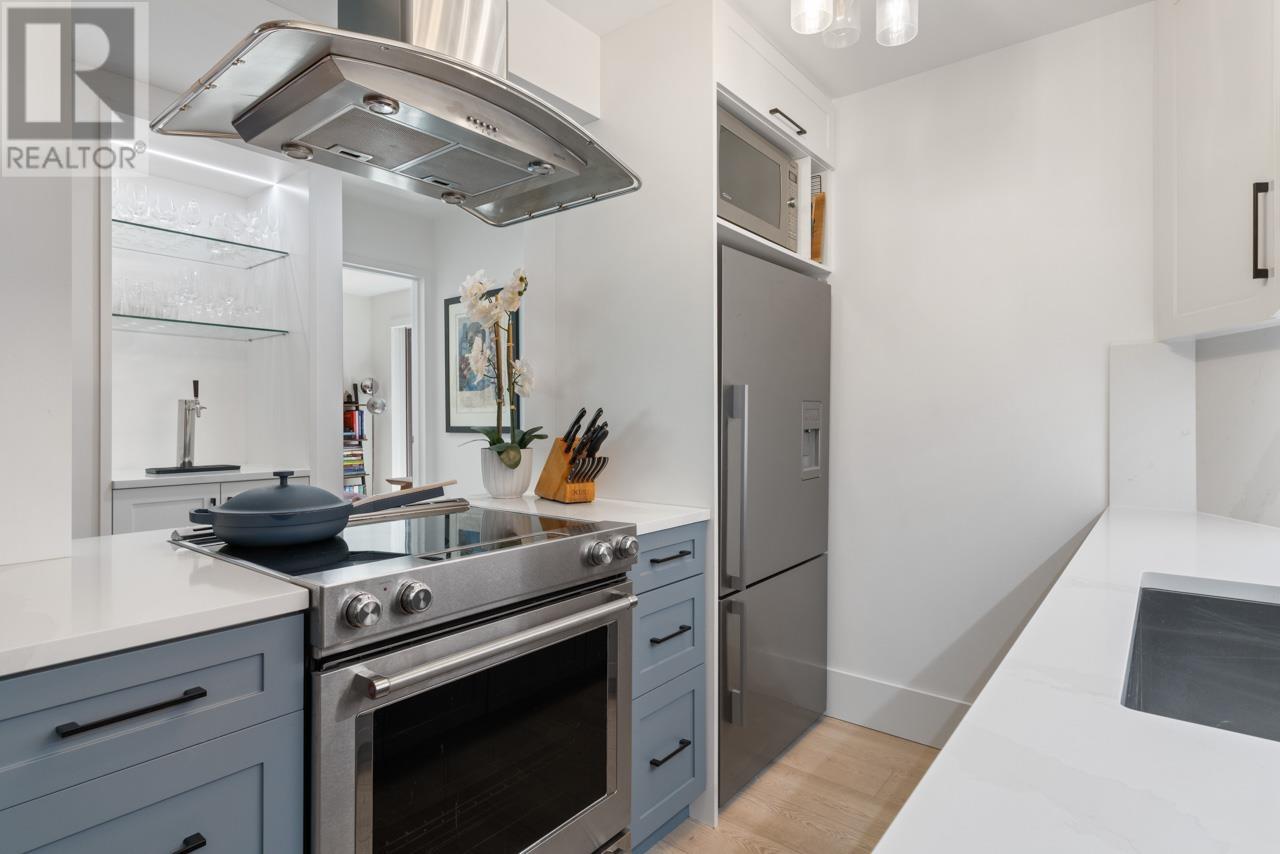 Kitsilano Beachside Charm! This 2-bed, 2-bath home offers a perfect blend of modern luxury and outdoor living. Enjoy seasonal ocean, mountain, and city views from the front patio, or relax in the expansive 500sqft+ south-facing, sun drenched, fenced yard with private ground-level access complete with a beautiful space for those with a green thumb. Beautifully renovated interior including heated bathroom floors, stainless steel appliances, electric blinds, smart thermostats, custom keg bar and a cozy wood-burning fireplace. Get some indoor exercise with the squash court on site. Comes with 1 parking spot and 1 storage locker. On top of it all, you're just steps from the beach, Kits Pool, and the many vibrant 4th Ave shops, restaurants, and cafes this home is a true Kitsilano gem. Open Sat Jun 28/Sun Jun 29 2 to 4pm (id:48970) Show More