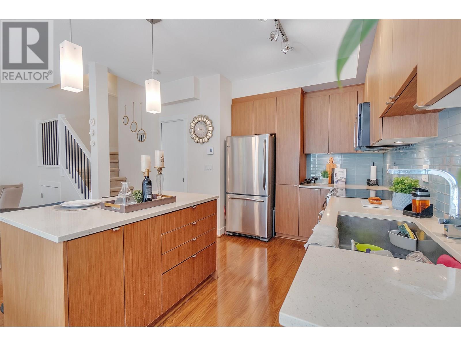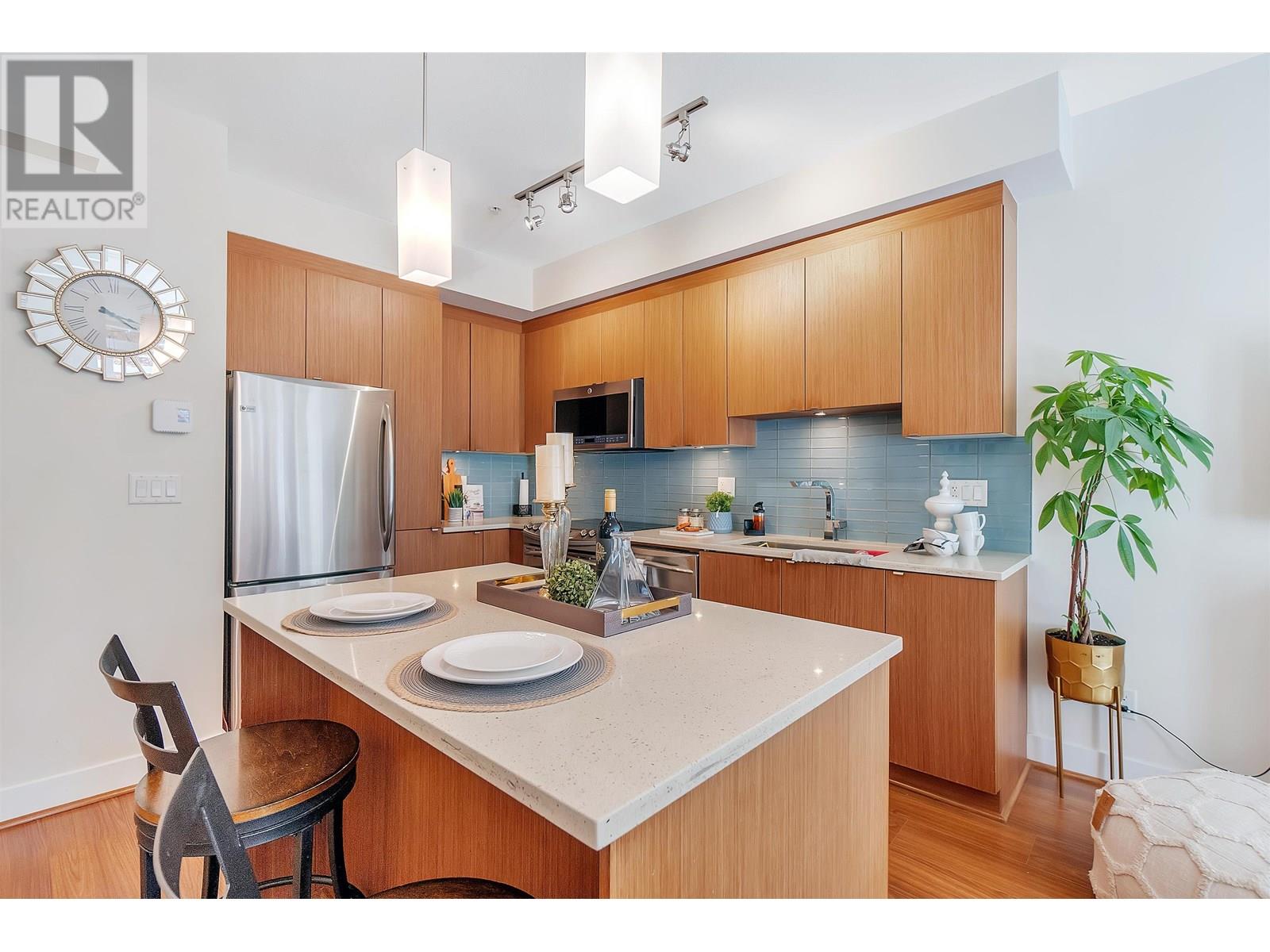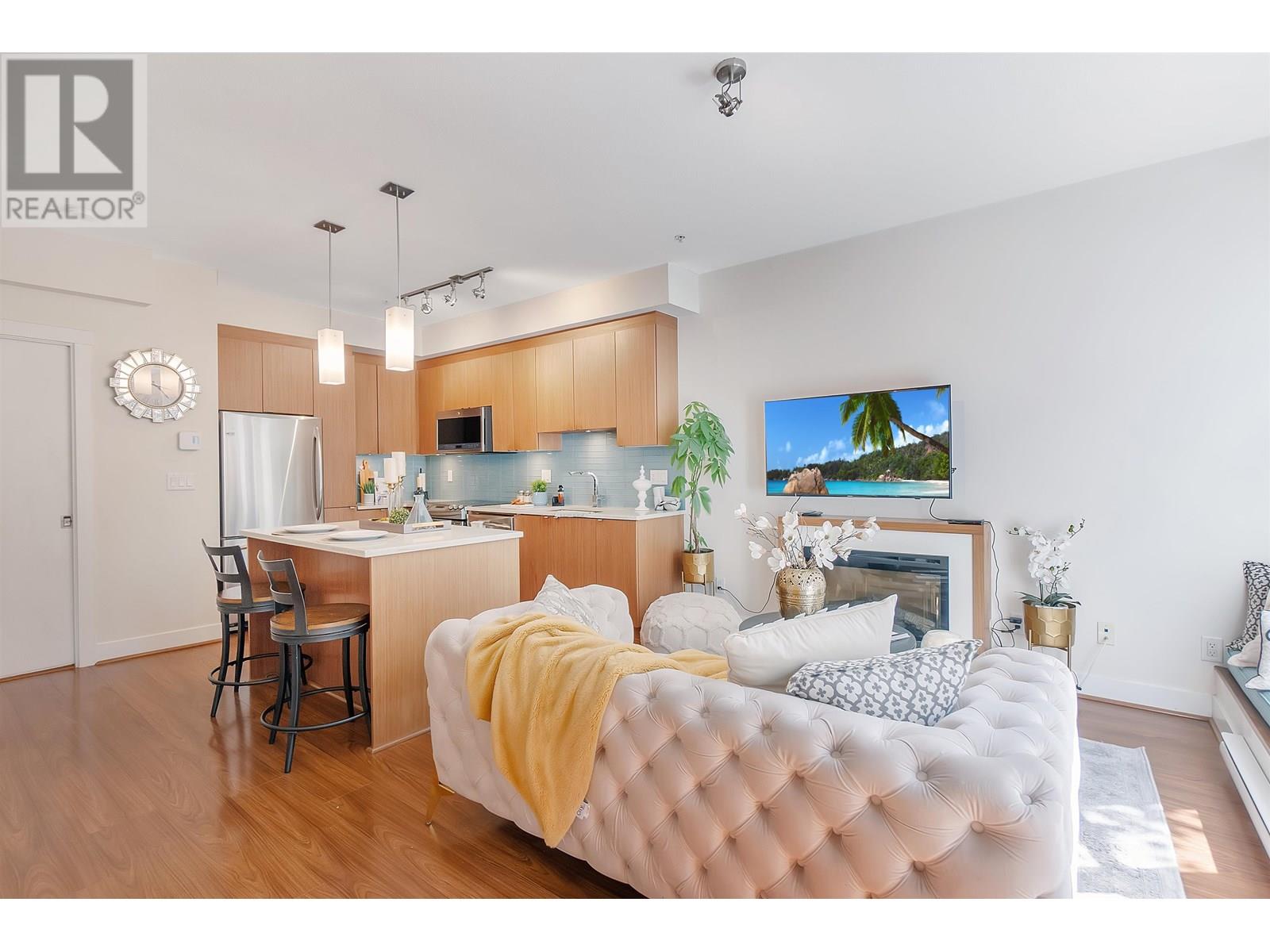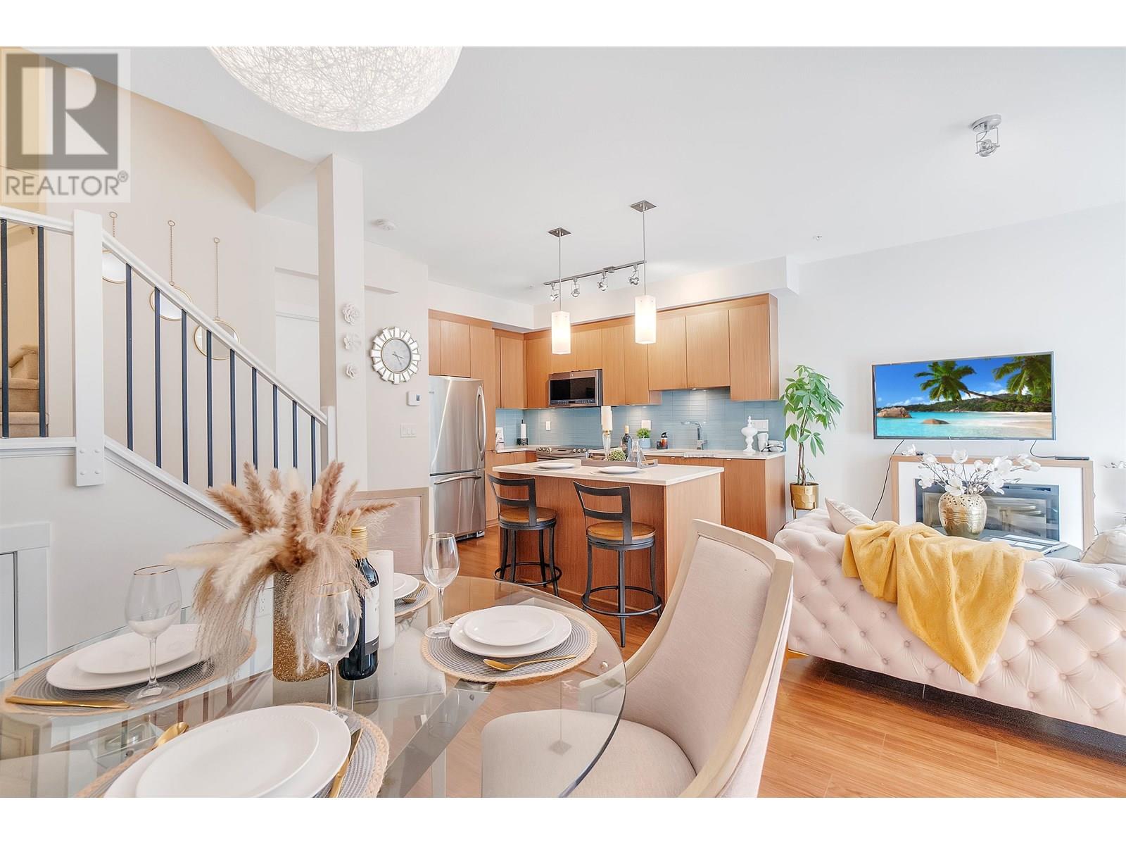 Welcome to Seven35. North Vancouver´s best value green-certified townhome built by award-winning Adera. This 2 bed, 2 bath West Coast Contemporary home features 1,000 square ft of functional living, including a bright open-concept main floor with high ceilings, gourmet kitchen and creative under-stair storage. Upstairs offers two generous bedrooms, including a king-sized primary with walk-in closet and in-suite laundry. The showstopper? A 350 square ft rooftop patio with water/electric hookups, mountain, sunset & downtown views. ideal for a hot tub or entertaining. Located just off Mosquito Creek in a quiet, very private yet steps to trails, shopping, Cap Mall, schools & transit. Includes parking, storage locker, gym, bike room, and playground. Open House July 13 (Sun) 2:00 PM - 4:00 PM (id:48970) Show More